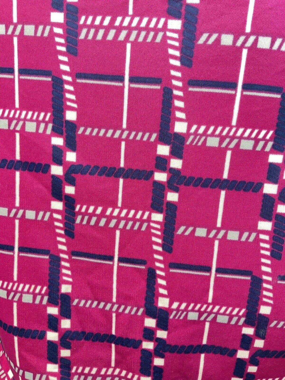 This is a bold vintage blouse made from a light-weight, polyester fabric with a good amount of stretch with a subtle glittery sheen.