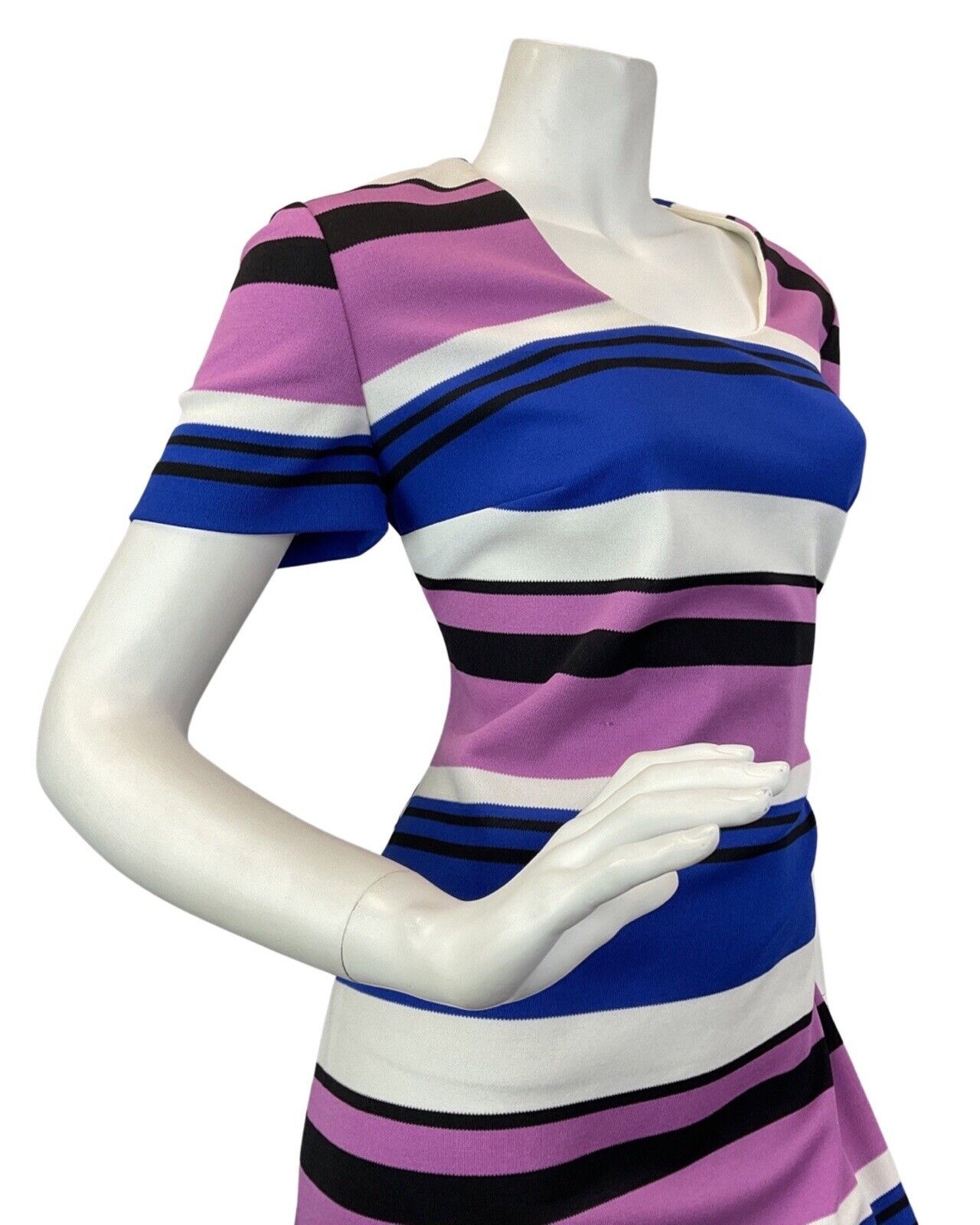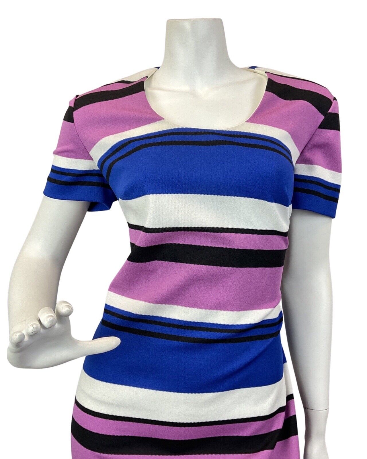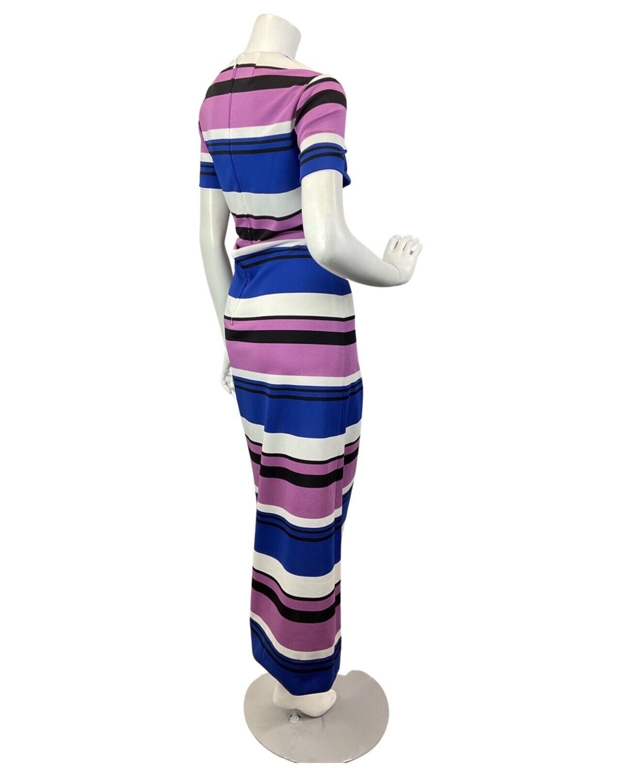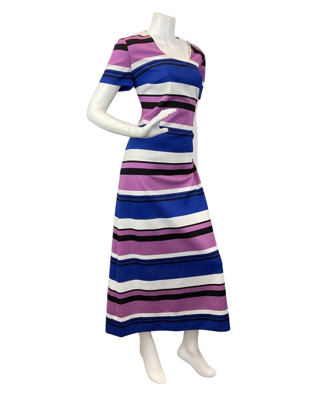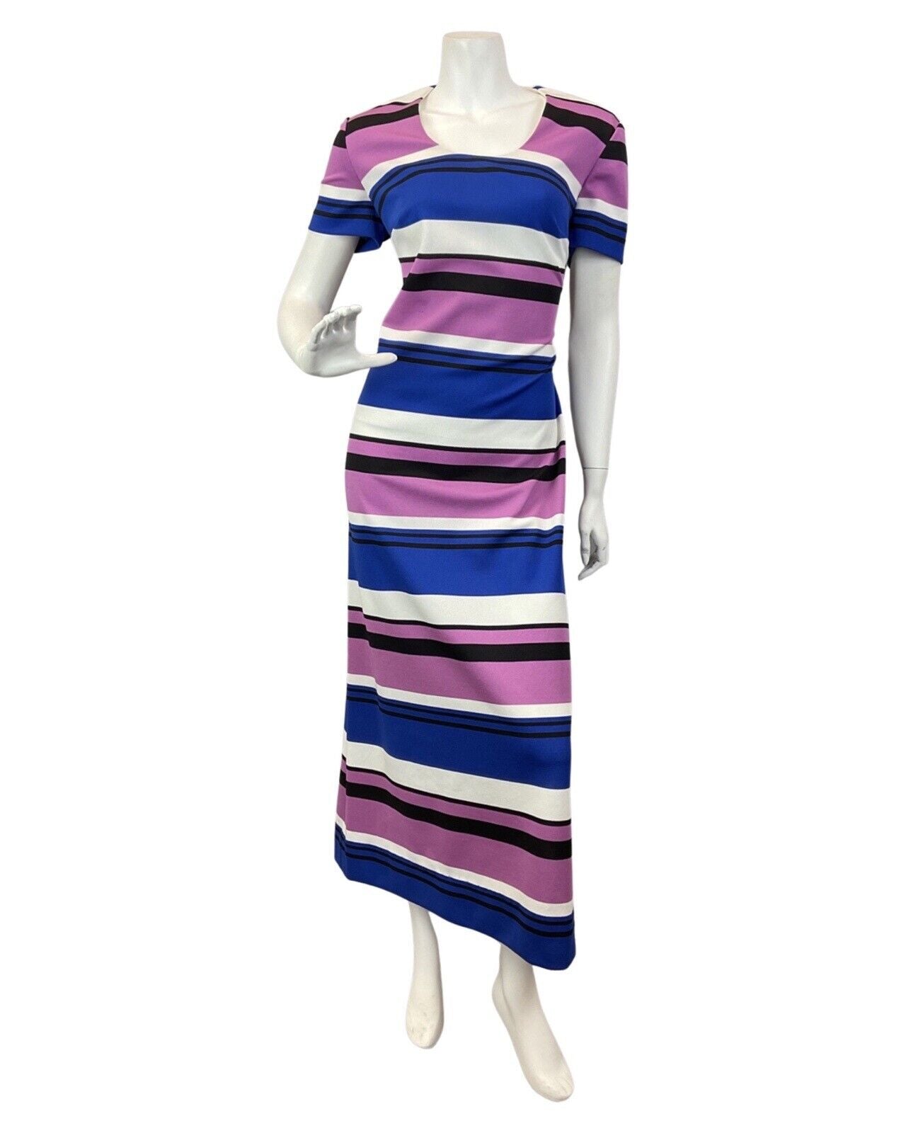 VINTAGE 60s 70s PURPLE BLUE WHITE STRIPED MOD MAXI DRESS 14 16
