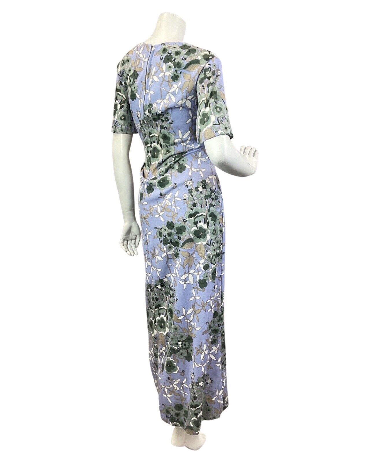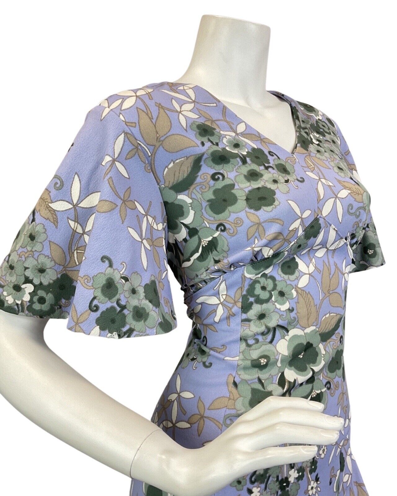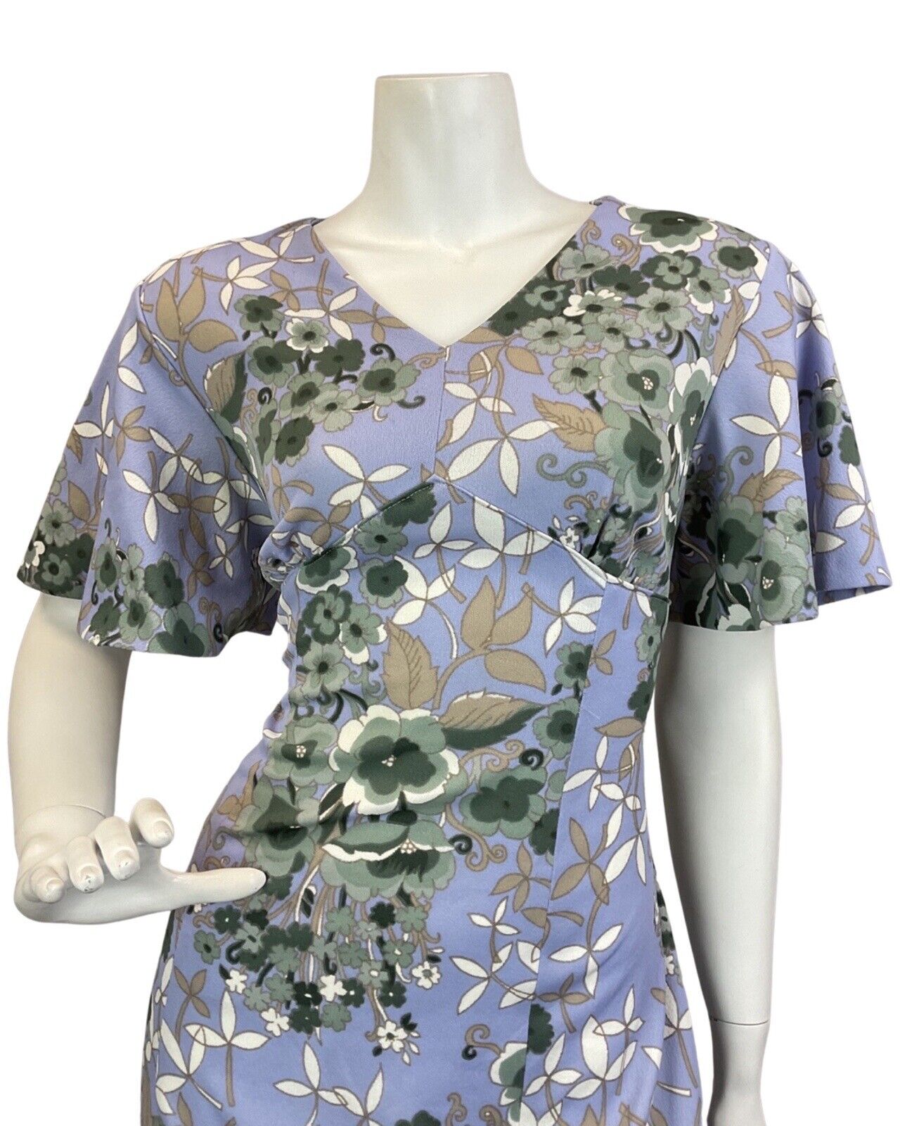 VINTAGE 60s 70s PURPLE GREEN FLORAL BELL SLEEVE MAXI DRESS 12