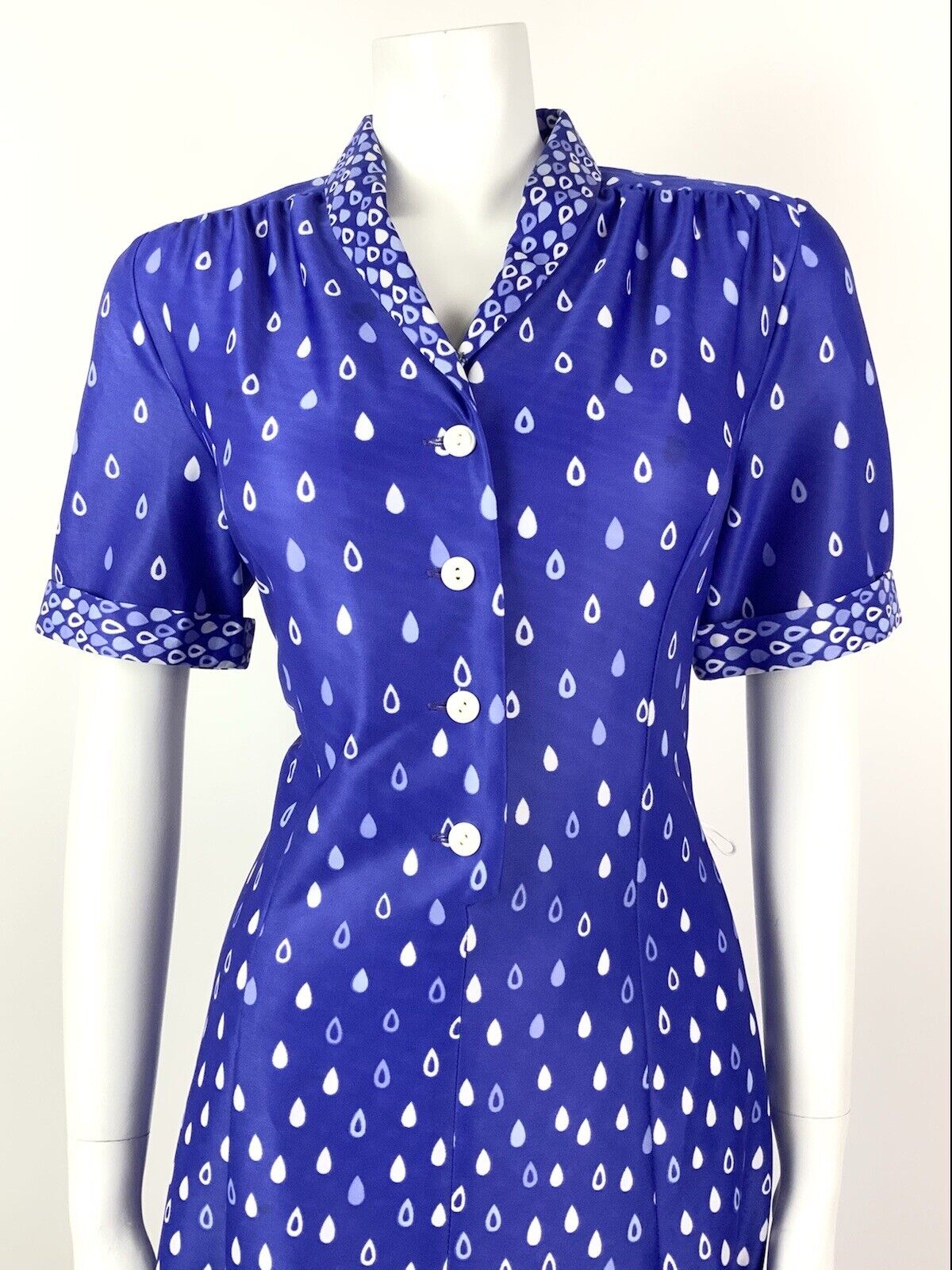 VINTAGE 60s 70s PURPLE LILAC WHITE TEAR RAIN-DROP SHAWL SHIRT DRESS 14 16