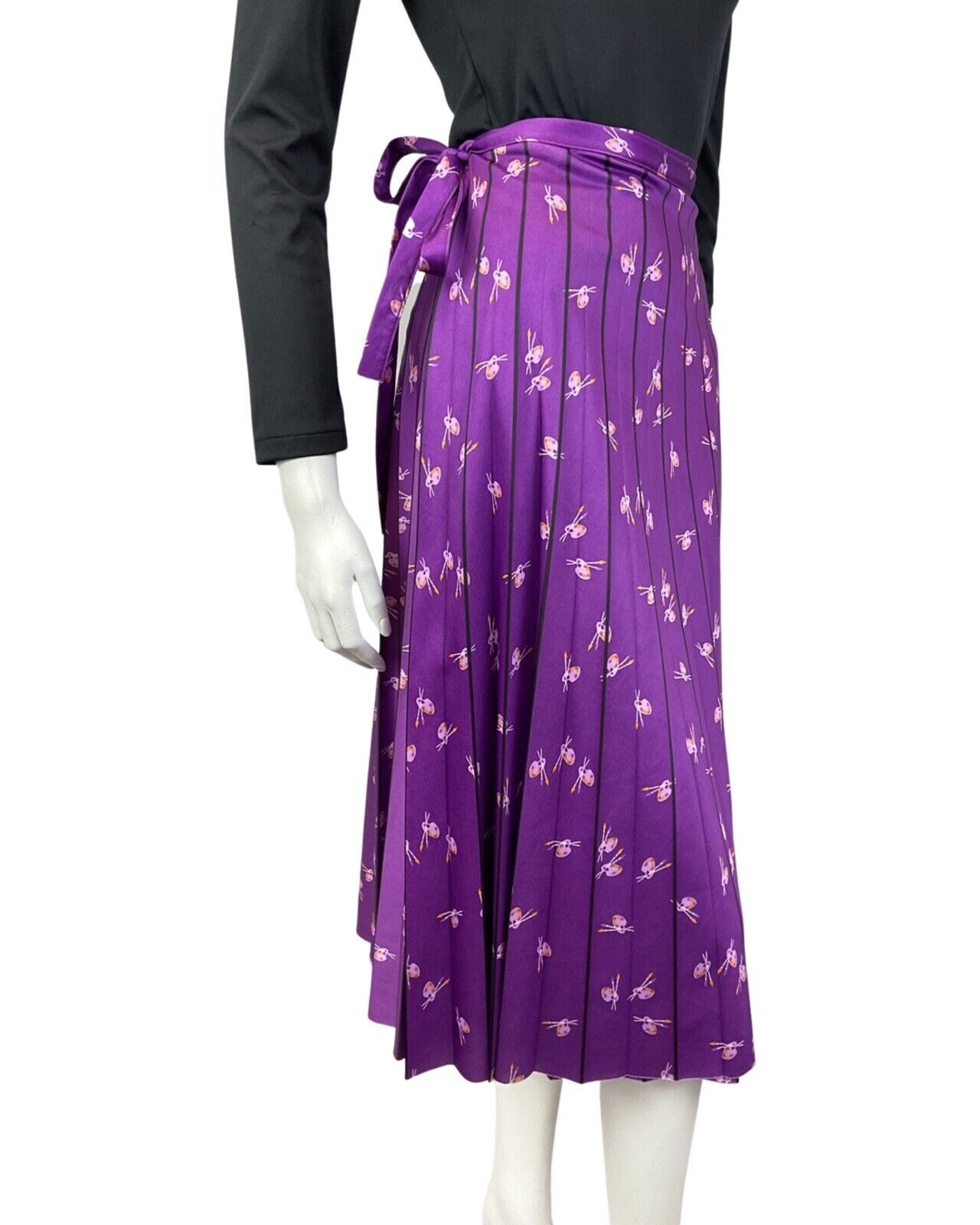 VINTAGE 60s 70s PURPLE ORANGE PINK PAINTBRUSH PALETTE PLEATED WRAP SKIRT 8 10
