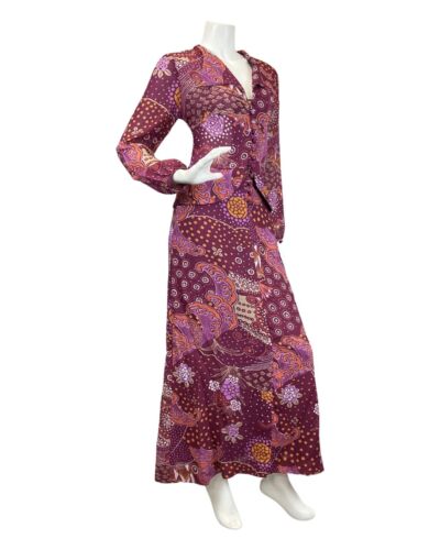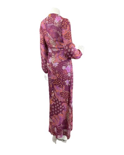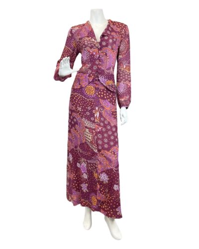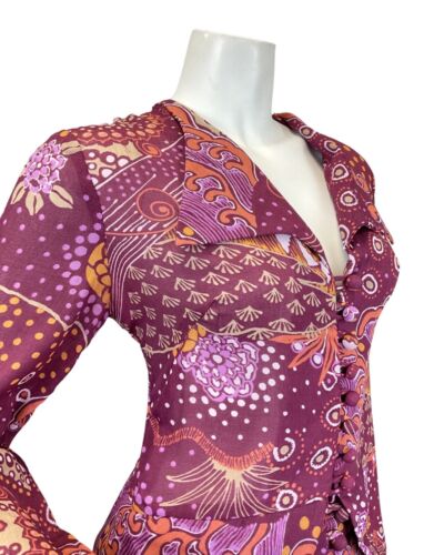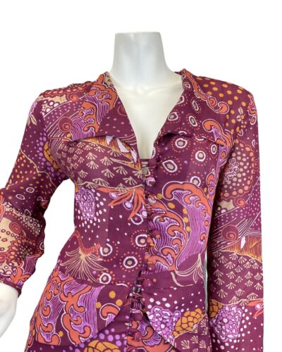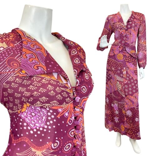 VINTAGE 60s 70s PURPLE ORANGE PSYCHEDELIC FLORAL MOD PEPLUM MAXI DRESS 8 10