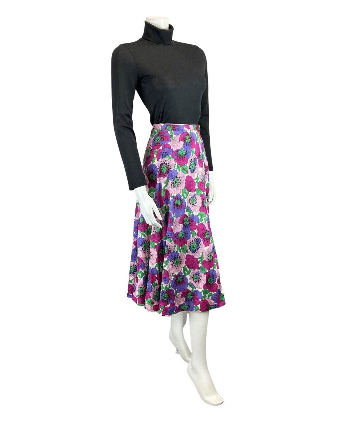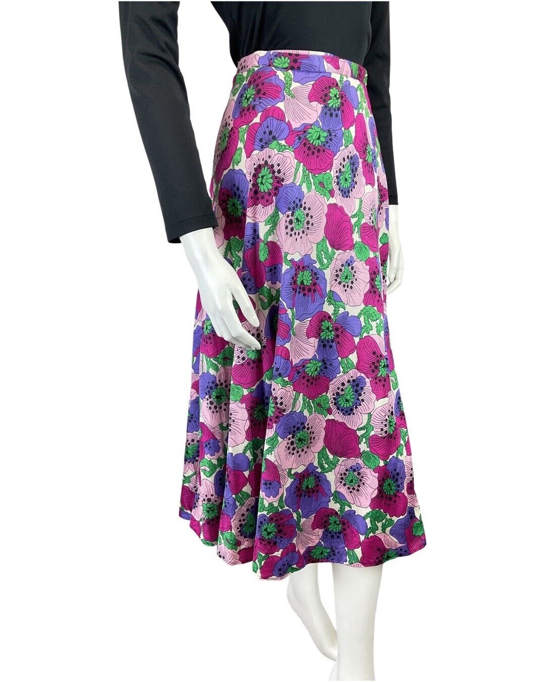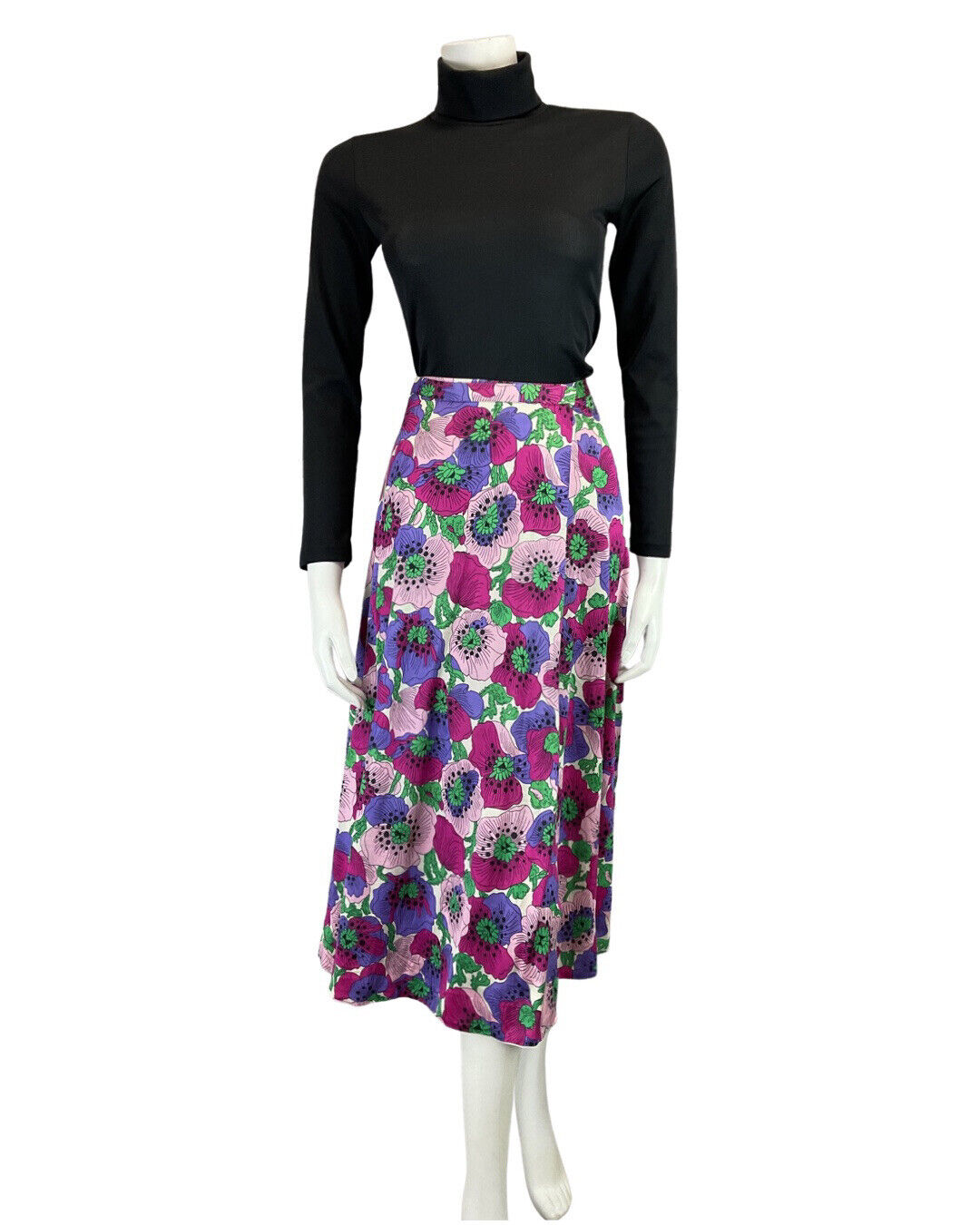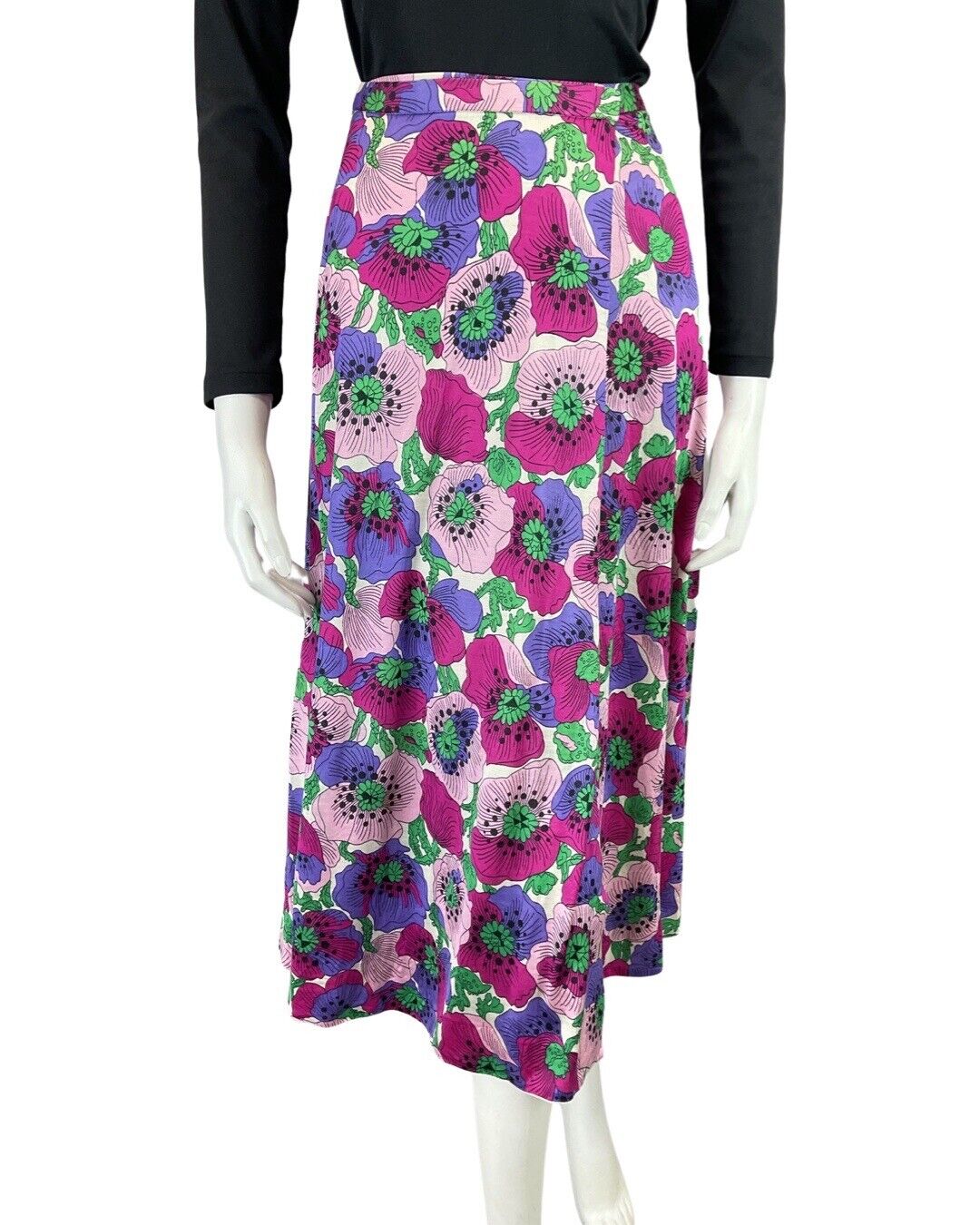 VINTAGE 60s 70s PURPLE PINK GREEN FLOWER POPPY MIDI WRAP SKIRT 8