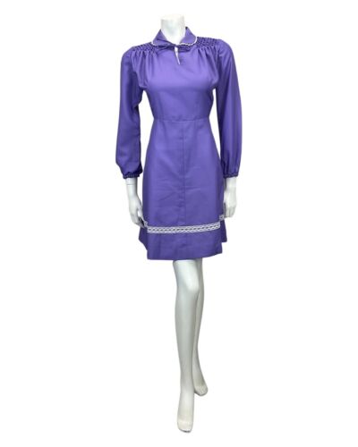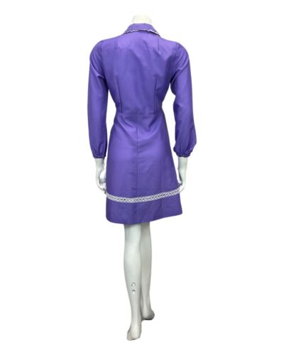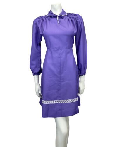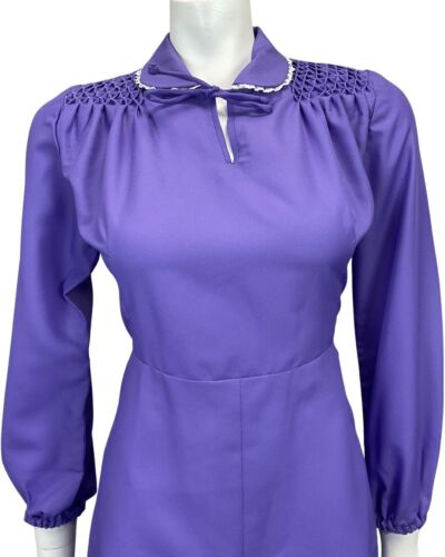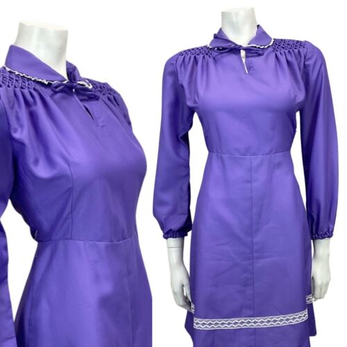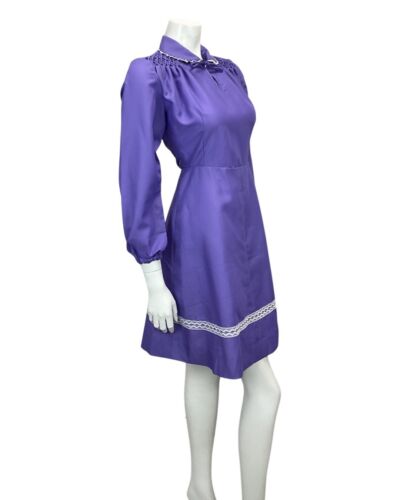 VINTAGE 60s 70s PURPLE WHITE LACE PETER PAN COLLAR PRAIRIE DRESS 10