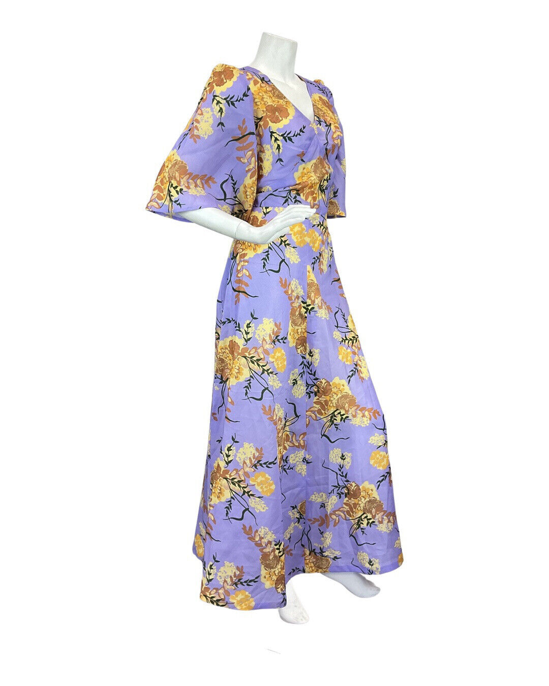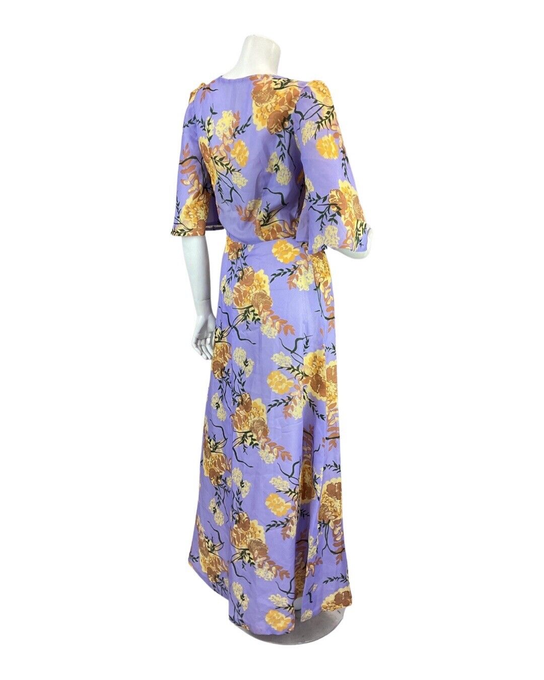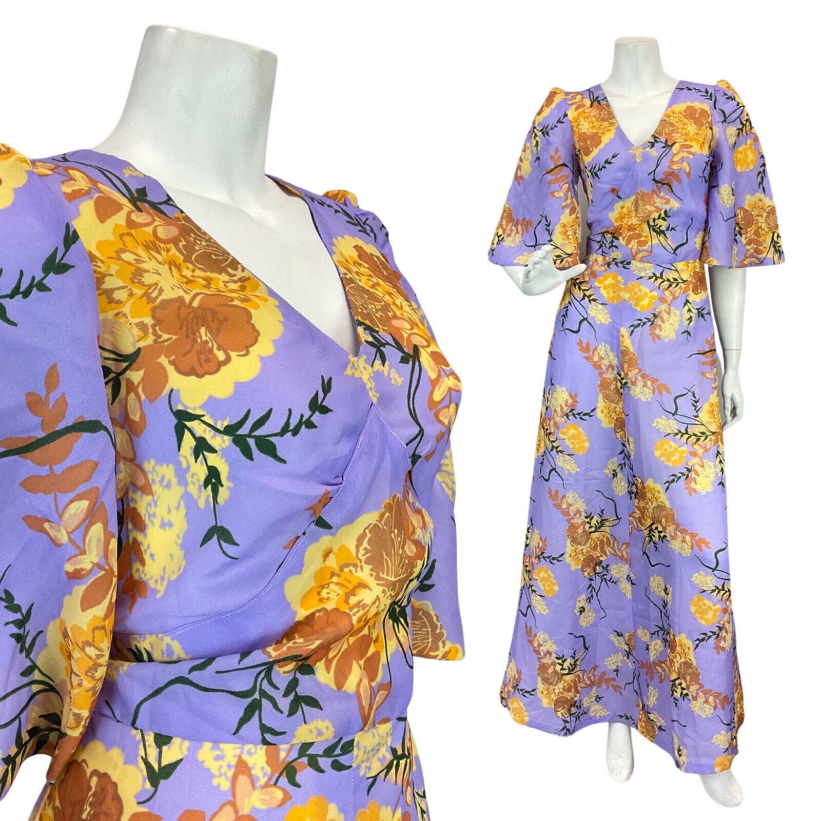 VINTAGE 60s 70s PURPLE YELLOW BROWN FLORAL SUMMER FLARED MAXI DRESS 6 8