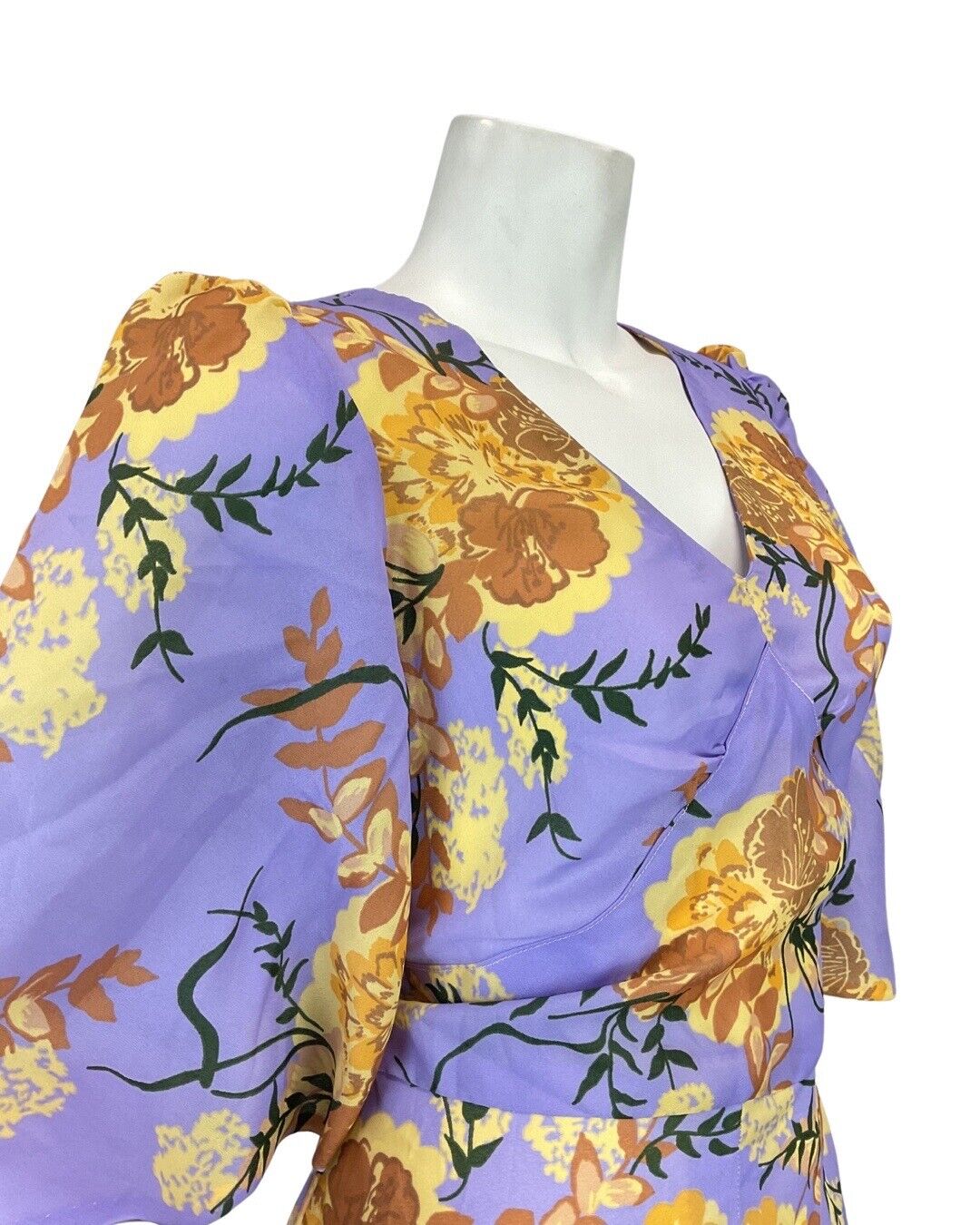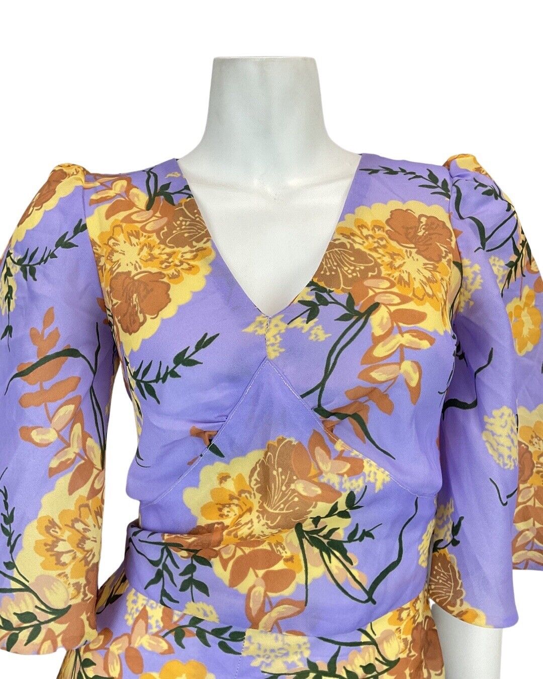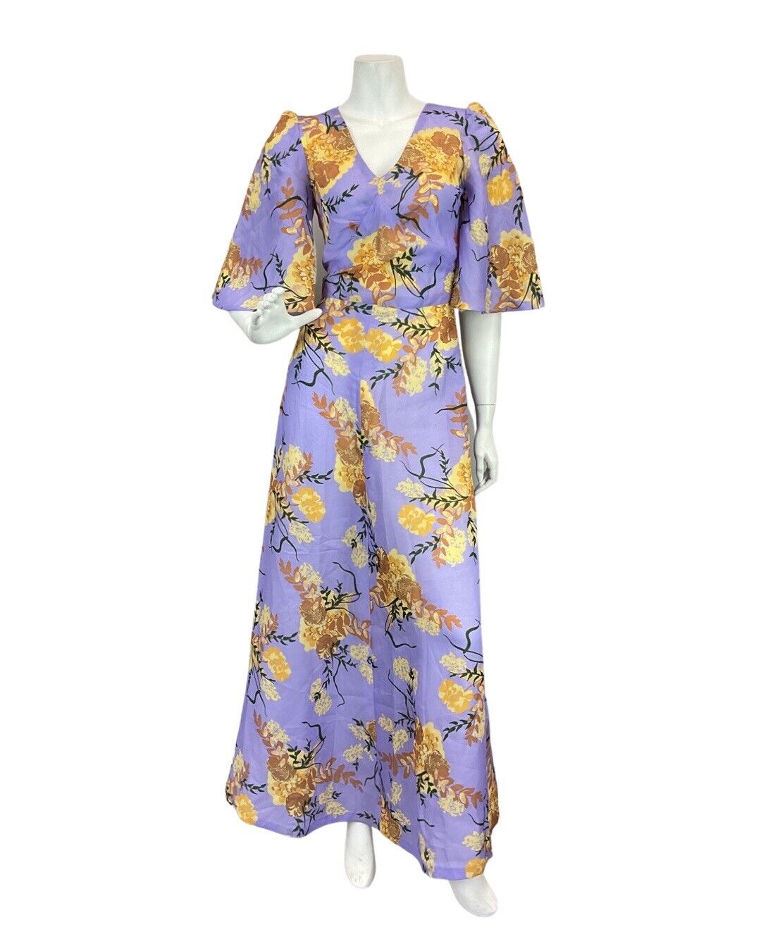 VINTAGE 60s 70s PURPLE YELLOW BROWN FLORAL SUMMER FLARED MAXI DRESS 6 8
