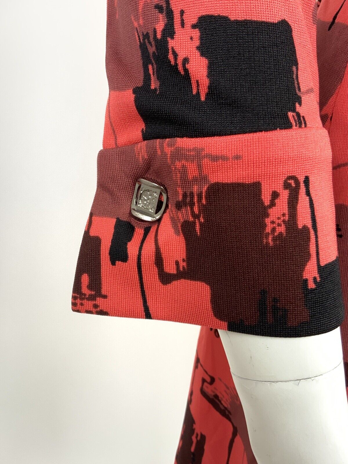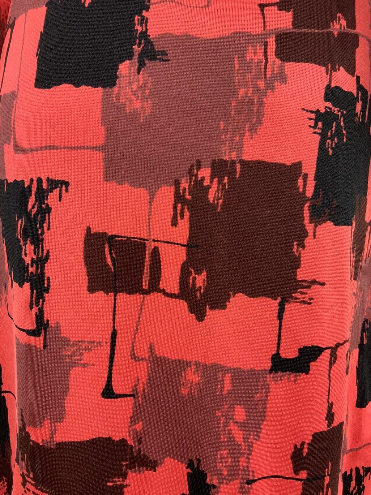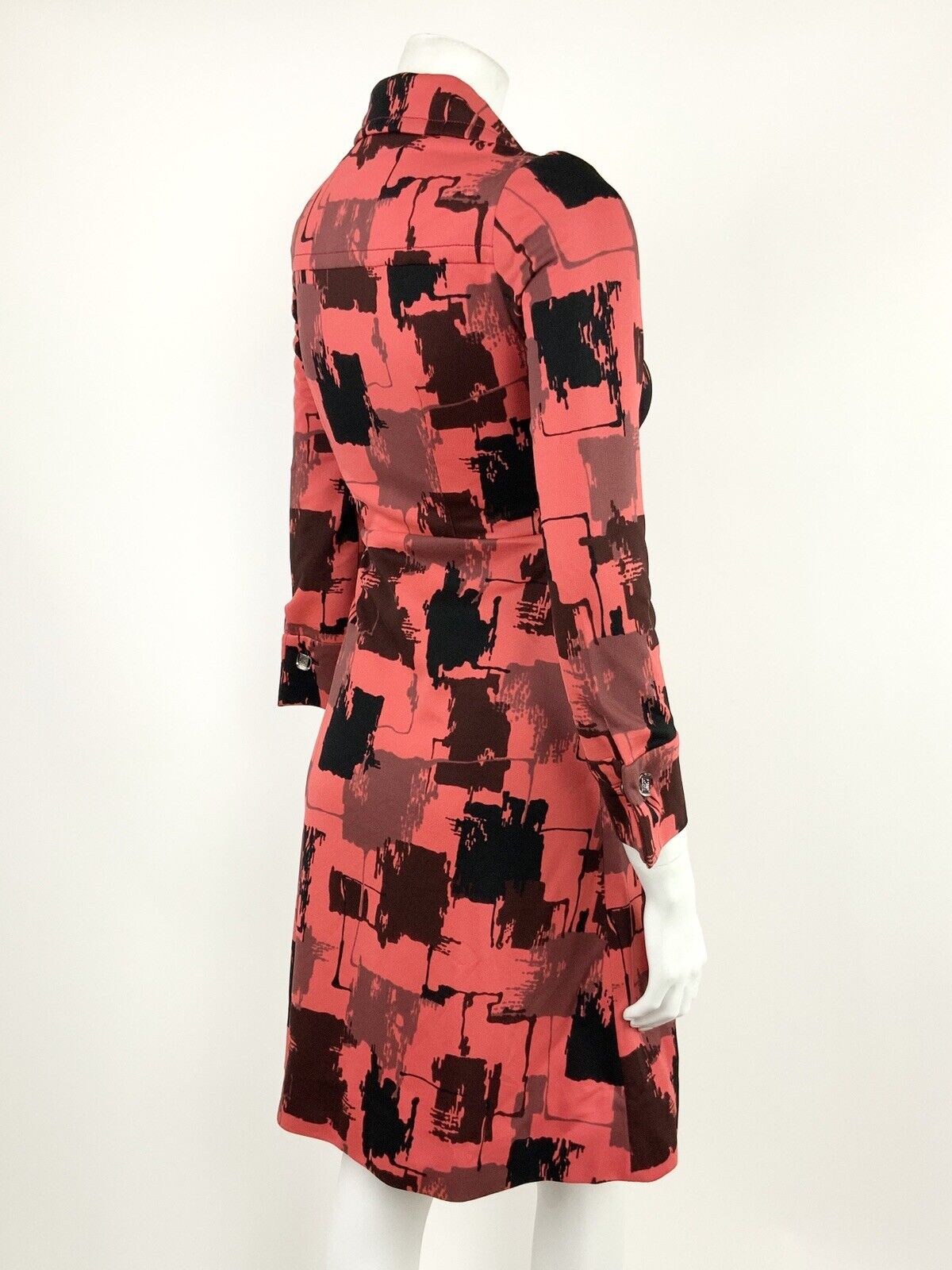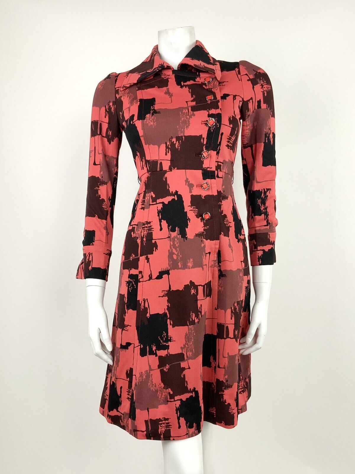 VINTAGE 60s 70s RED BLACK BROWN ABSTRACT SQUARE WING COLLAR ASYMMETRIC DRESS 8