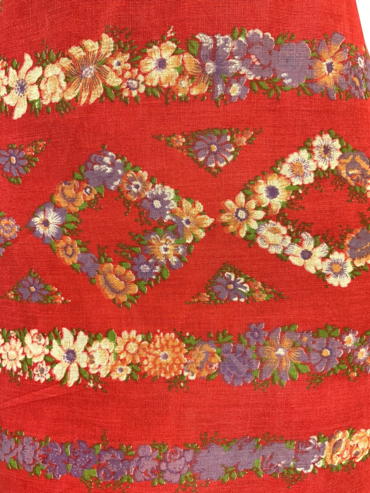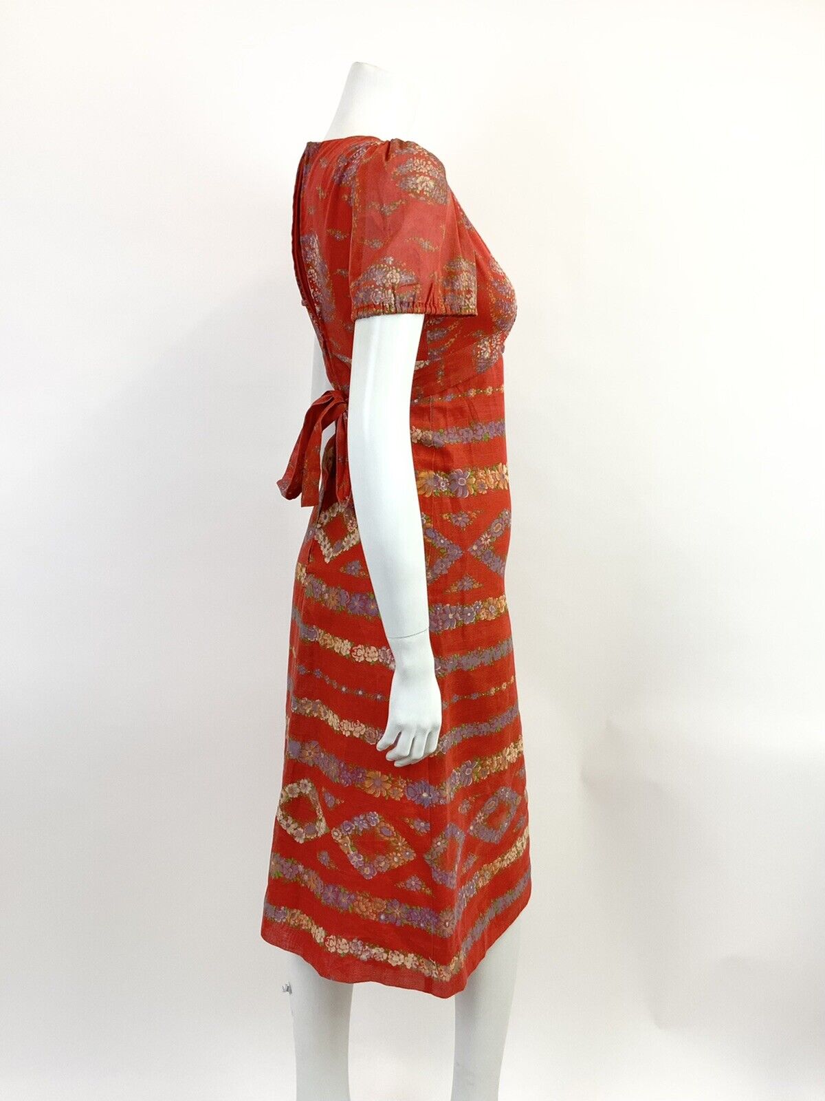 VINTAGE 60s 70s RED PURPLE GREEN FLORAL STRIPED RICRAC BOHO FOLK MIDI DRESS 6