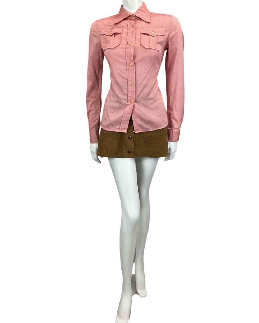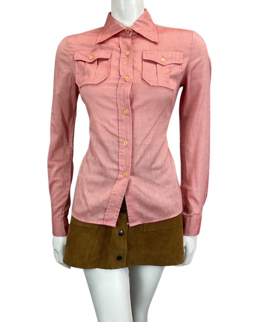 VINTAGE 60s 70s RED WESTERN DAGGAR COLLAR MOD SHIRT 12