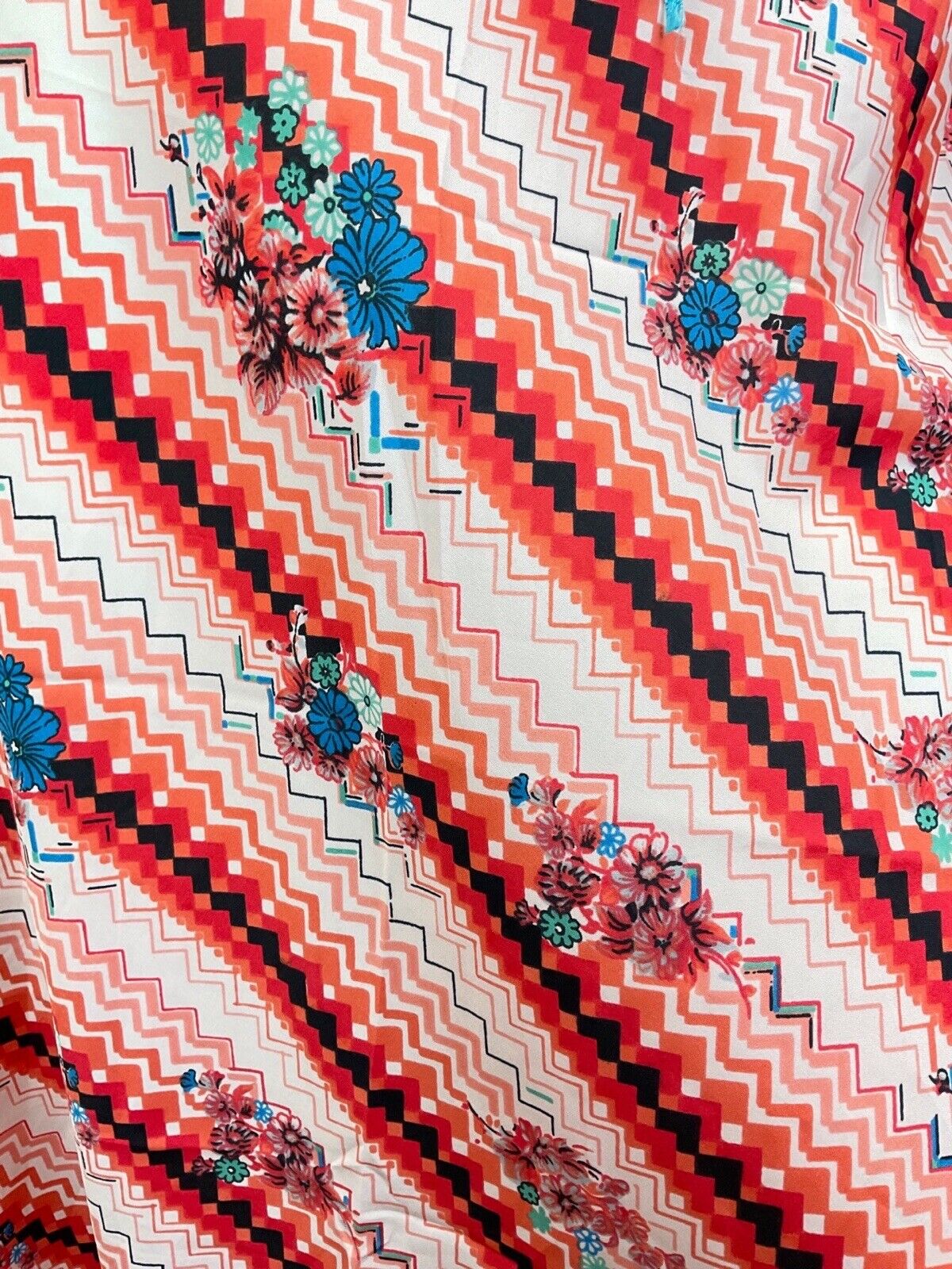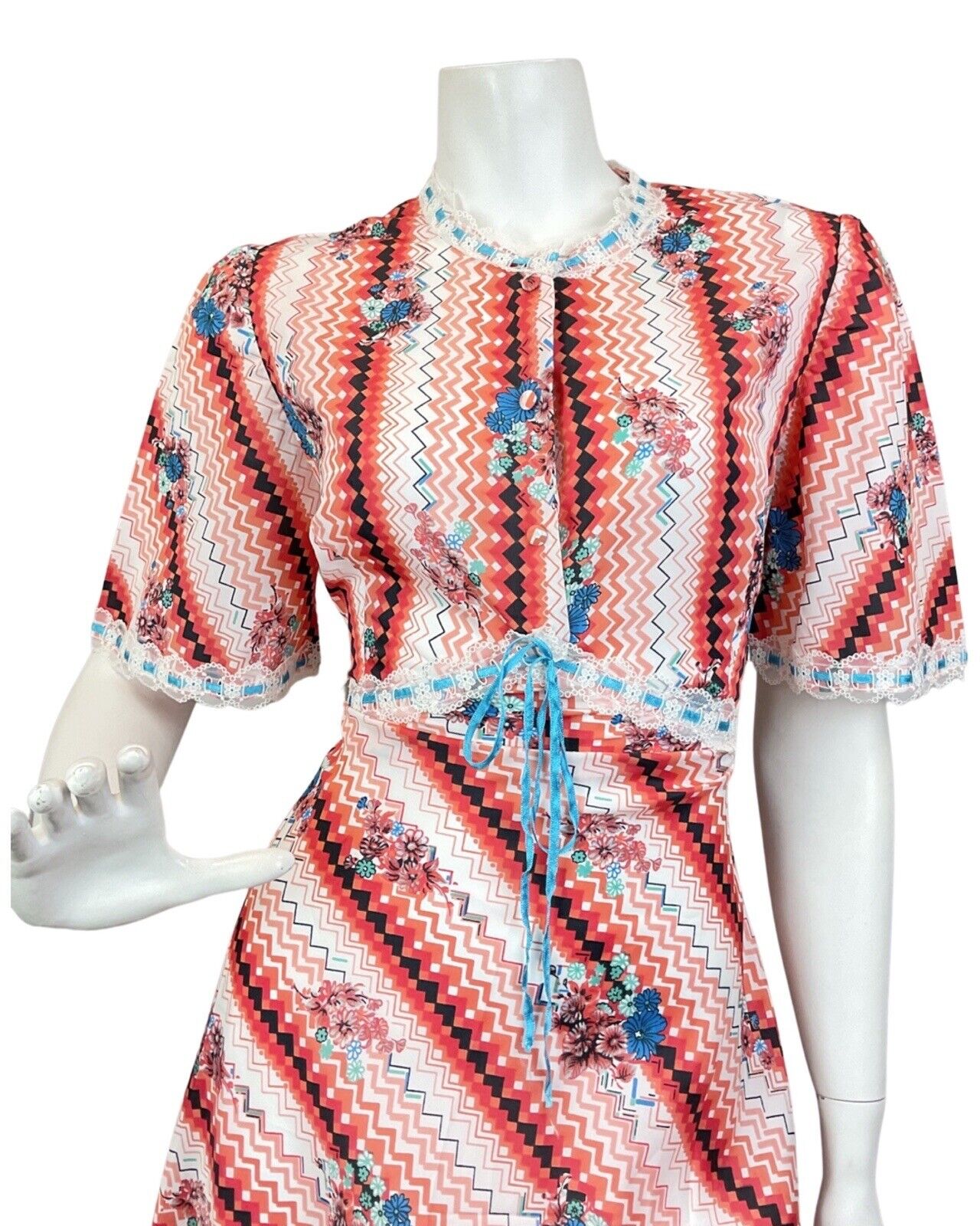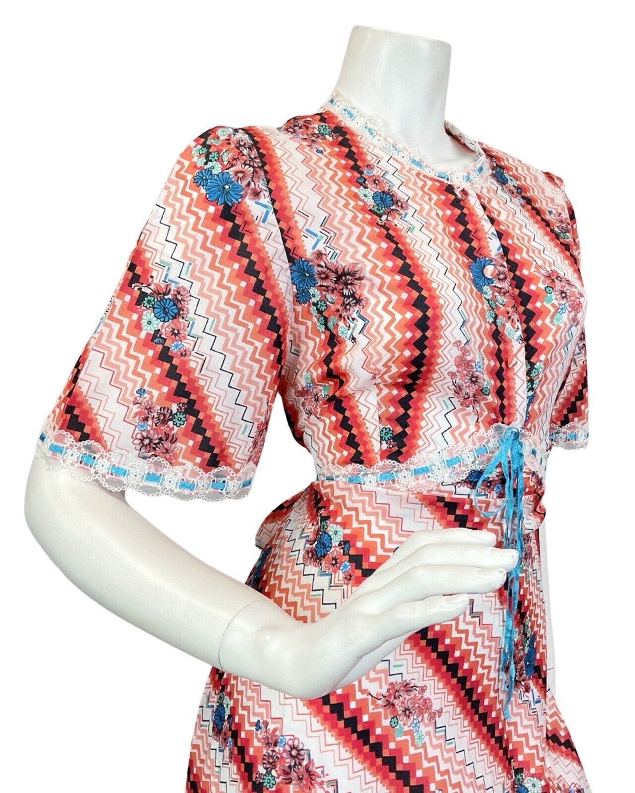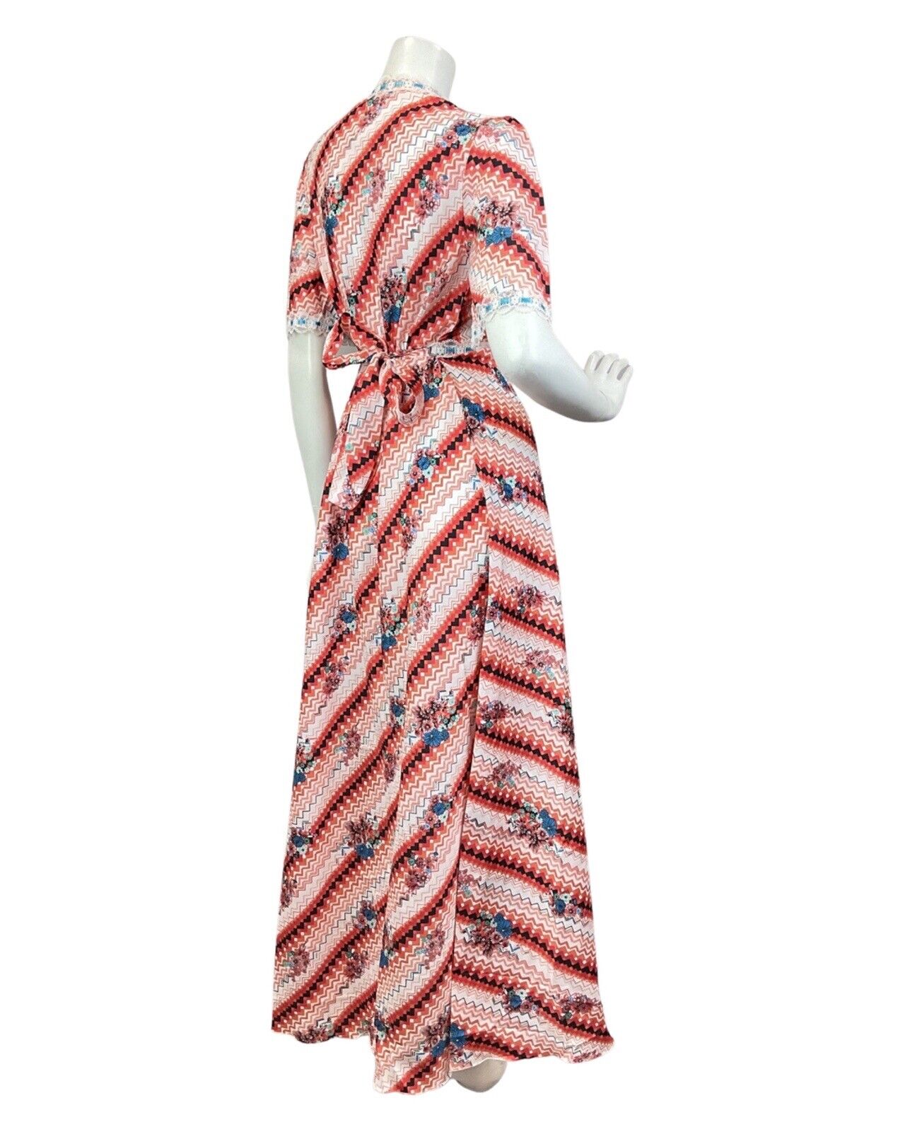 VINTAGE 60s 70s RED WHITE BLUE CHEVRON FLORAL GEOMETRIC SUMMER MAXI DRESS 10