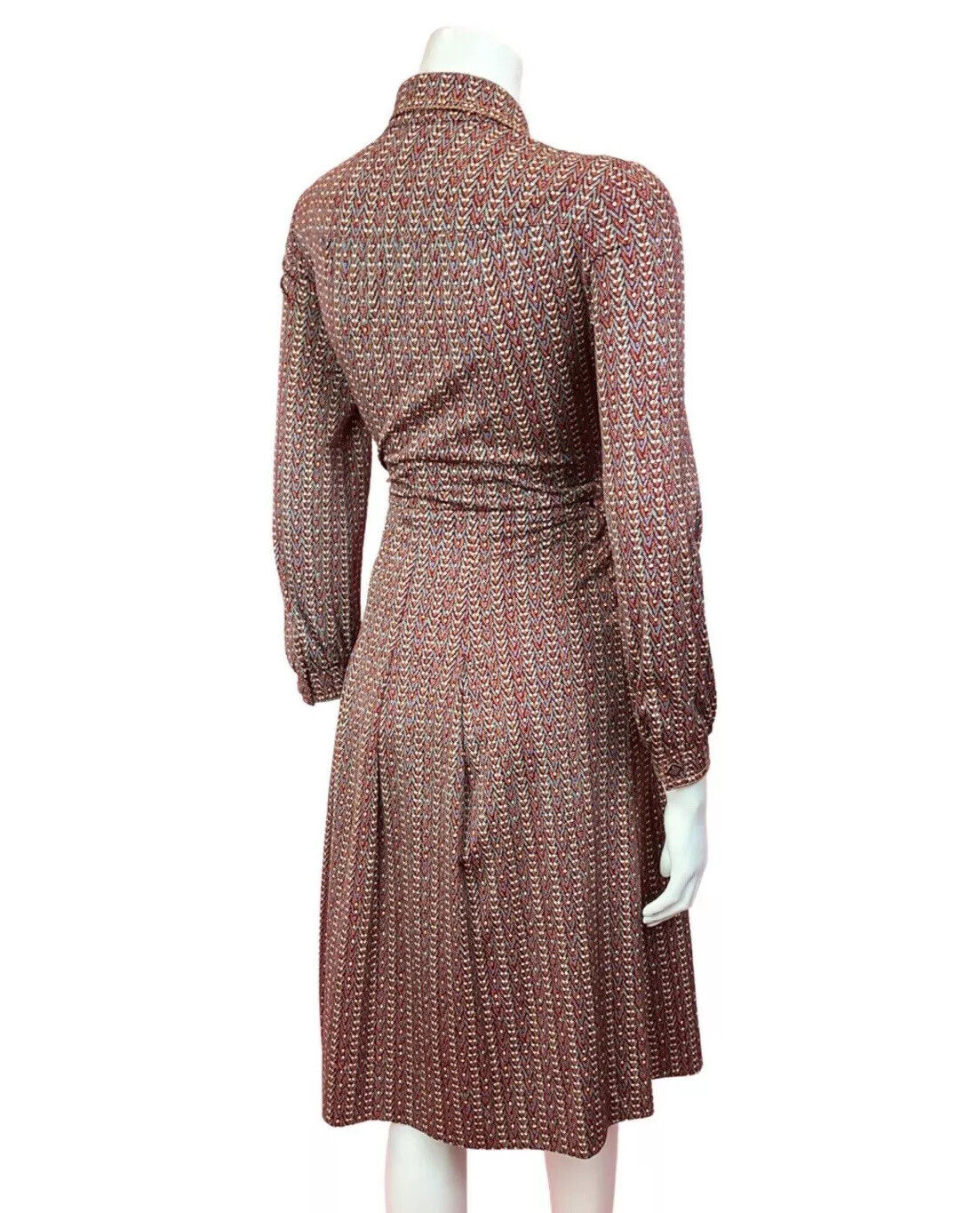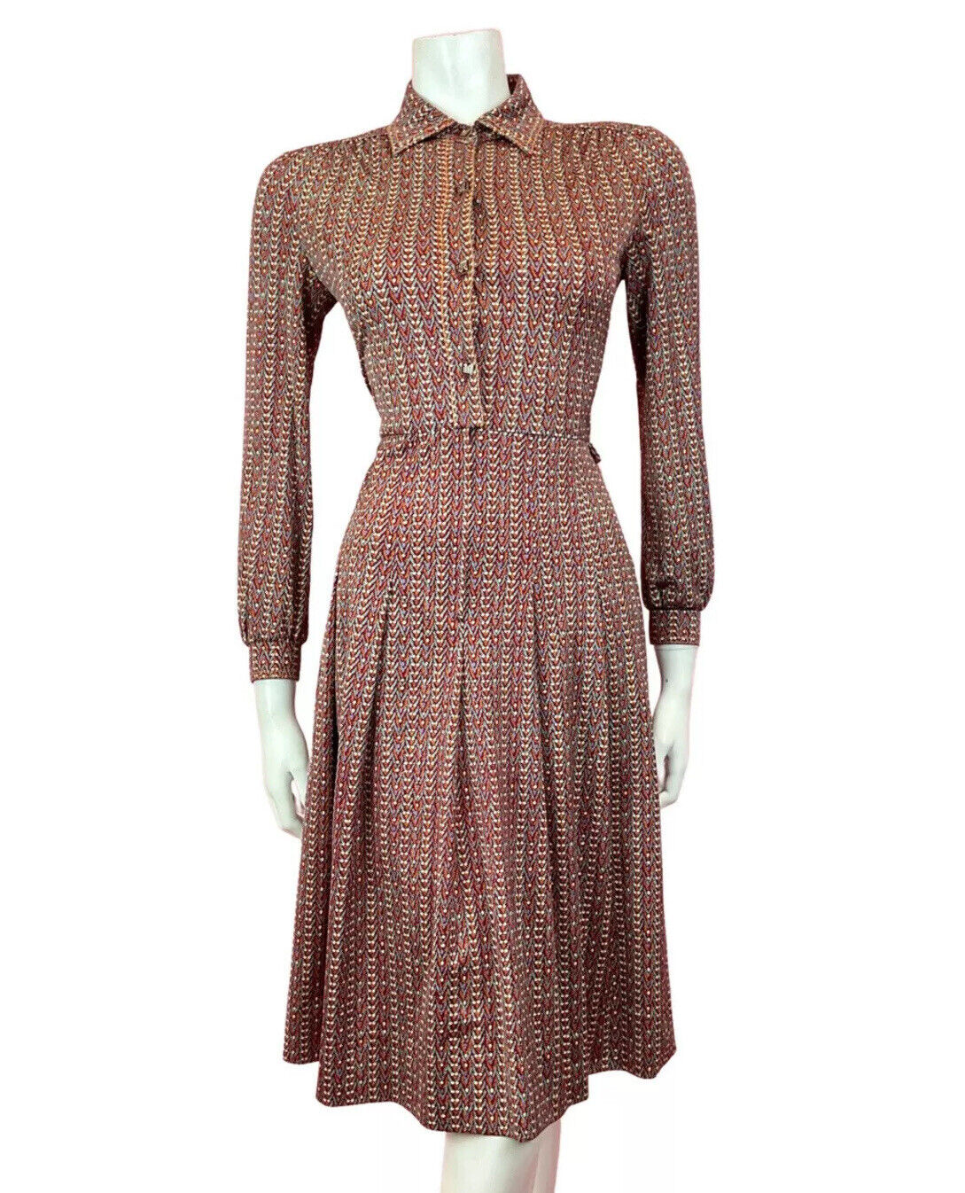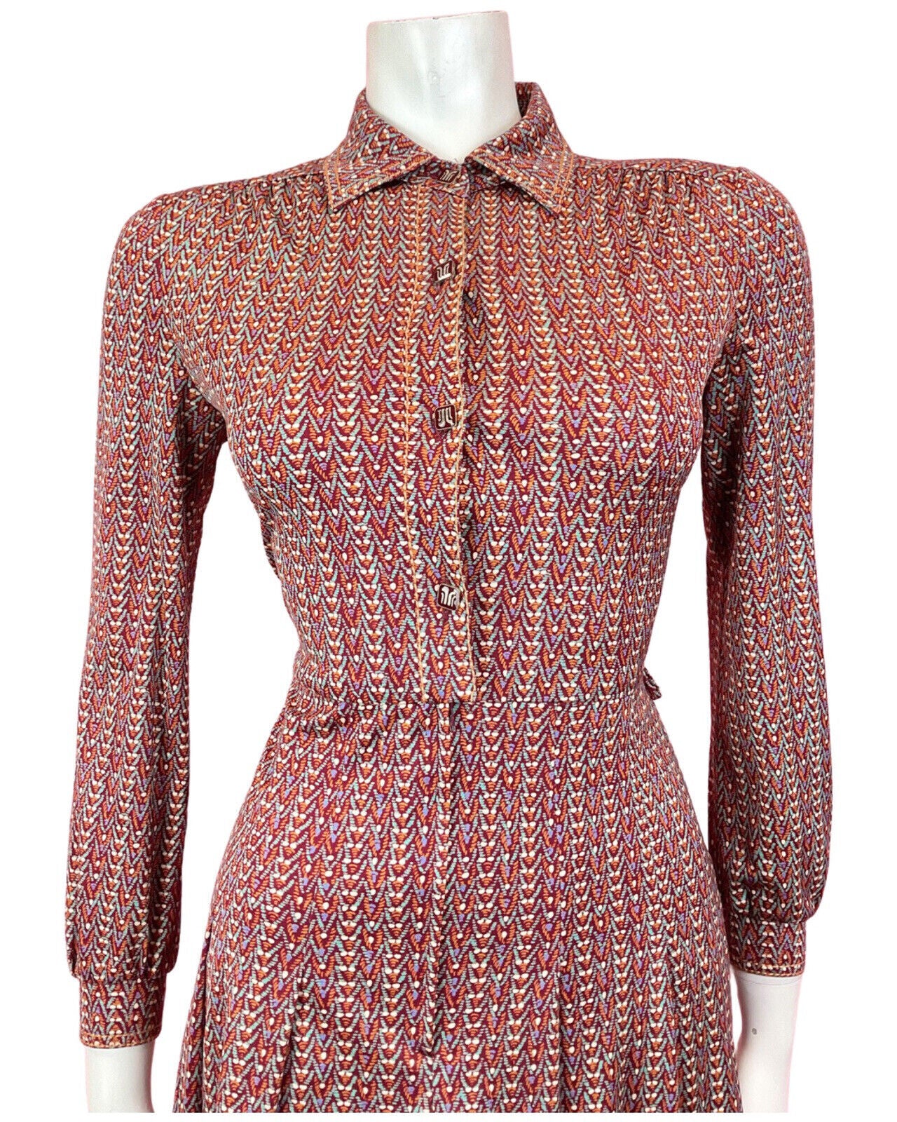 VINTAGE 60s 70s RED WHITE BLUE GEOMETRIC ZIG-ZAG DAGGER SHIRT DRESS 6 8