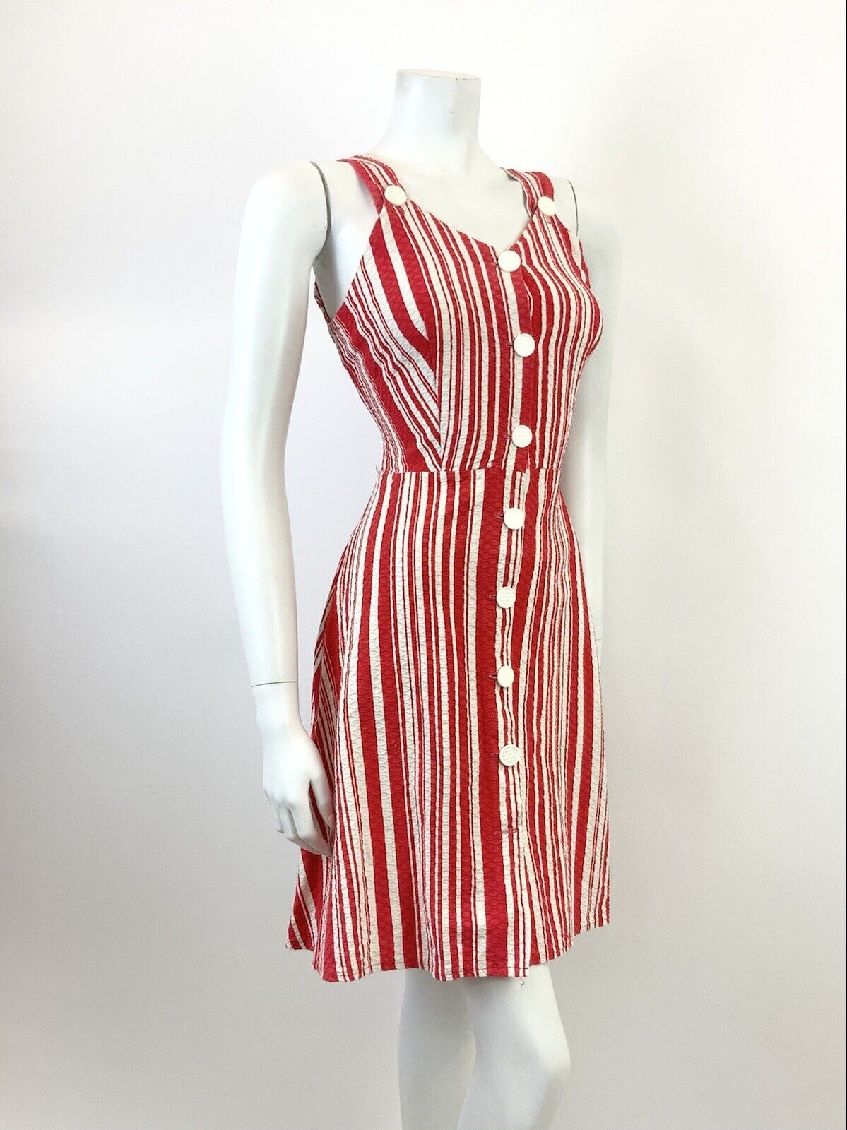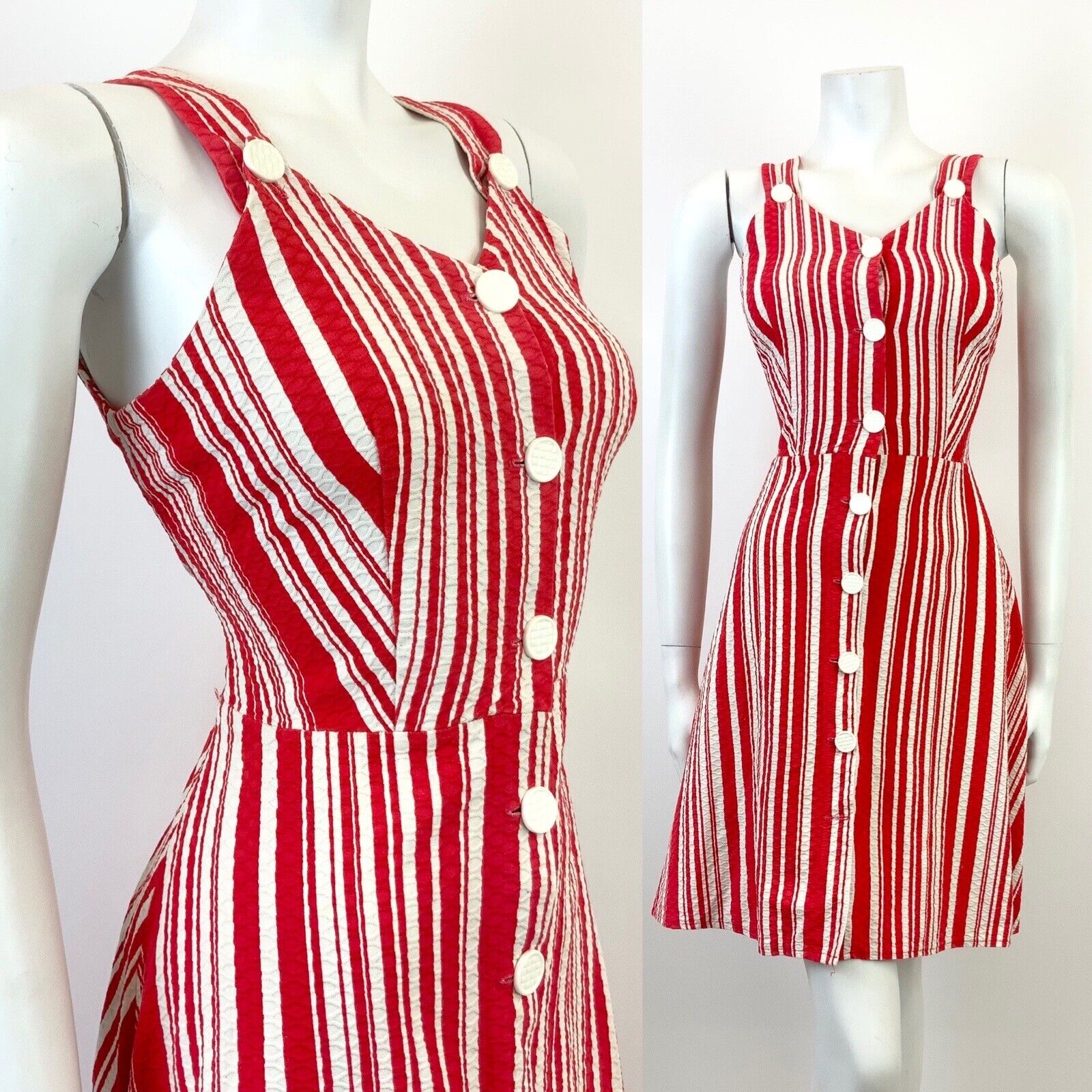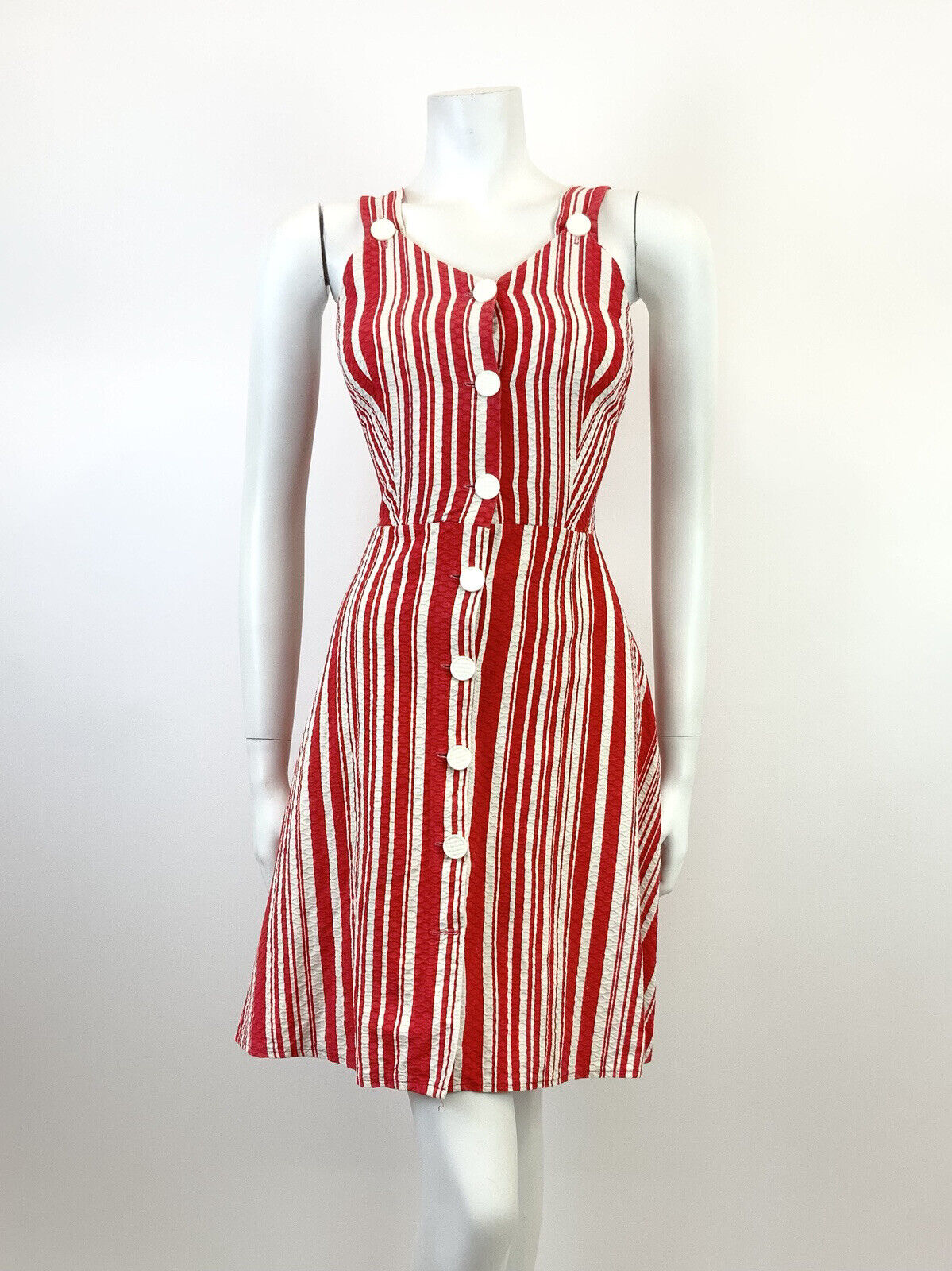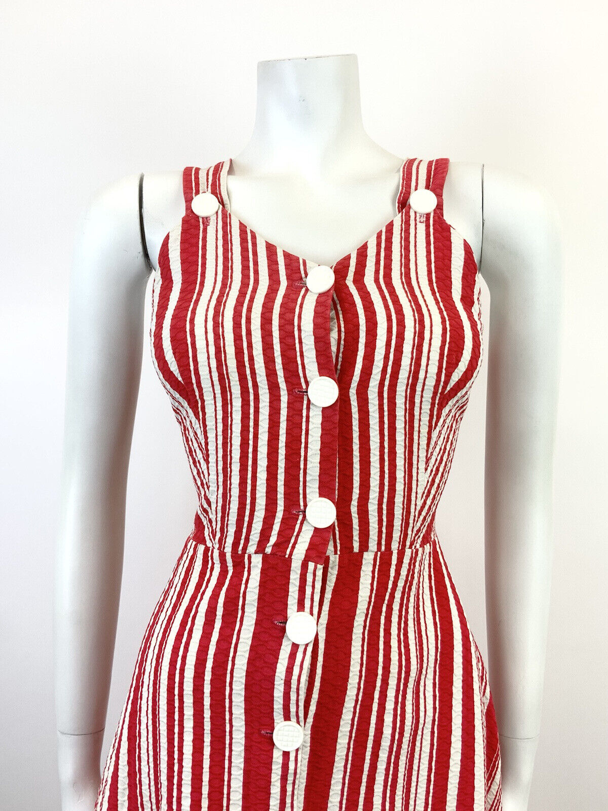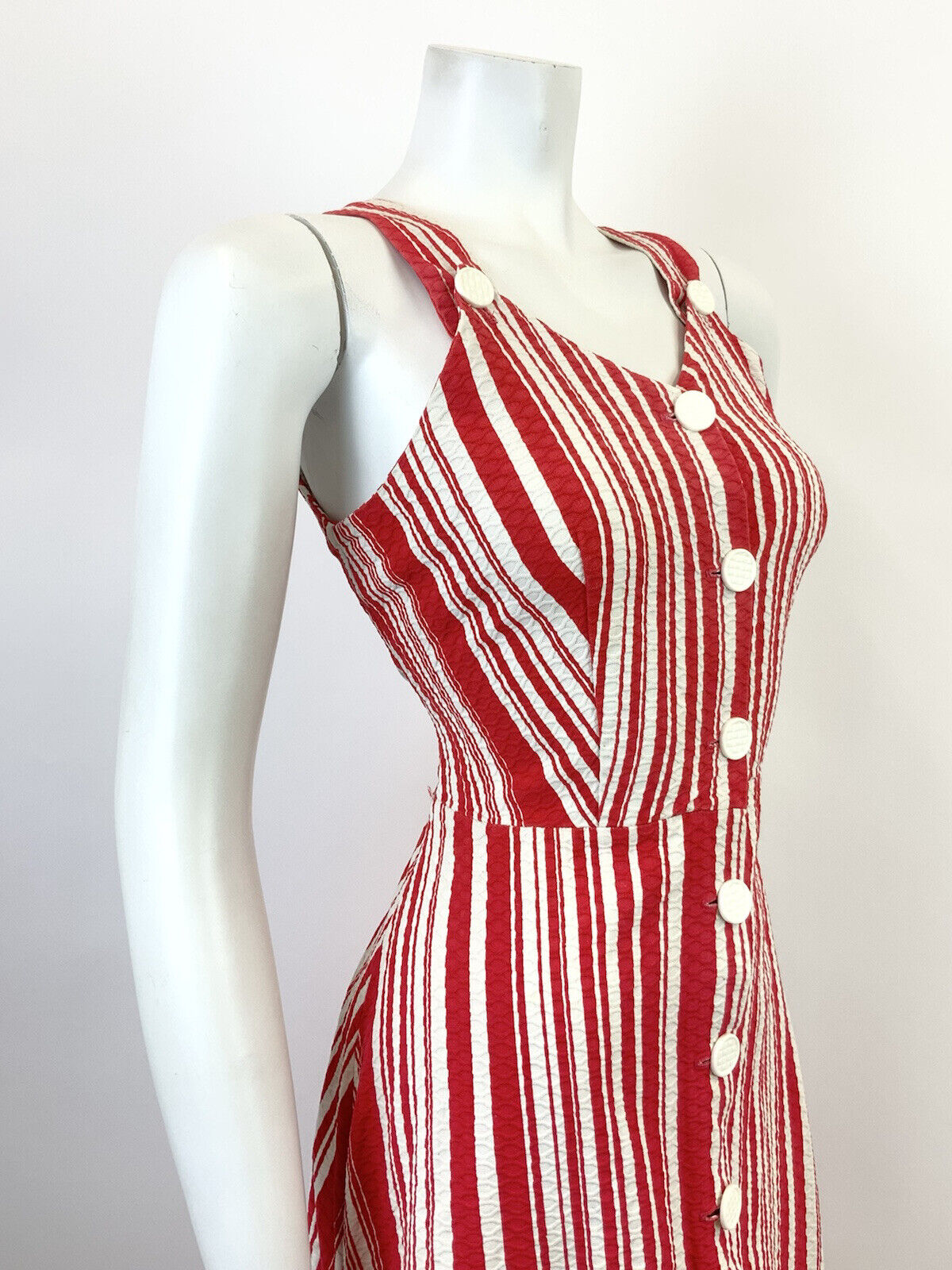 VINTAGE 60s 70s RED WHITE CANDY STRIPED SWEETHEART SLEEVELESS MOD SUN DRESS 8 10