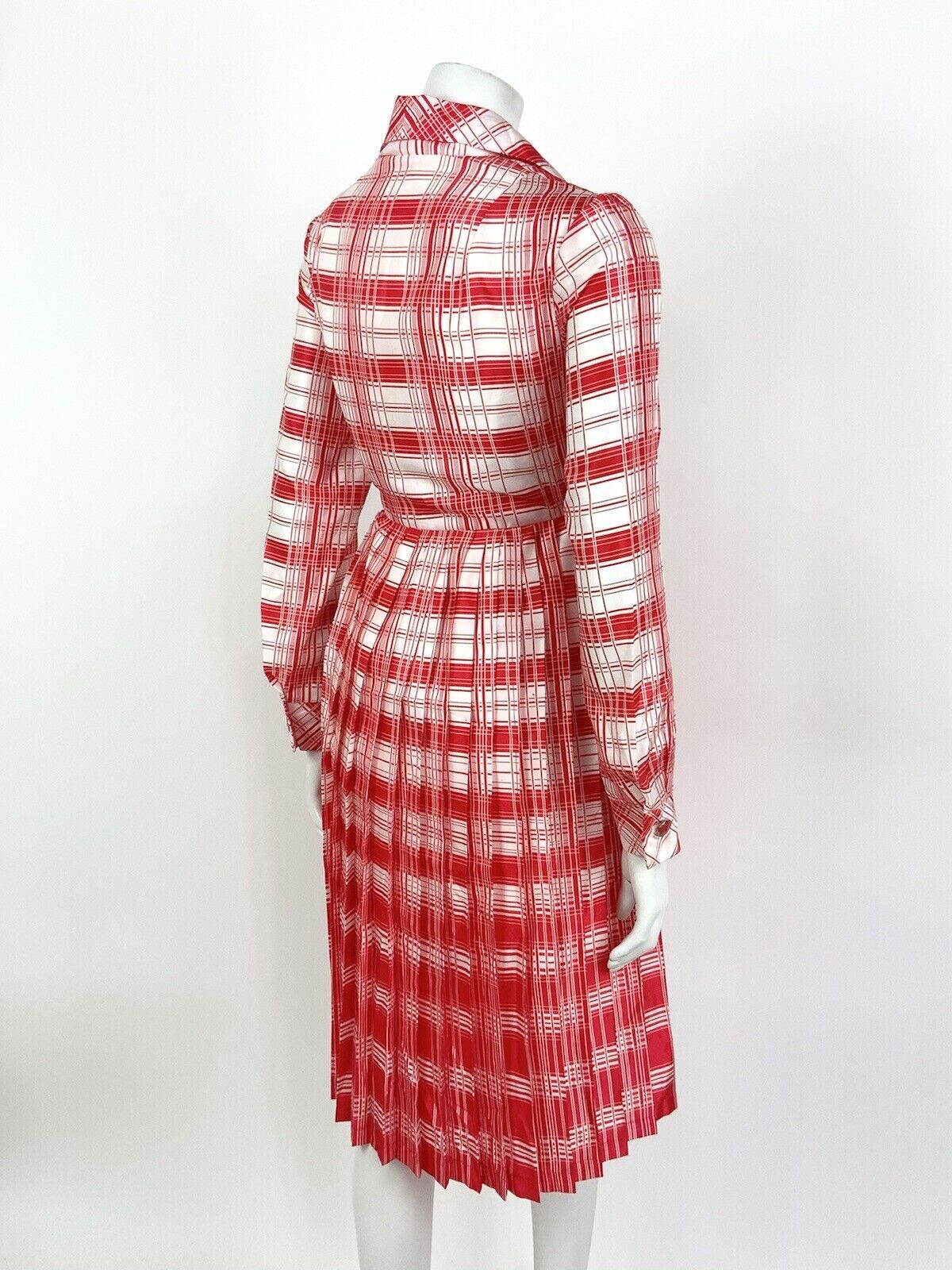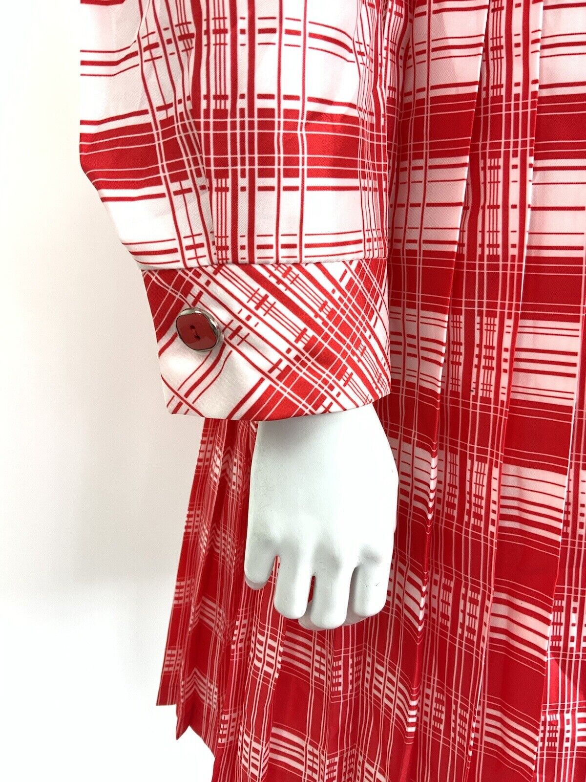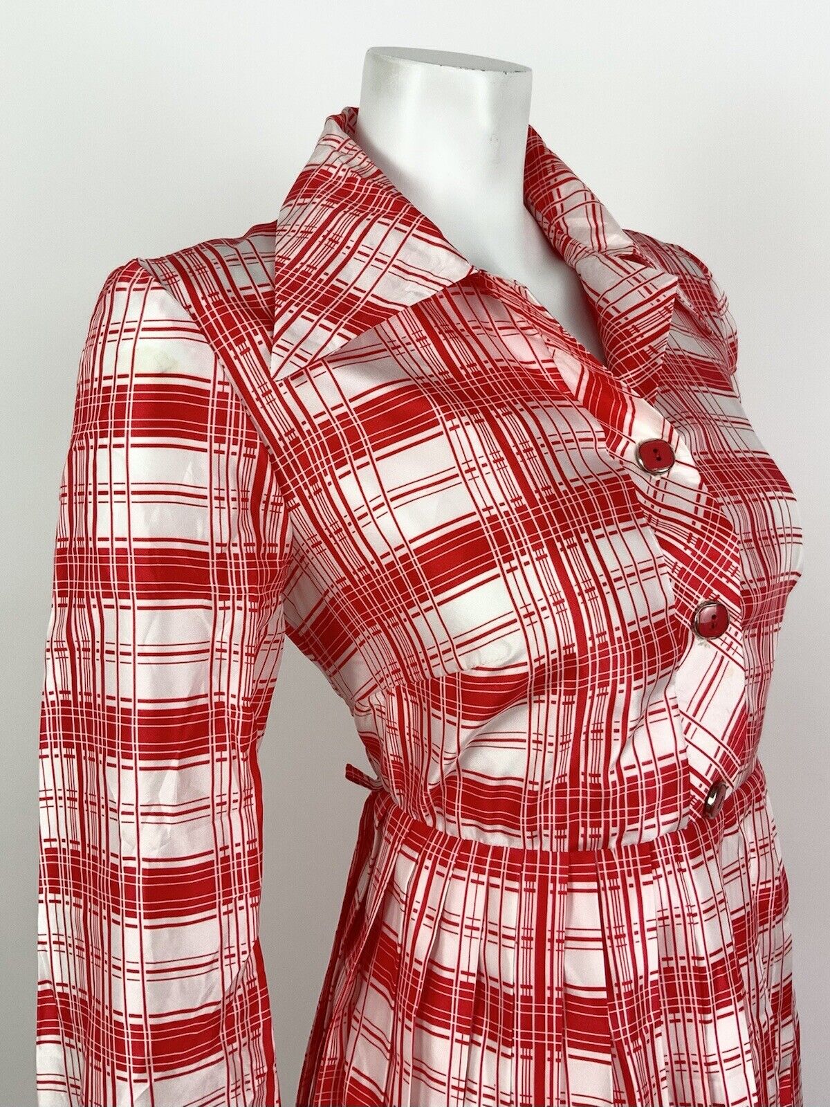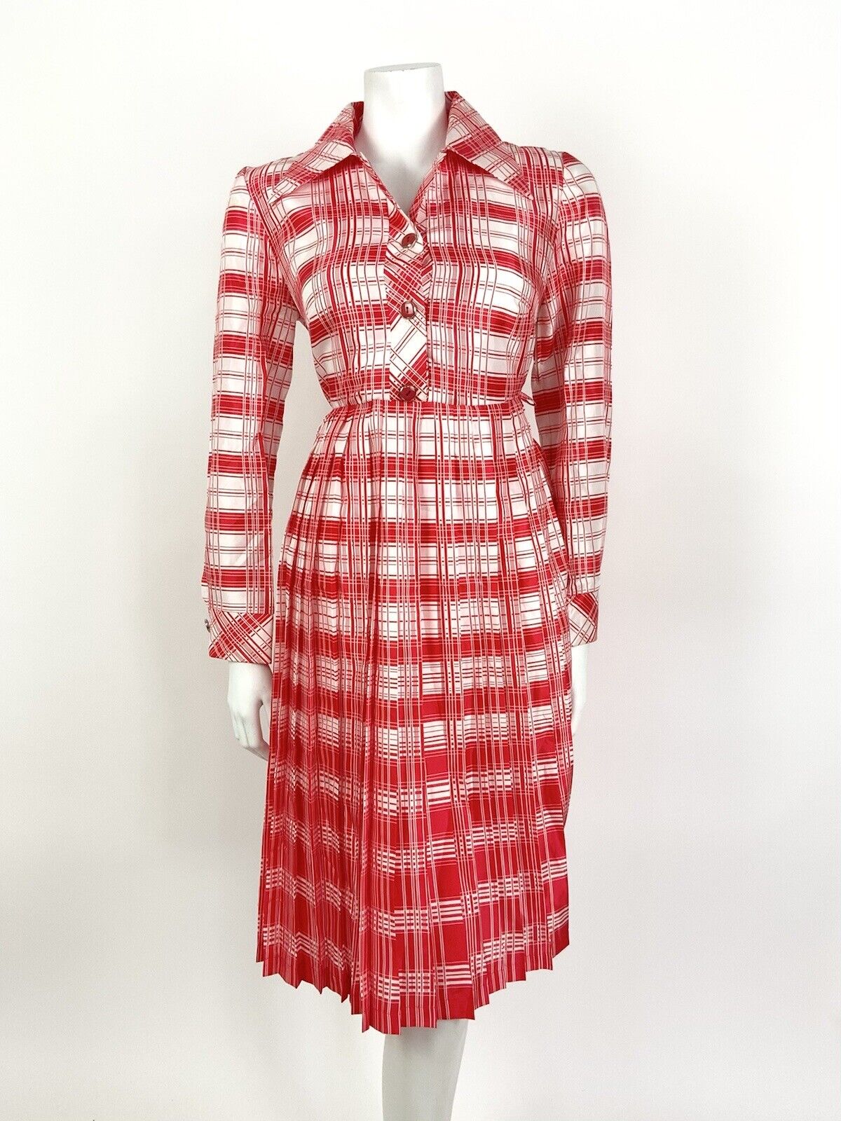 VINTAGE 60s 70s RED WHITE CHECKED PLAID MOD DAGGER COLLAR SHIRT DRESS 12