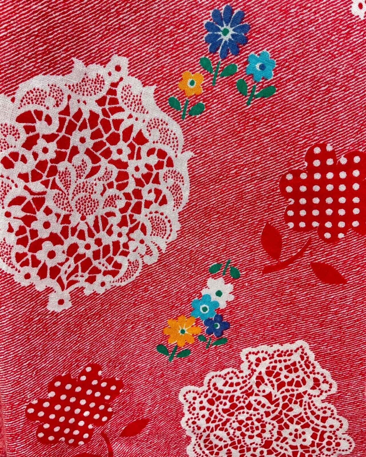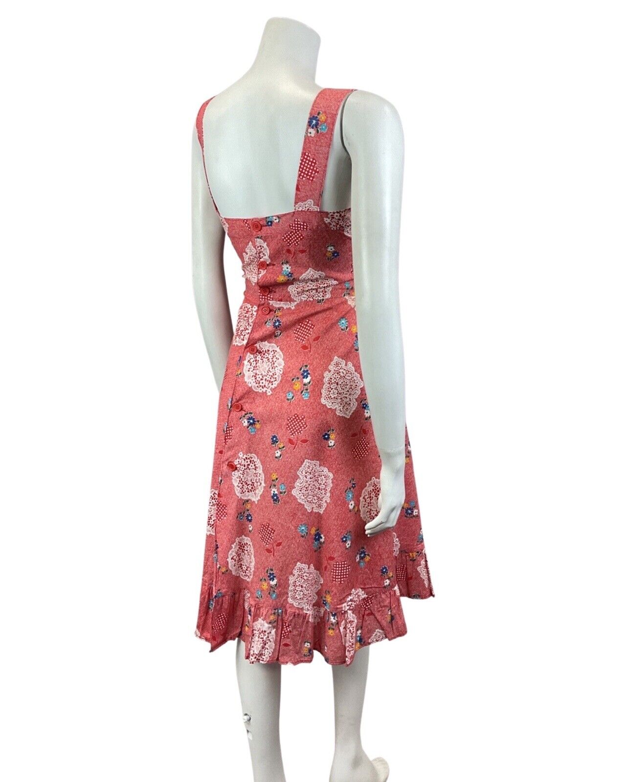 VINTAGE 60s 70s RED WHITE STRIPED DITSY FLOWER LACE PRAIRIE APRON SUN DRESS 8