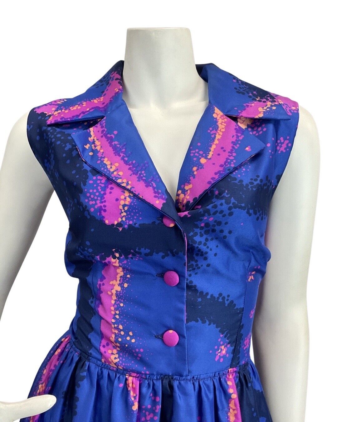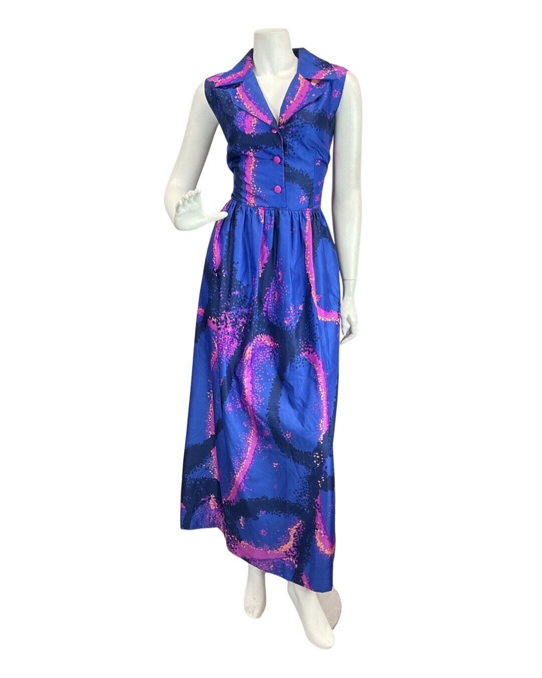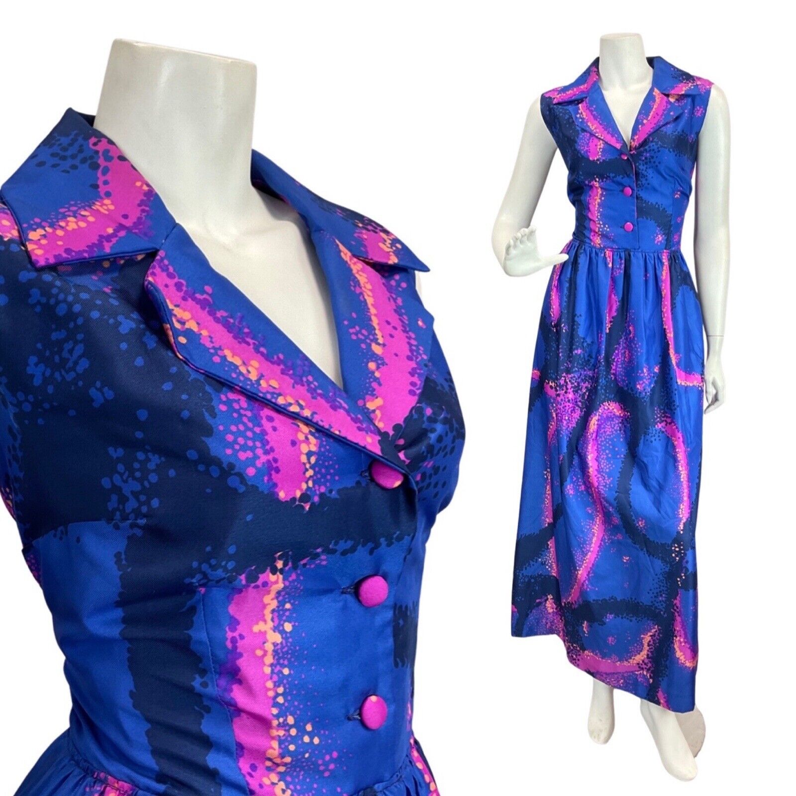 VINTAGE 60s 70s ROYAL BLUE PINK PSYCHEDELIC SPRAY PAINT MOD SHIRT MAXI DRESS 12
