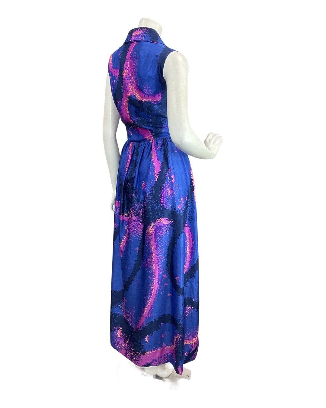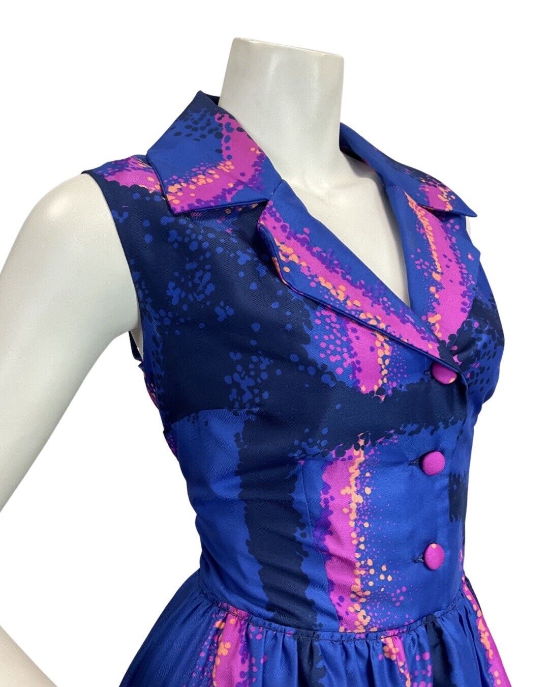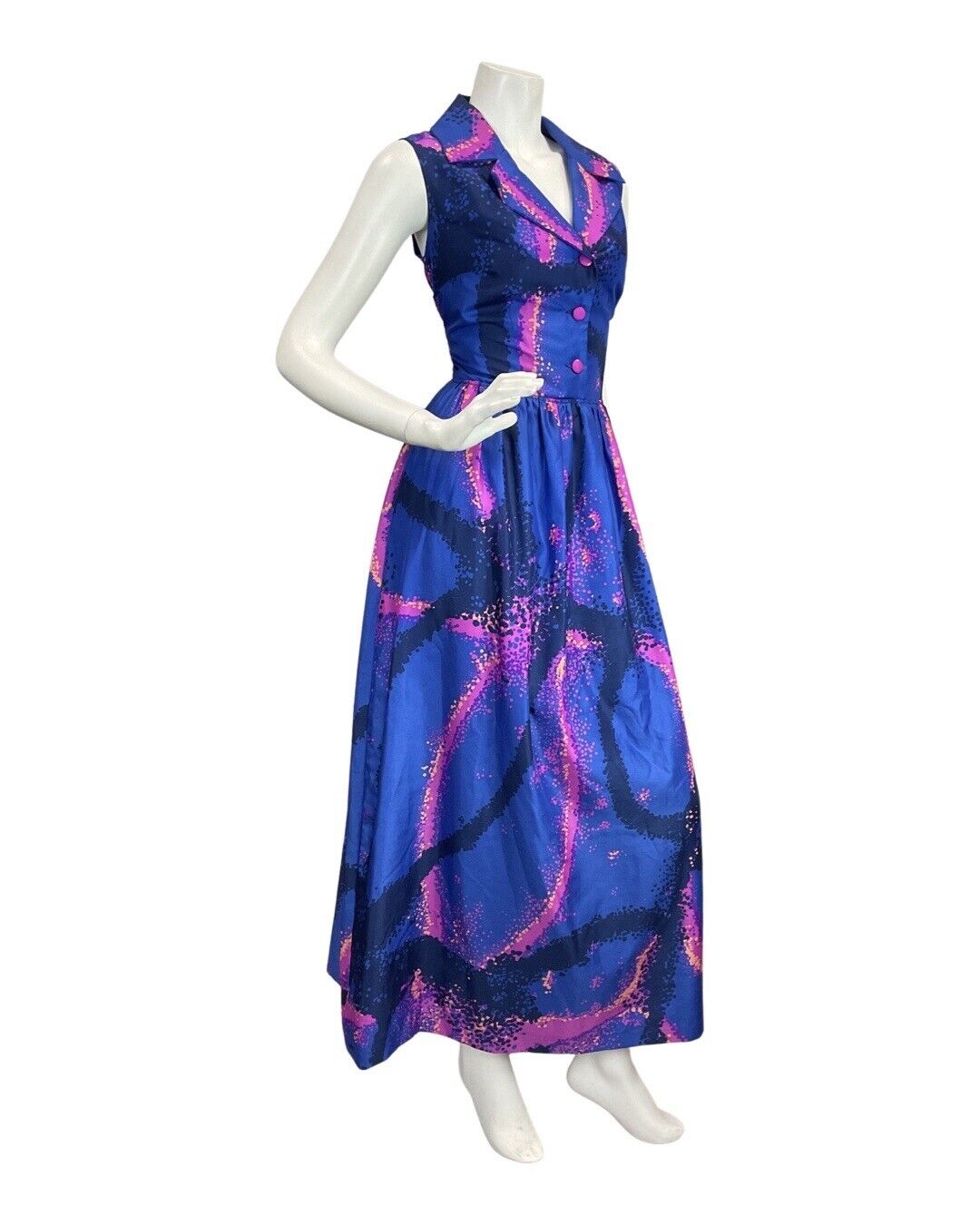 VINTAGE 60s 70s ROYAL BLUE PINK PSYCHEDELIC SPRAY PAINT MOD SHIRT MAXI DRESS 12