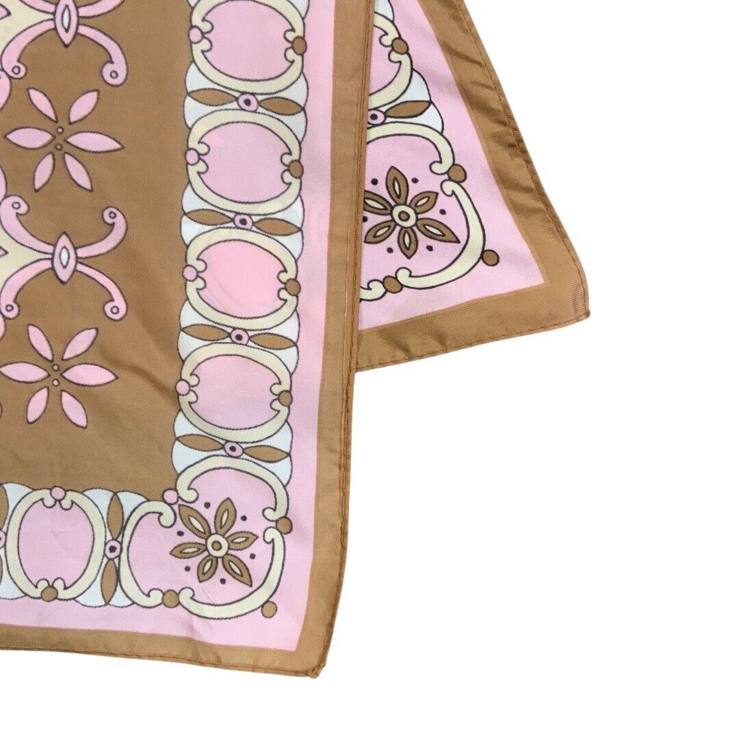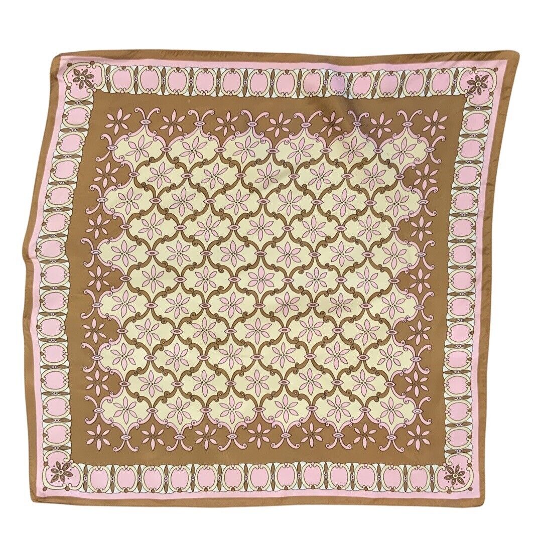 VINTAGE 60s 70s SCARF BROWN, BEIGE, PINK, GEOMETRIC, MOD, ABSTRACT PRINT