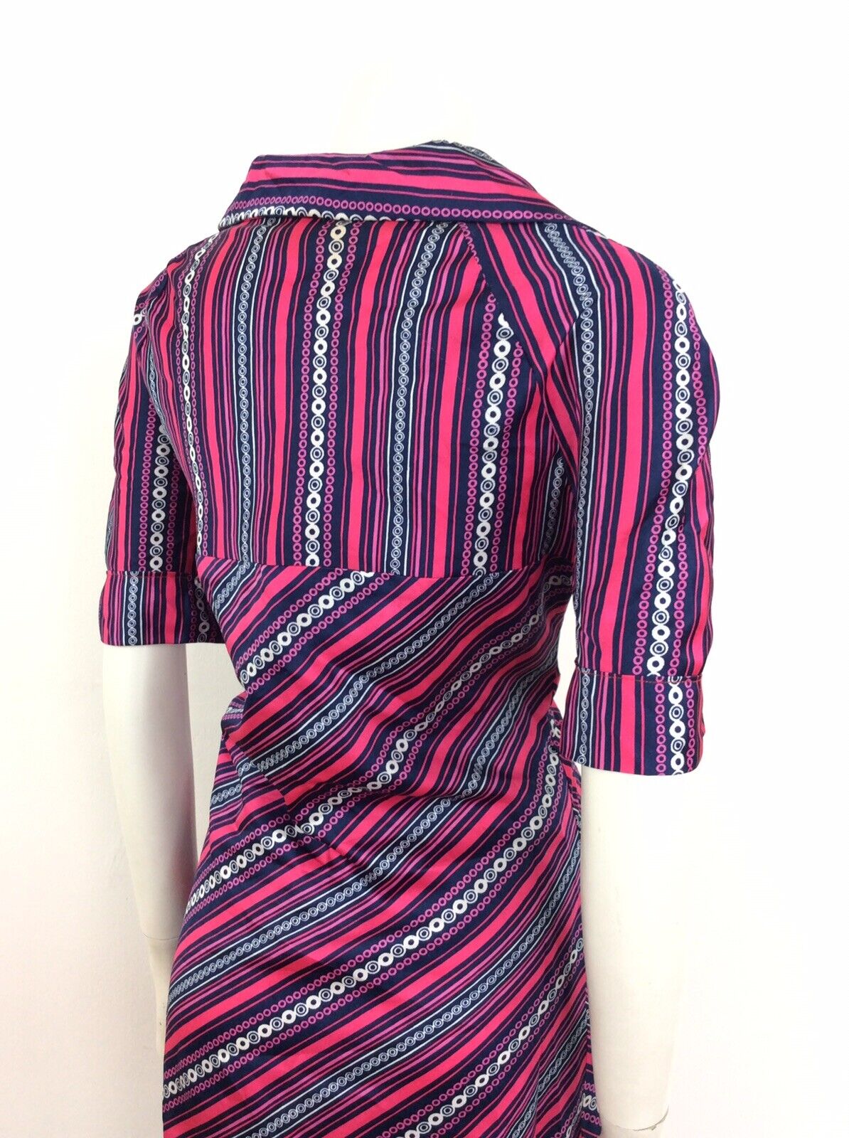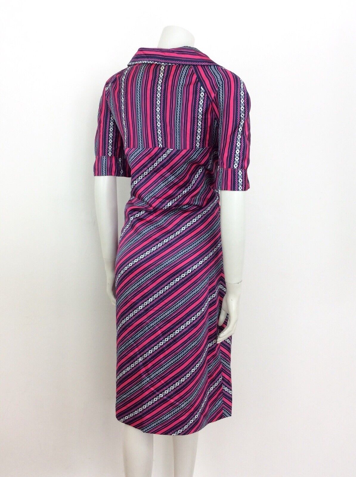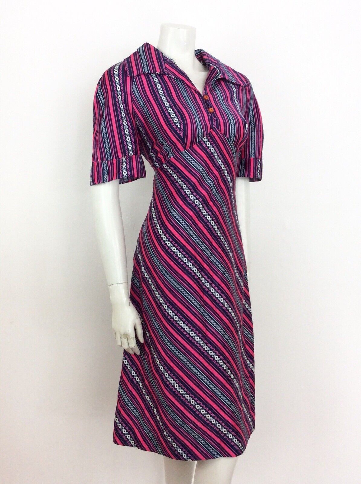 VINTAGE 60s 70s STRIPED CIRCLE GEOMETRIC SHIRT DRESS PINK BLUE WHITE 14