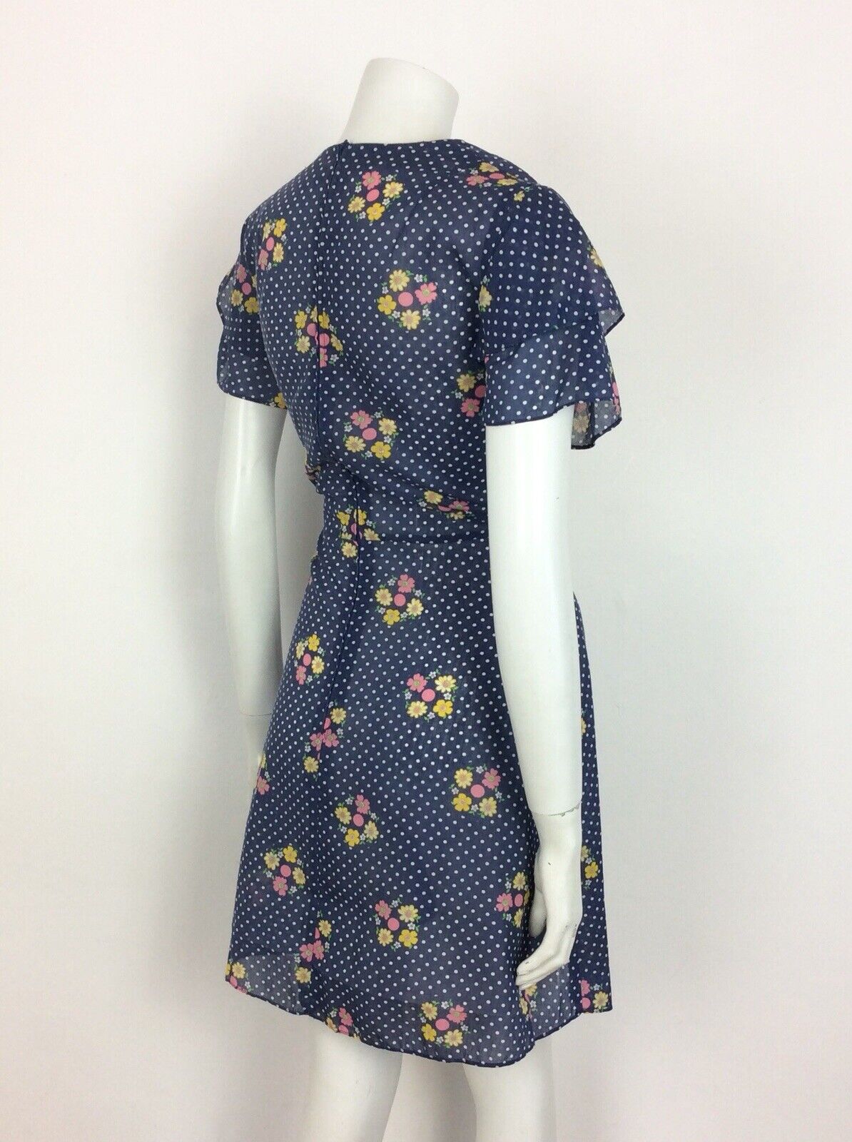 VINTAGE 60s 70s TEA DRESS POLKA DOT FLORAL RUFFLE BLUE WHITE PINK YELLOW 12