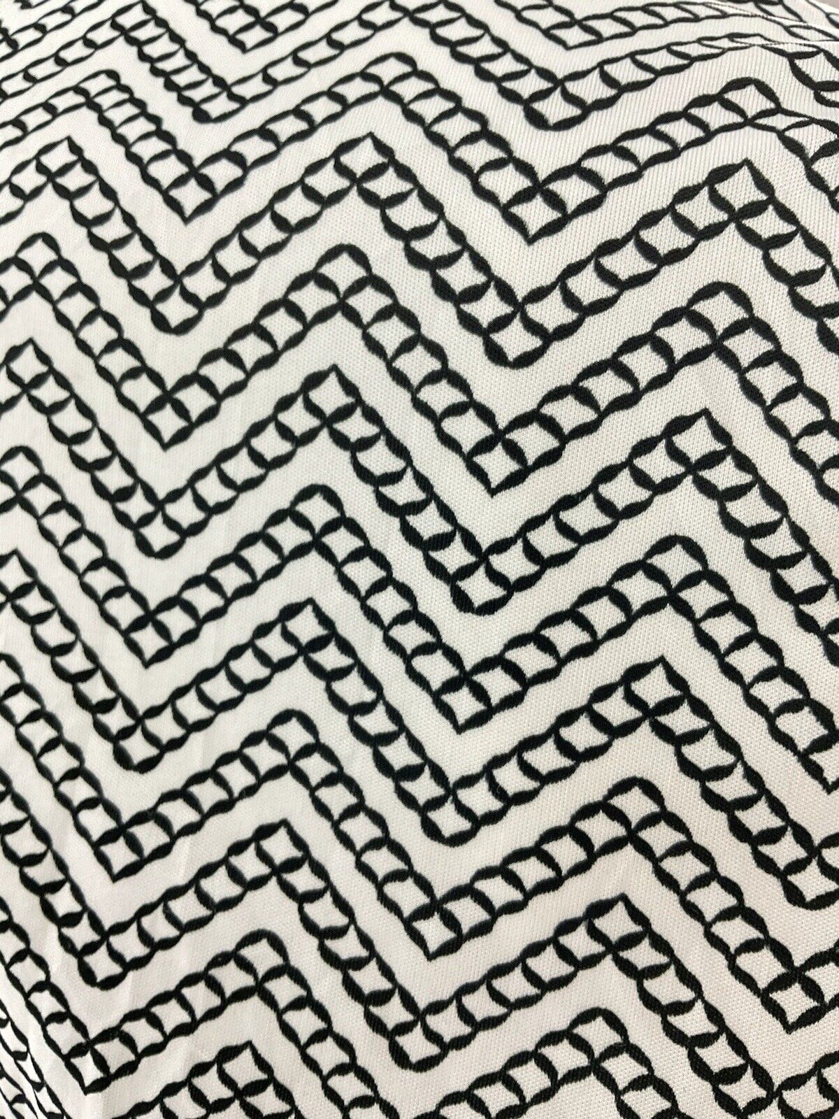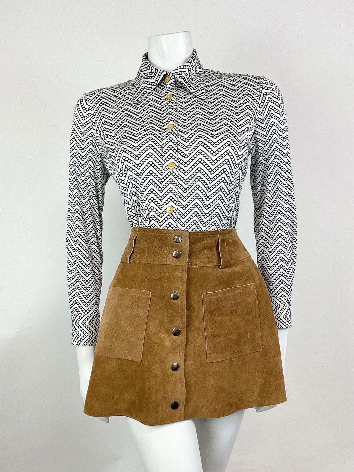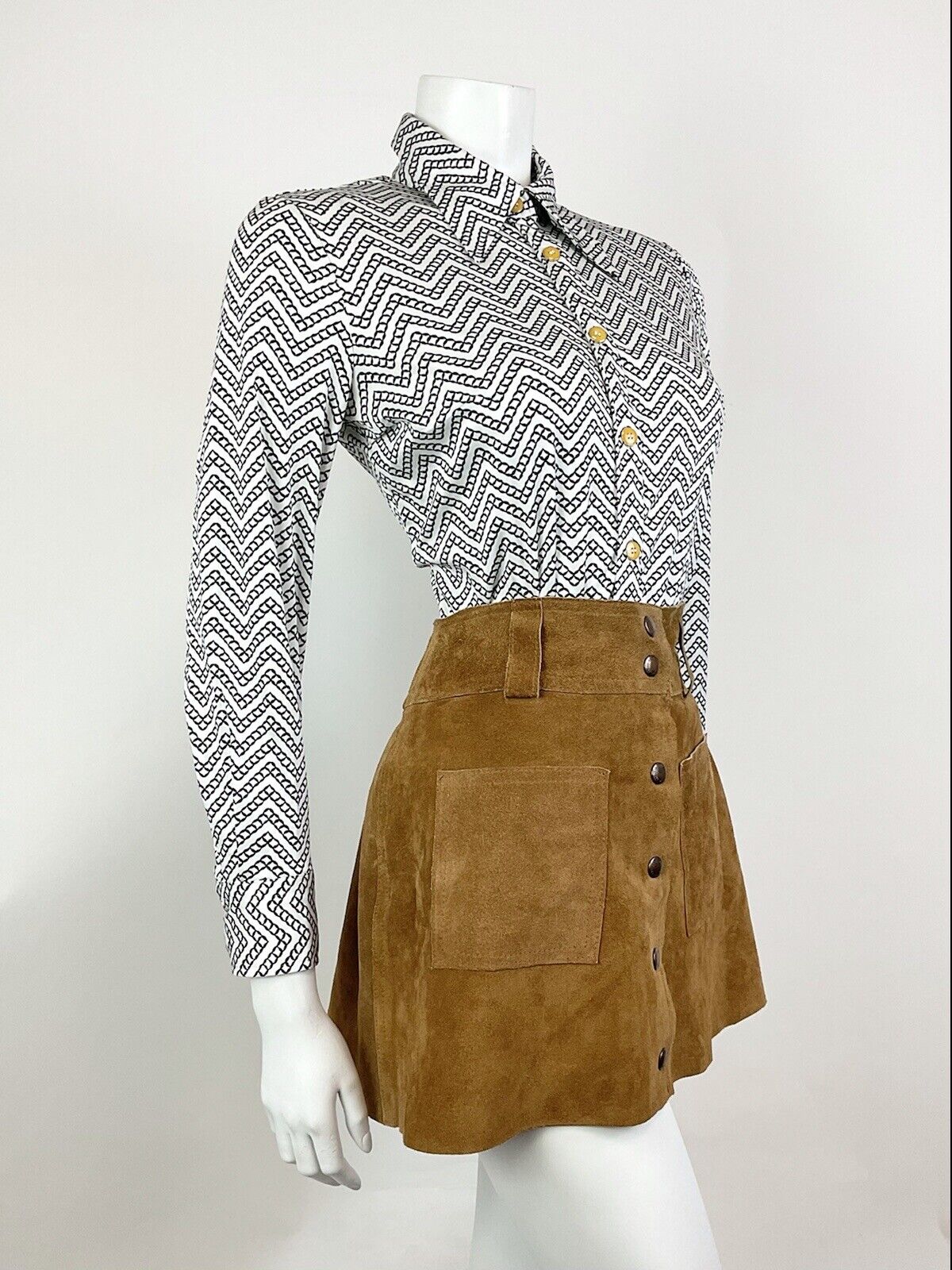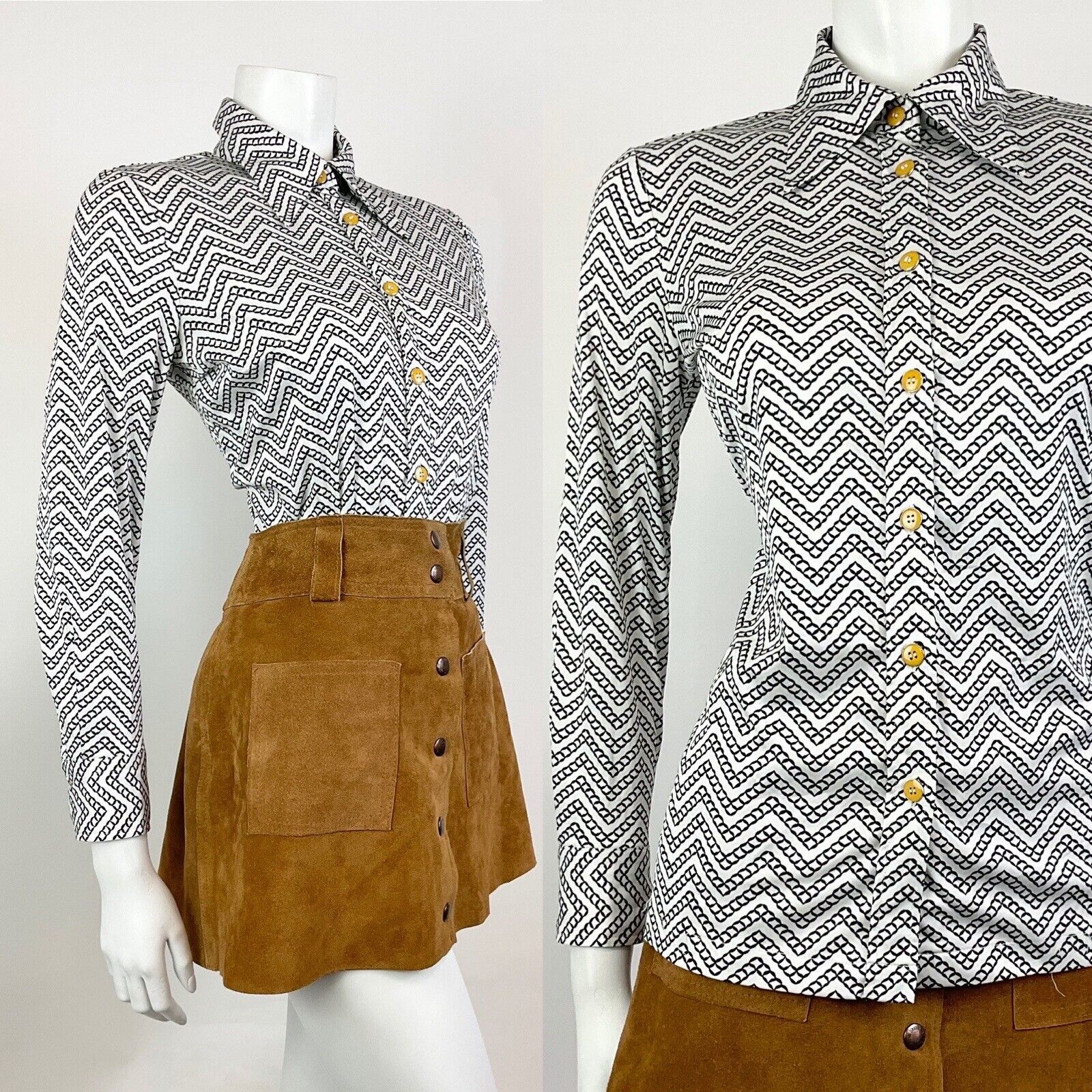 VINTAGE 60s 70s WHITE BLACK ZIG-ZAG CHAIN-LINK GEOMETRIC MOD DAGGER SHIRT 12