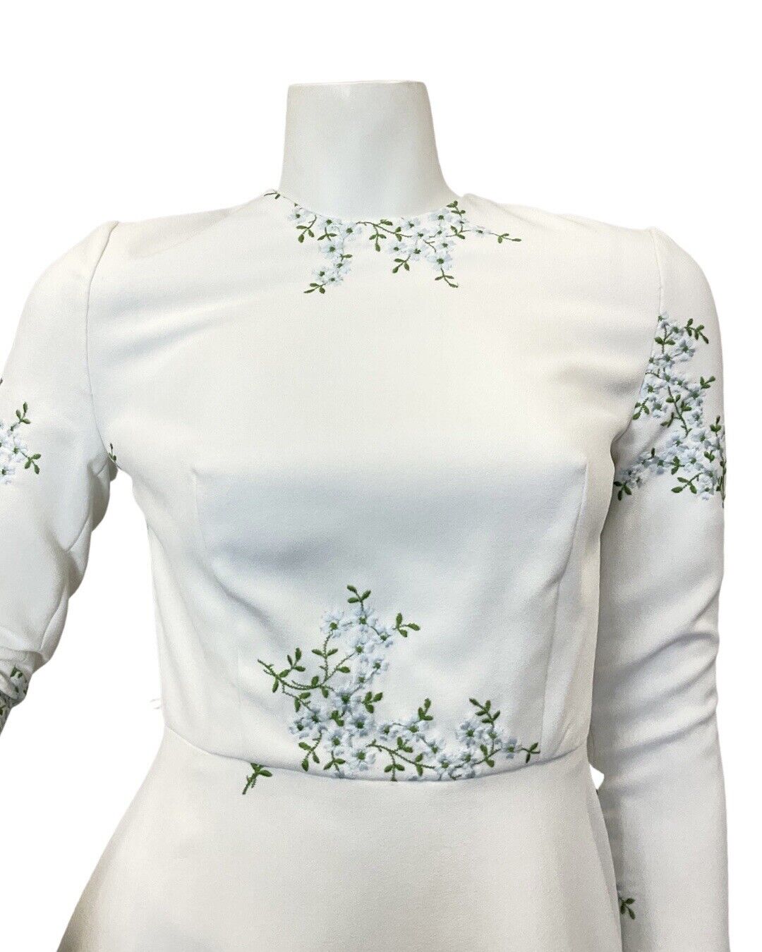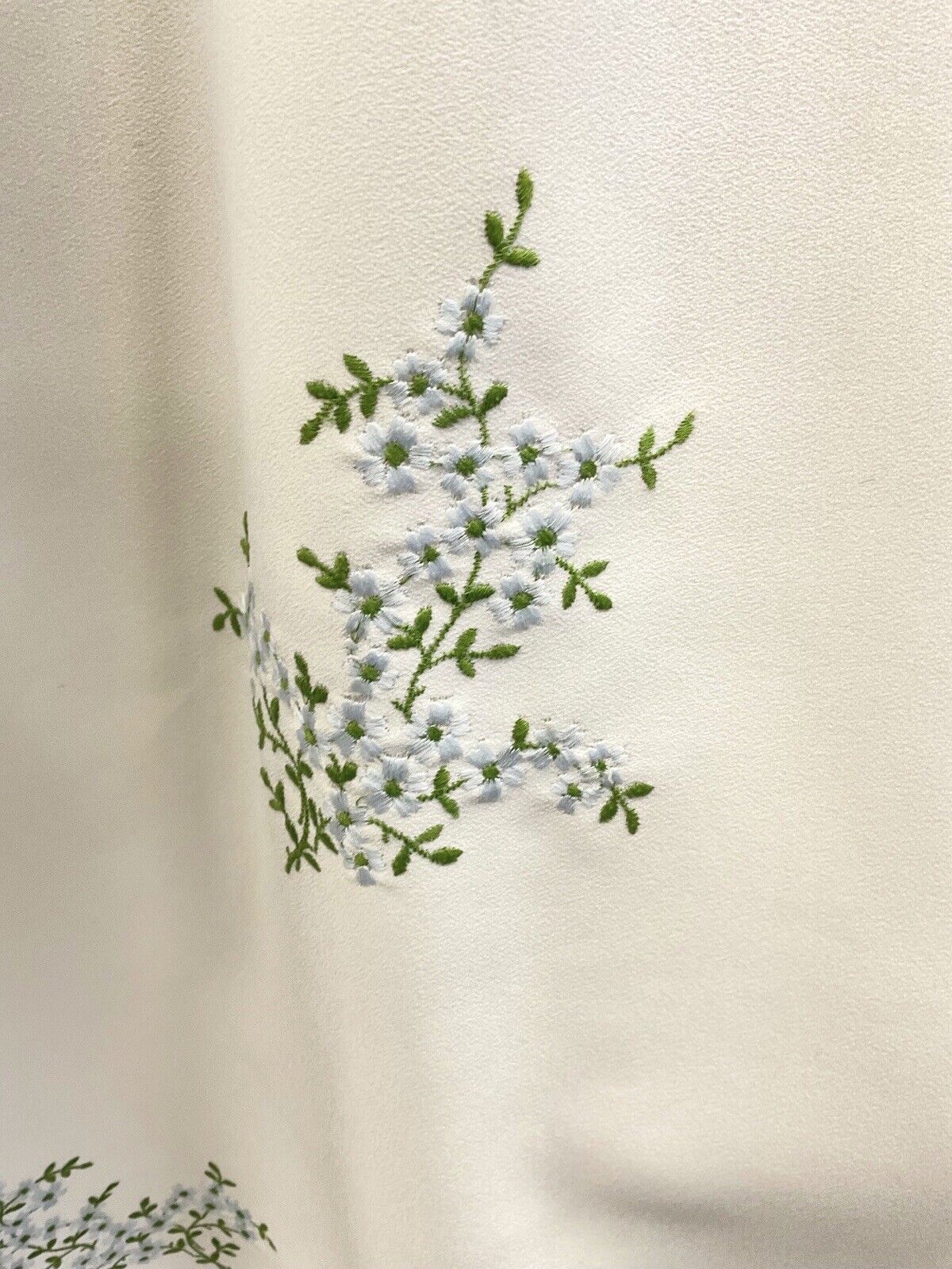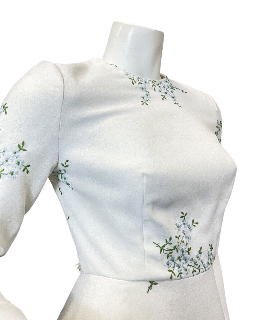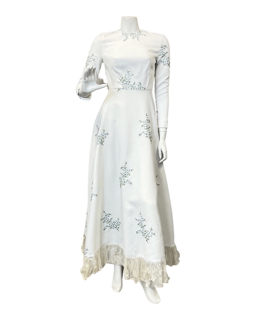 VINTAGE 60s 70s WHITE BLUE GREEN FLORAL EMBROIDERED PRAIRIE WEDDING MAXI DRESS 6