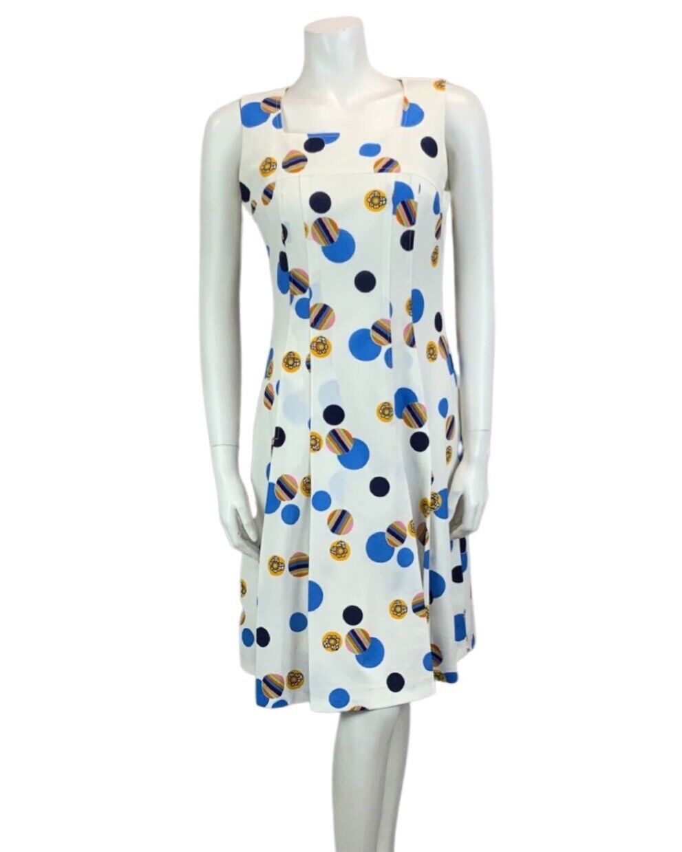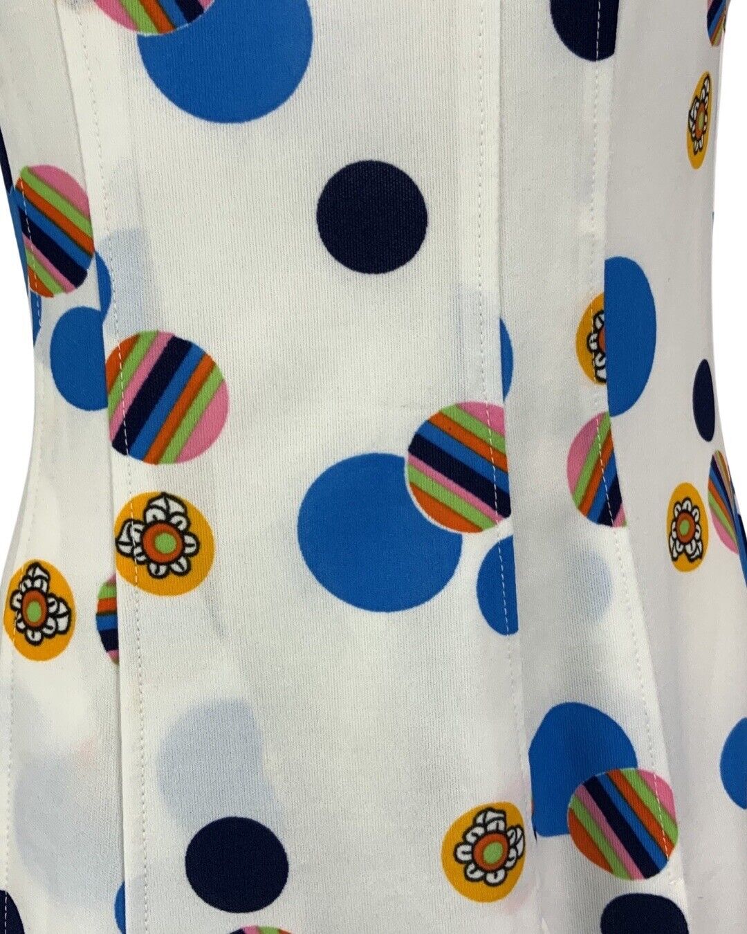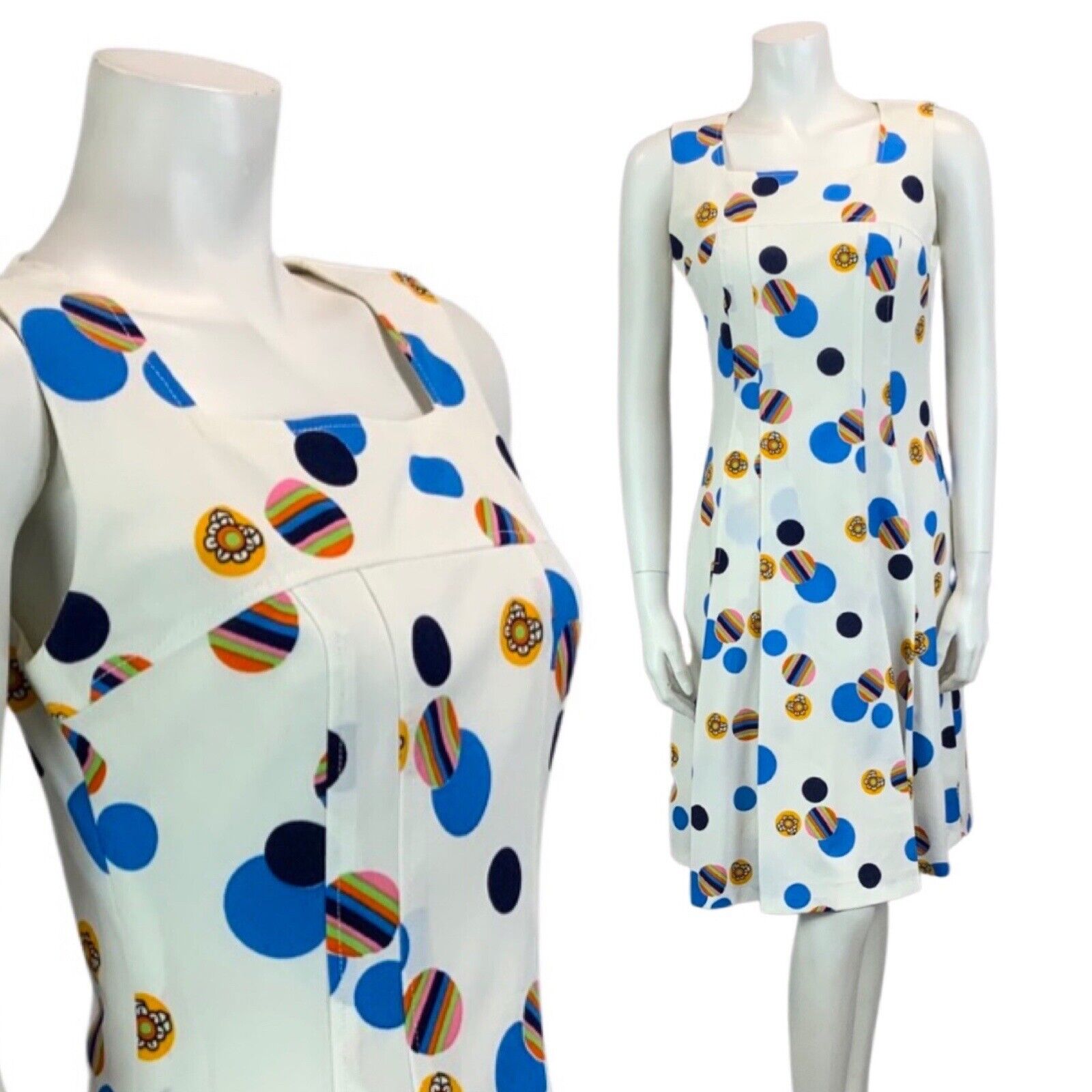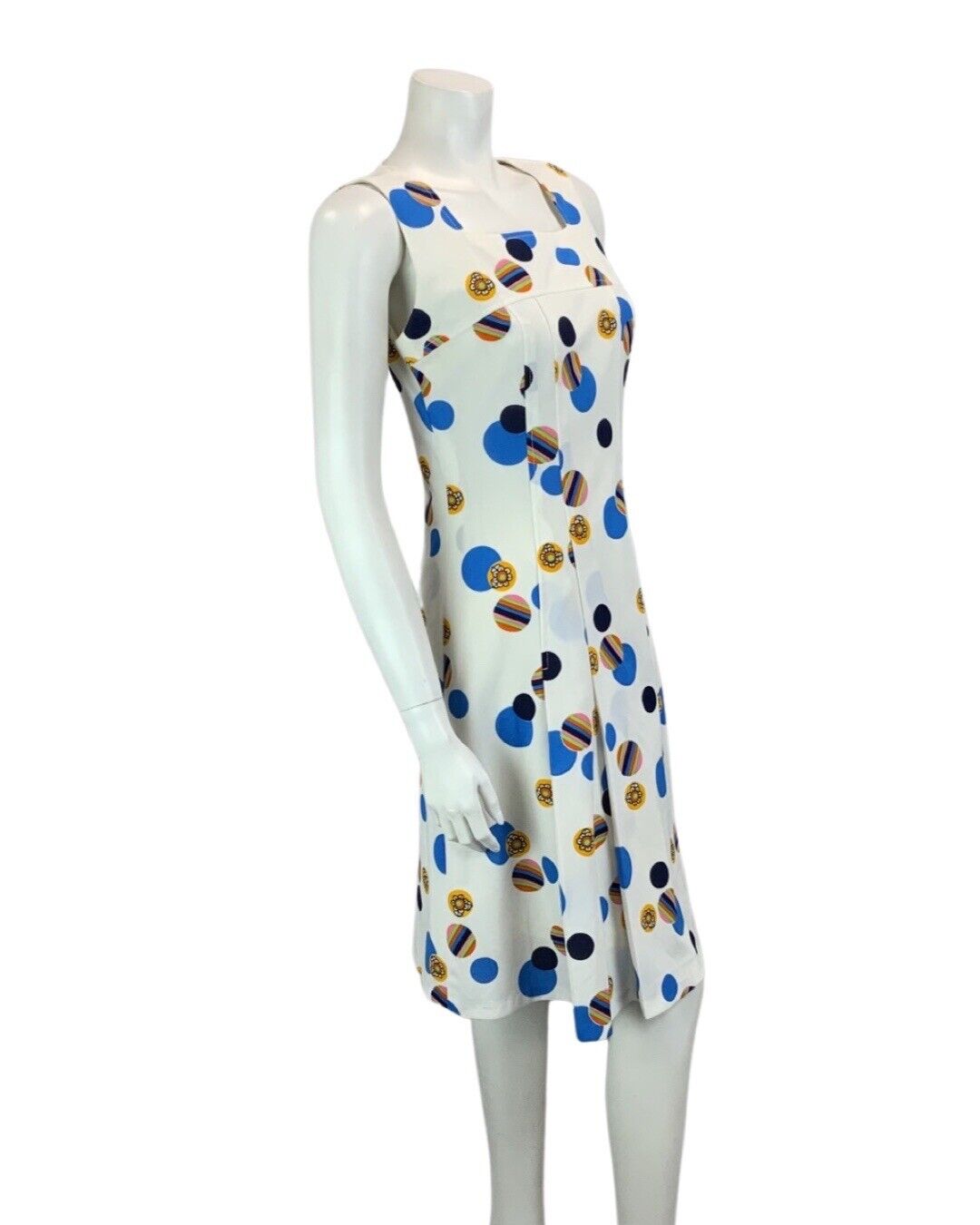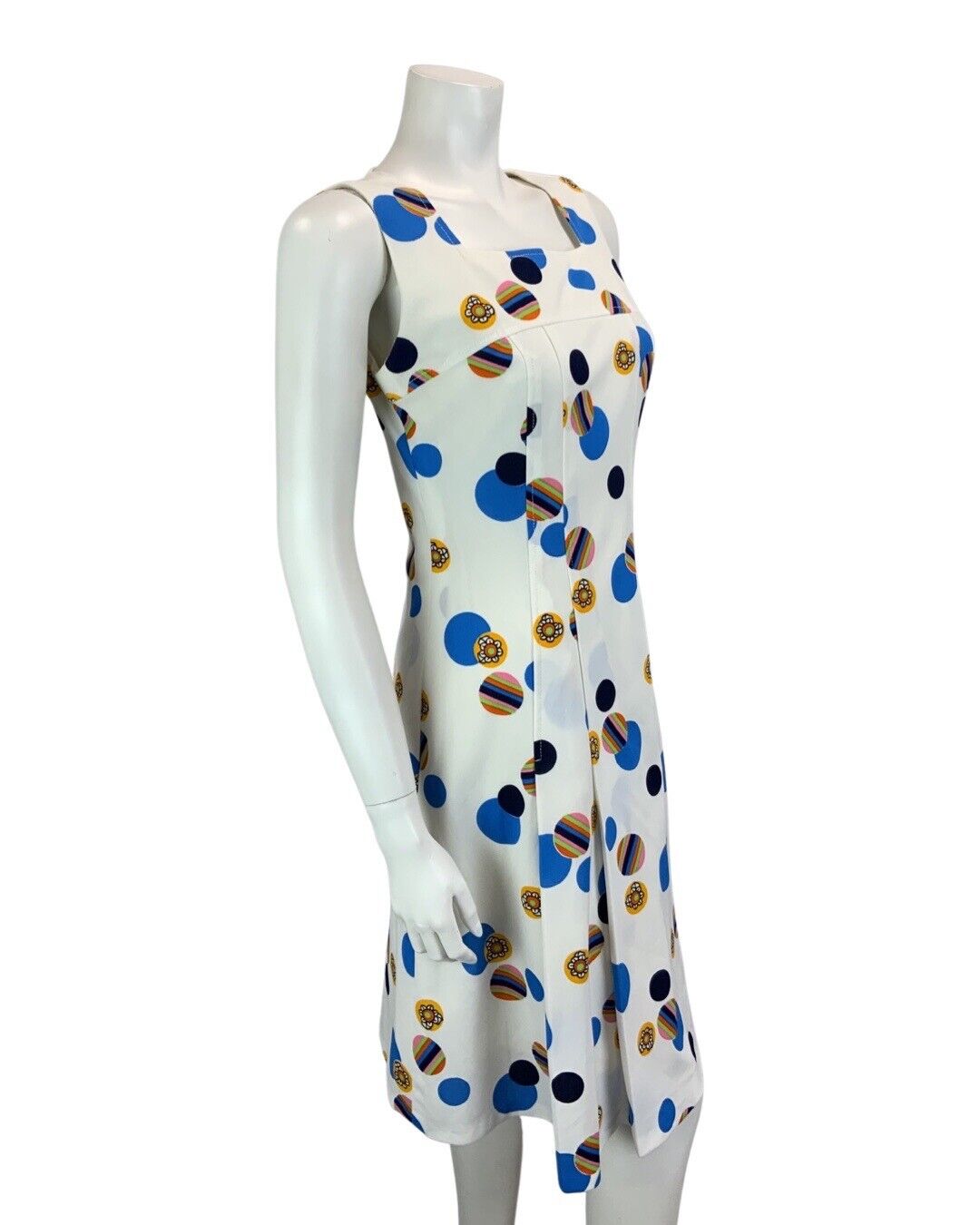 VINTAGE 60s 70s WHITE BLUE NAVY PINK SPOTTY ABSTRACT PRINT MOD DRESS DRESS 10
