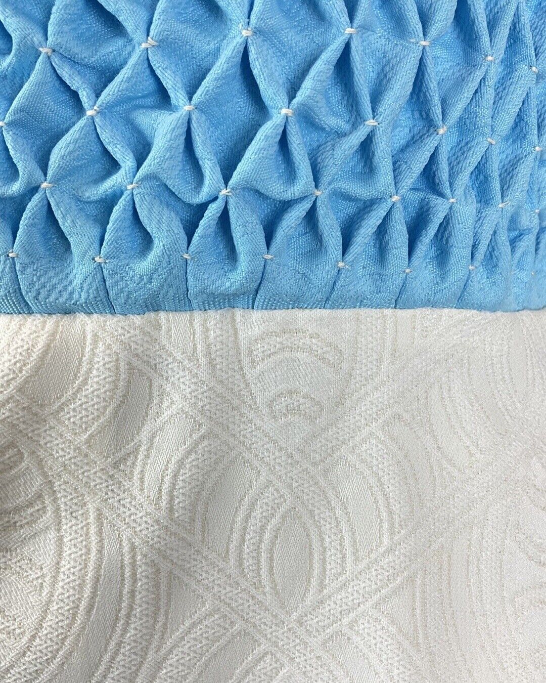 VINTAGE 60s 70s WHITE BLUE SWIRL SCALLOPED MOD SHORT SLEEVE FIT & FLARE DRESS 10