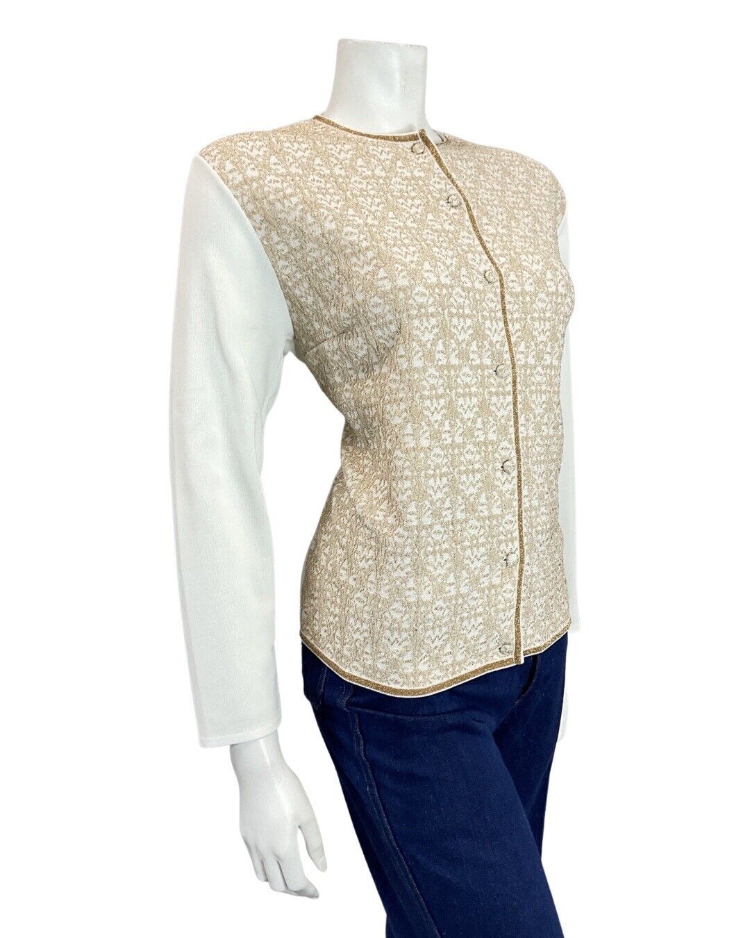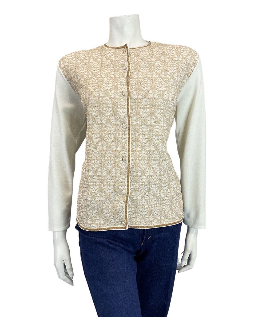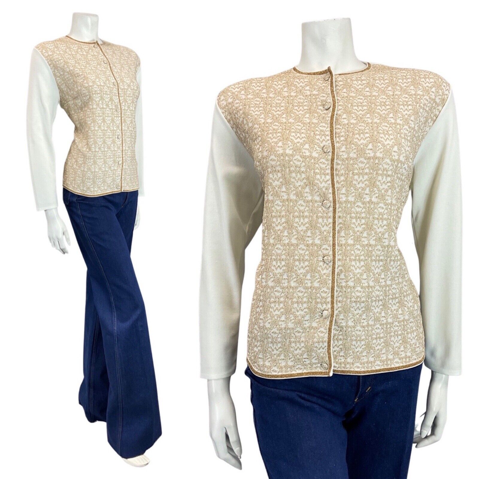 VINTAGE 60s 70s WHITE GOLD EMBROIDERED BUTTONED LUREX JACKET TOP 14 16