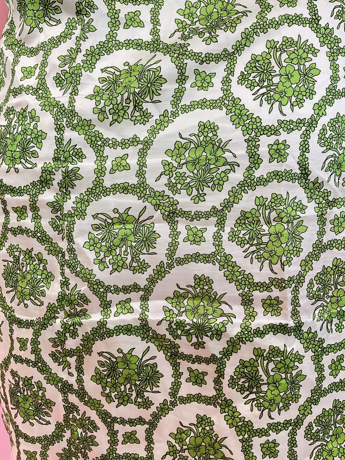 VINTAGE 60s 70s WHITE GREEN FLORAL DAISY CHAIN MOD DAGGER SHIRT DRESS 10 12