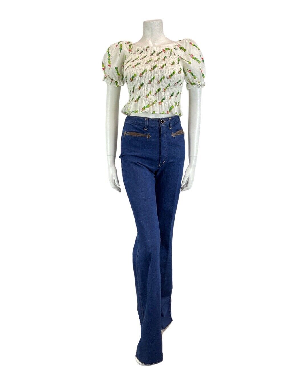 This is a super cute vintage blouse made from a light-weight, white polycotton fabric with no stretch and no additional lining. This blouse would best fit: 6/8 please check your measurements against the ones provided below, Bust: 29-34" Sleeve (pit to cuff): 3.5" Length: 15" PLEASE NOTE: This garment has been measured flat and doubled for bust (armpit to armpit), waist and hip measurements, we measure the length down the back of the dress, measurements may differ slightly due to dress styles and fabrics. We ignore any existing size labels as vintage brands differed so much. Items shown on our mannequin may be clipped to fit. This garment is true vintage so please be aware there may be some signs of wear as expected from a garment of this age. We do not list stains to area likes linings that are hidden or things that can barely be seen without close inspection. These can include pin holes, small marks, light piling. We hand pick our items to make sure they are in great condition and fully wearable and we reject anything of poor condition. The majority of our items are 40-70 years old. If you think we've missed something significant please get in touch, we are only human and we lose transaction fees on returns so we don't skip things on purpose. CHECK OUT OUR OTHER ITEMS, WE LIST EVERY WEEK! |