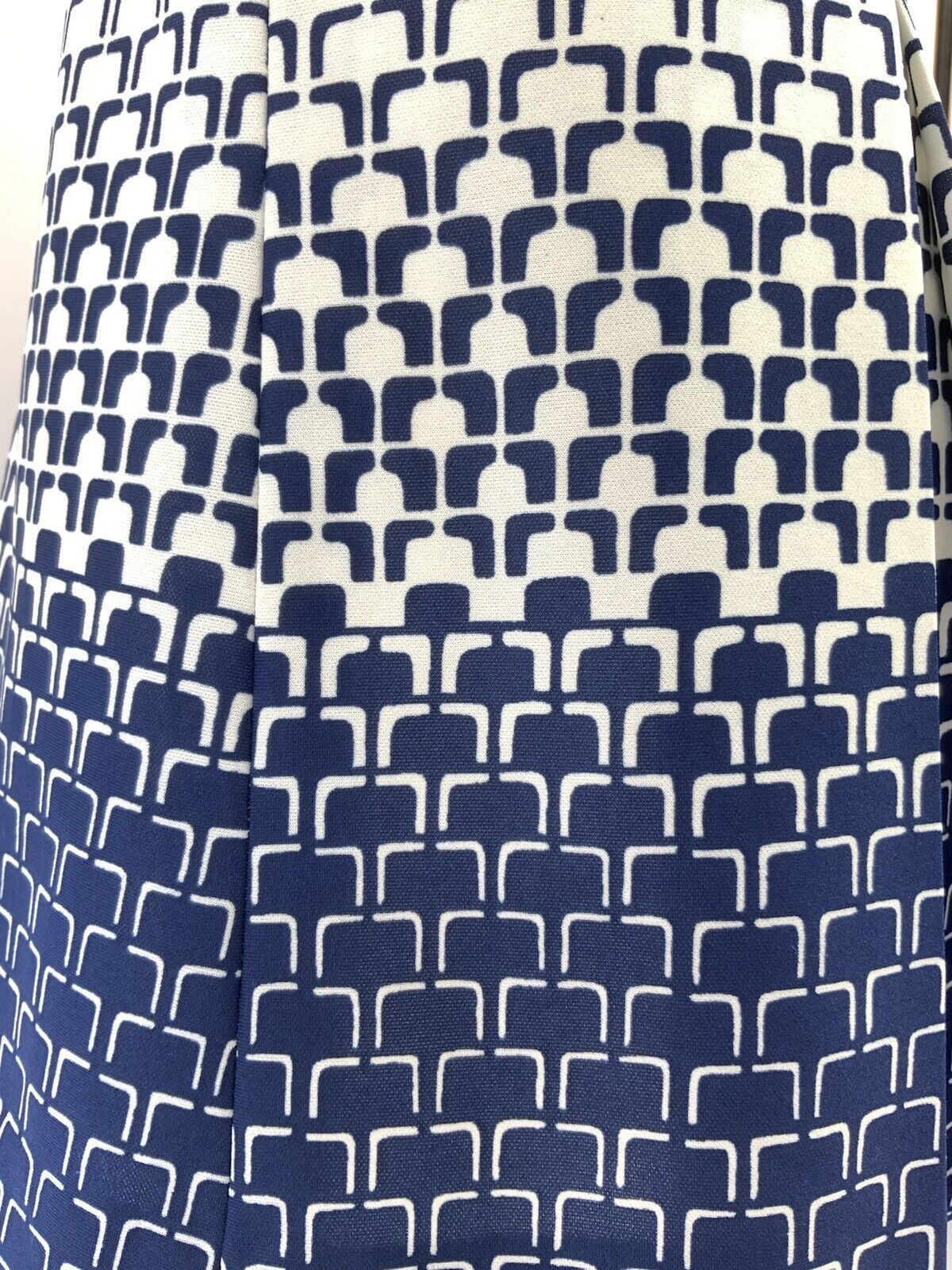 VINTAGE 60s 70s WHITE NAVY BLUE GEOMETRIC OP-ART FADE DAGGER SHIRT DRESS 12 14
