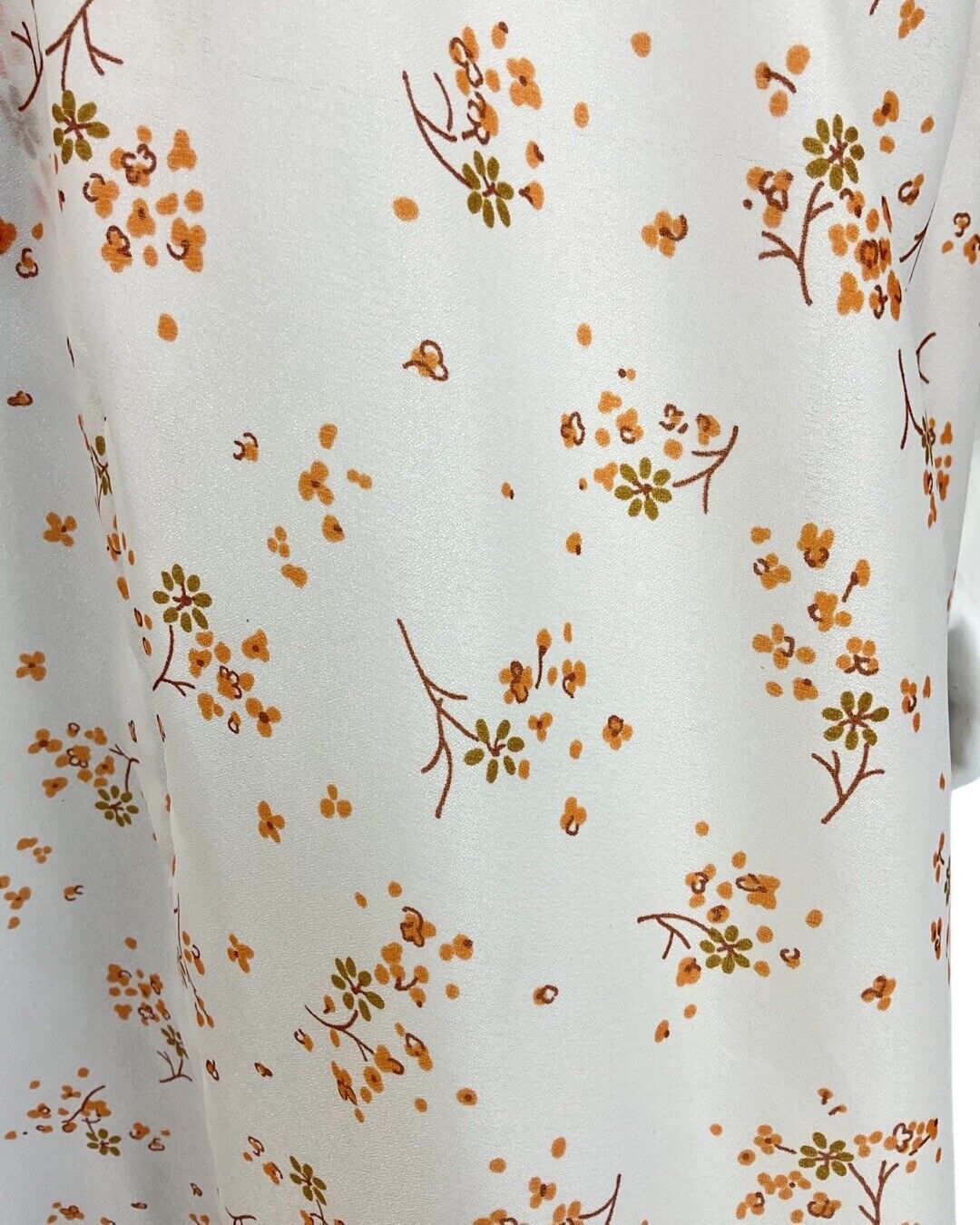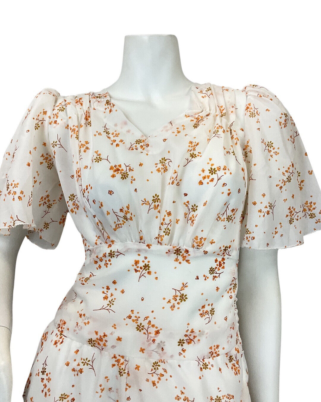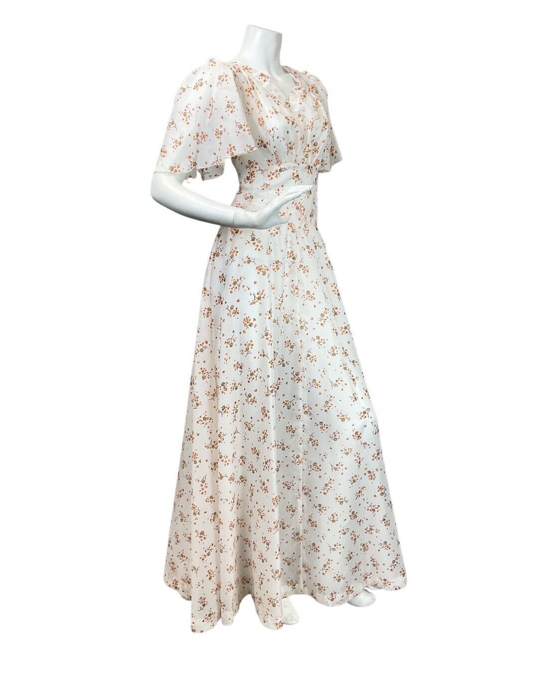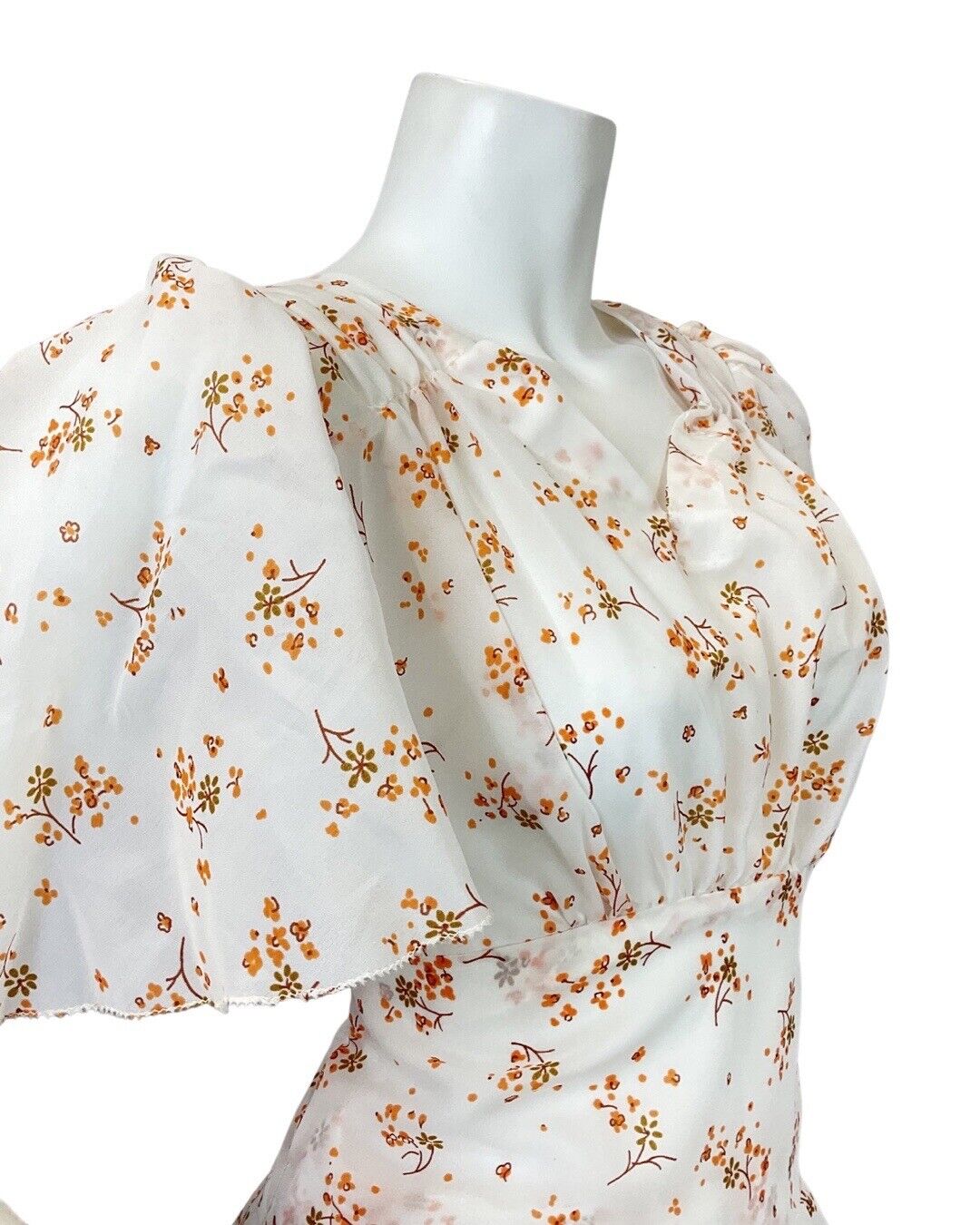 VINTAGE 60s 70s WHITE ORANGE BROWN FLORAL DITSY PRAIRIE BOHO MAXI DRESS 12 14