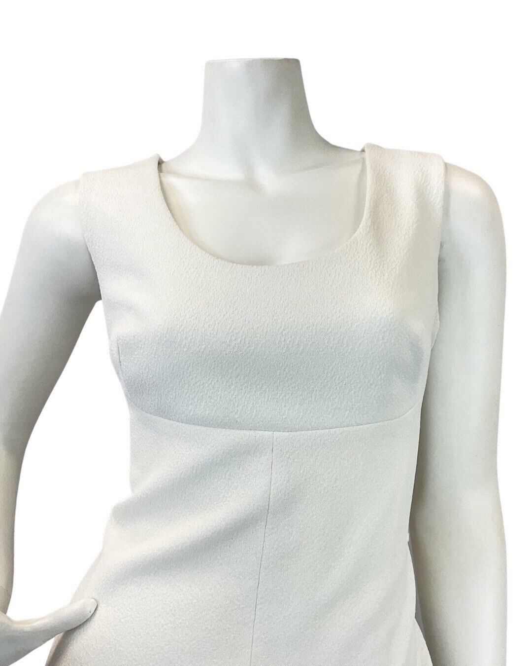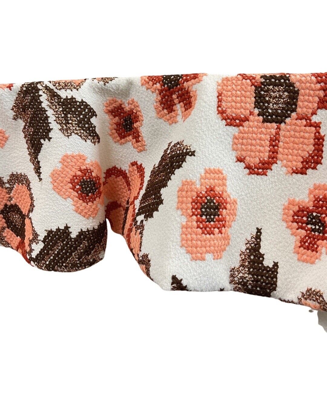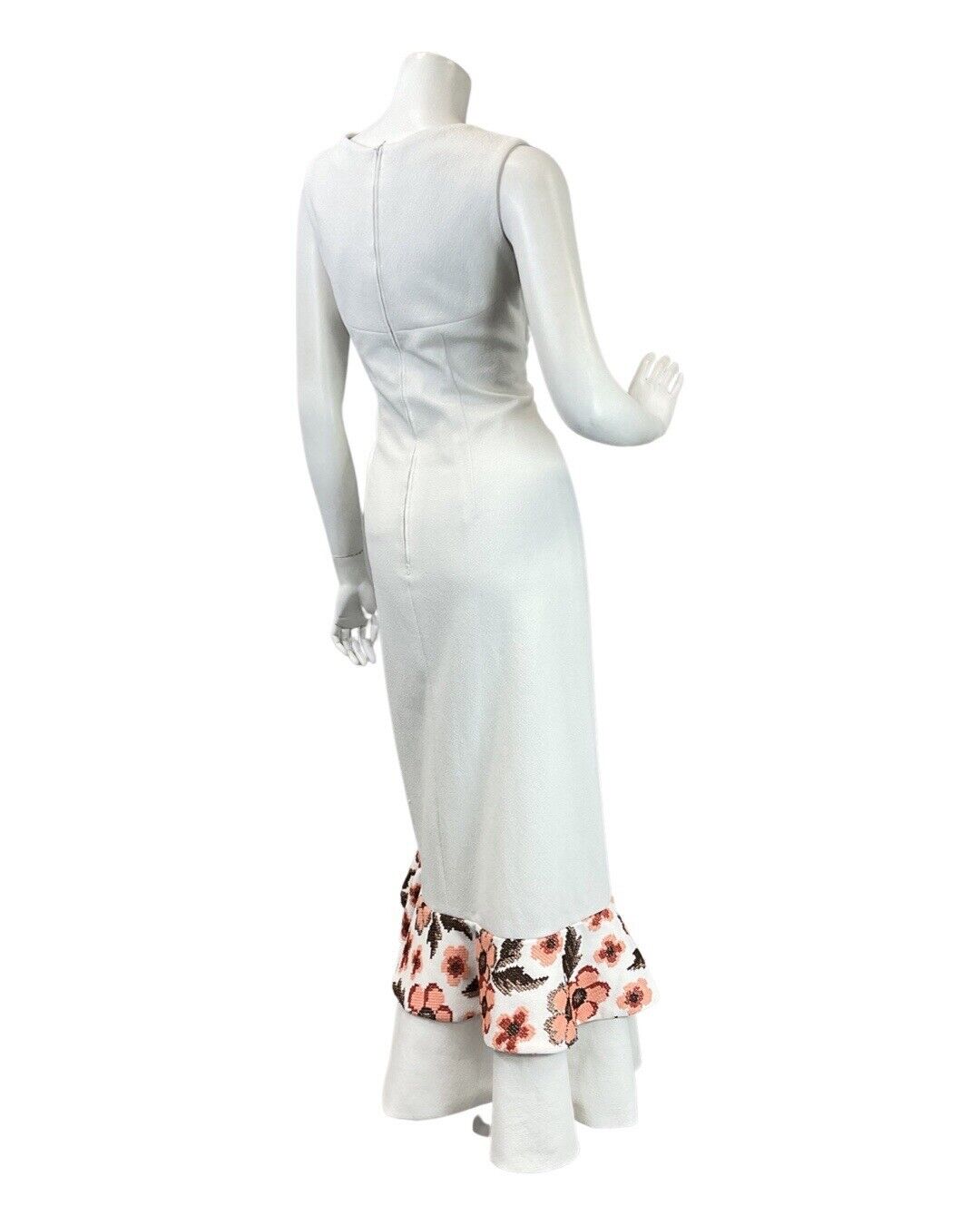 VINTAGE 60s 70s WHITE PEACH BROWN CROSS-STITCH FLORAL MOD EMPIRE MAXI DRESS 10
