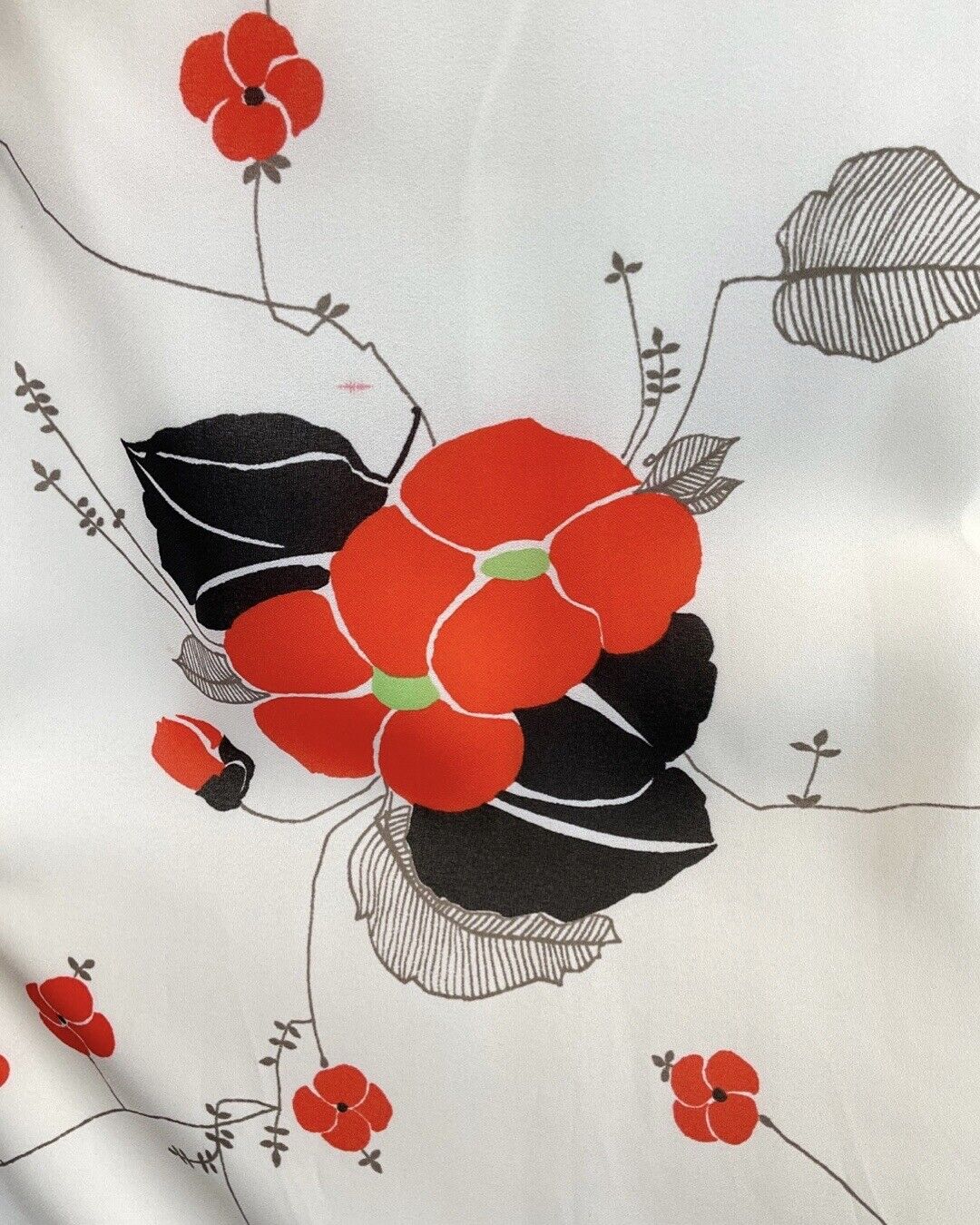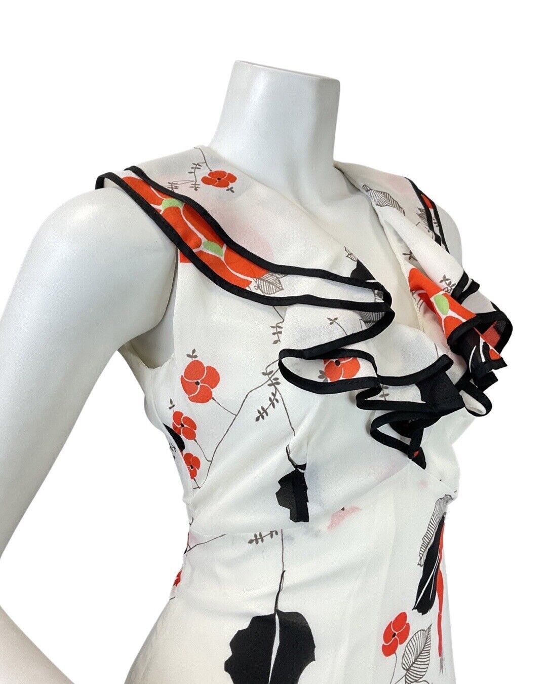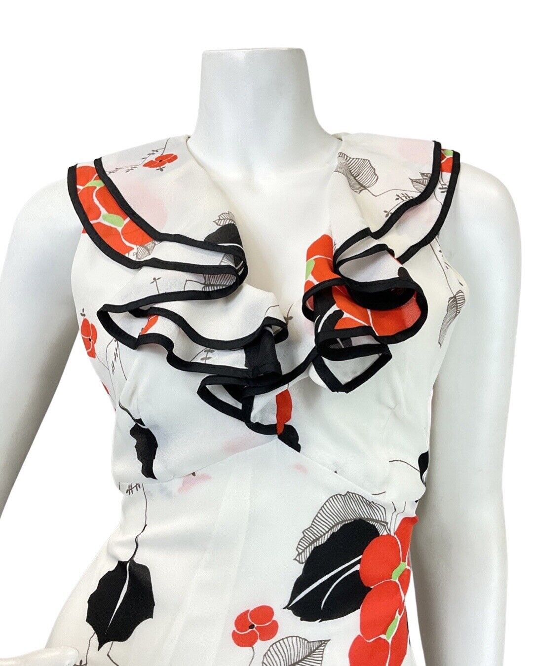 VINTAGE 60s 70s WHITE RED BLACK FLORAL RUFFLED MOD SLEEVELESS MAXI DRESS 8