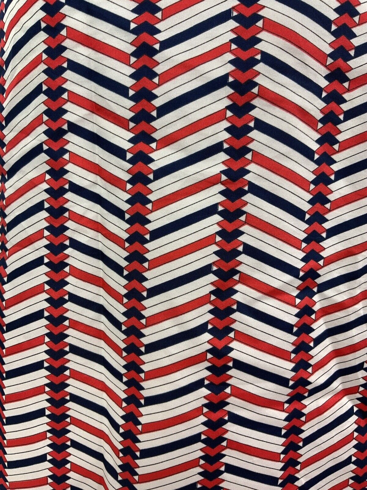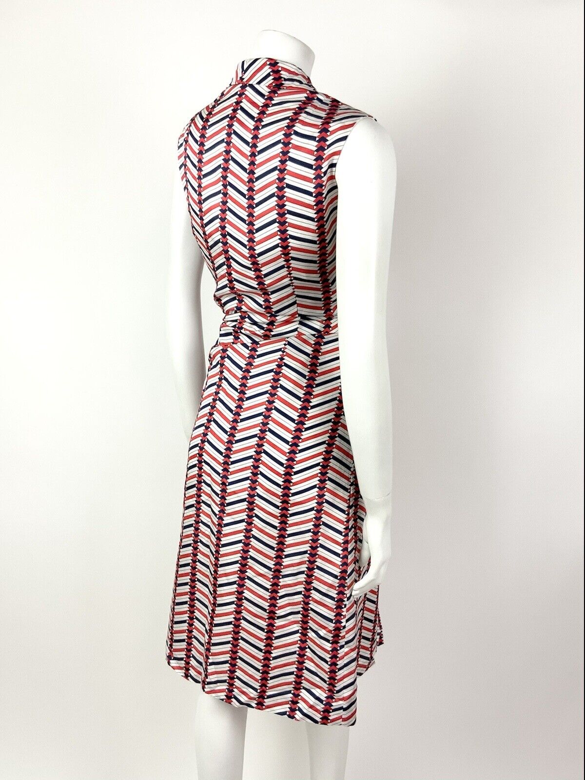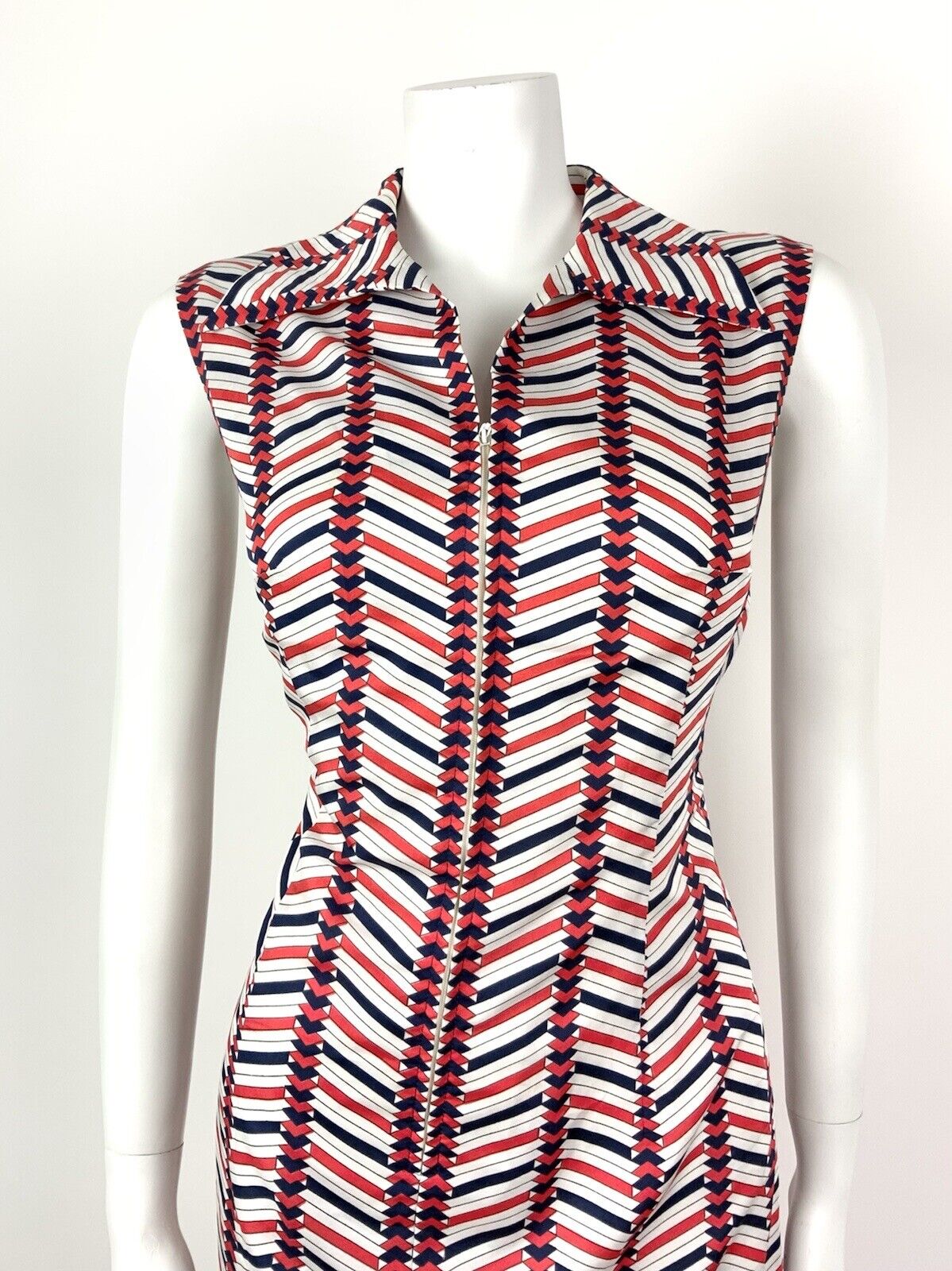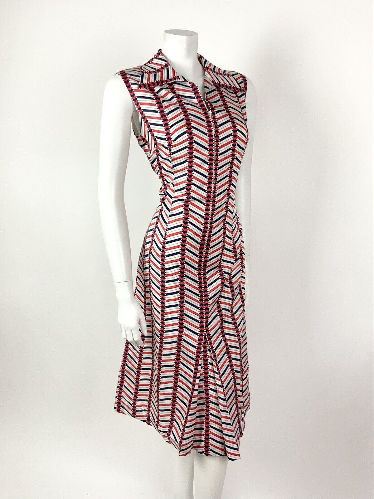 VINTAGE 60s 70s WHITE RED BLUE ZIG-ZAG GEOMETRIC DAGGER SHIRT MOD DRESS 12 14