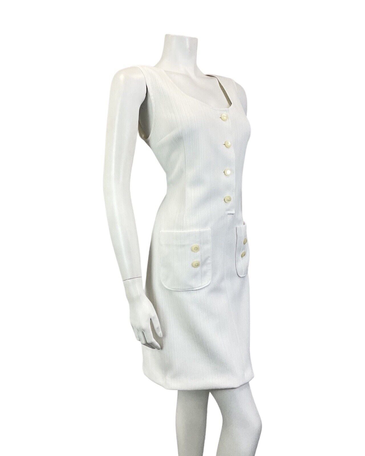 VINTAGE 60s 70s WHITE RIBBED MOD PINAFORE SLEEVELESS DRESS 12