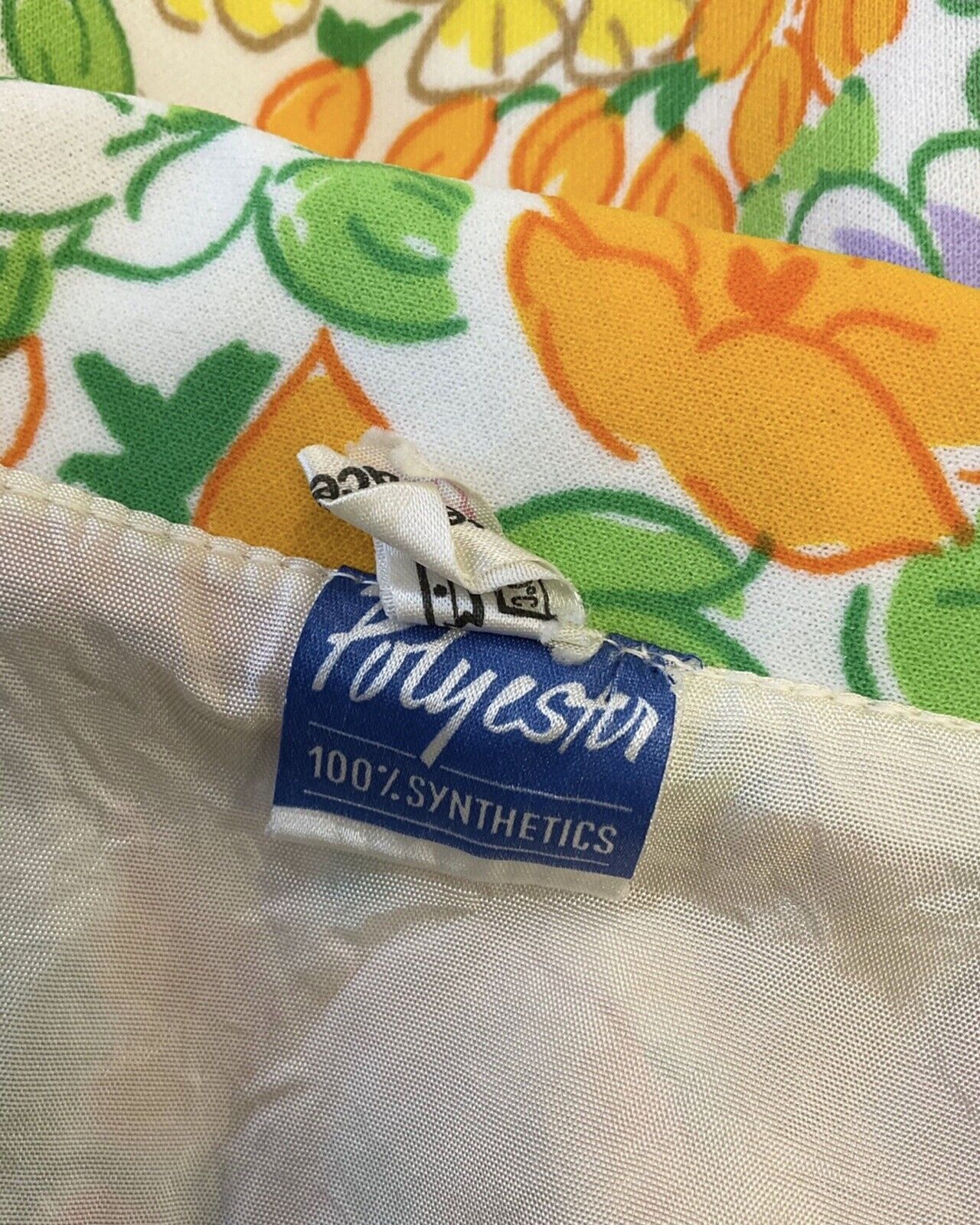 VINTAGE 60s 70s WHITE YELLOW ORANGE FLORAL SLEEVELESS DAGGER SHIRT DRESS 16 18