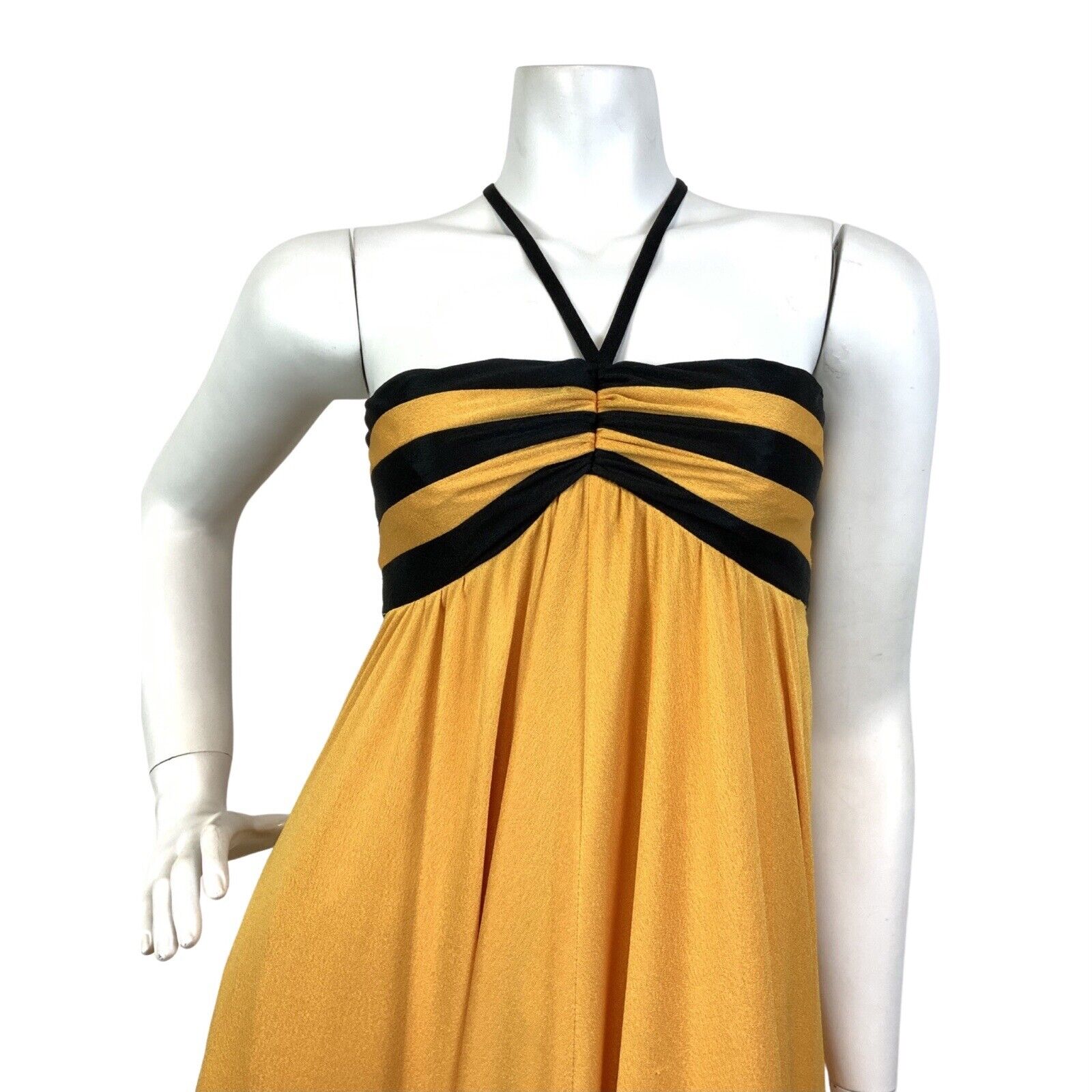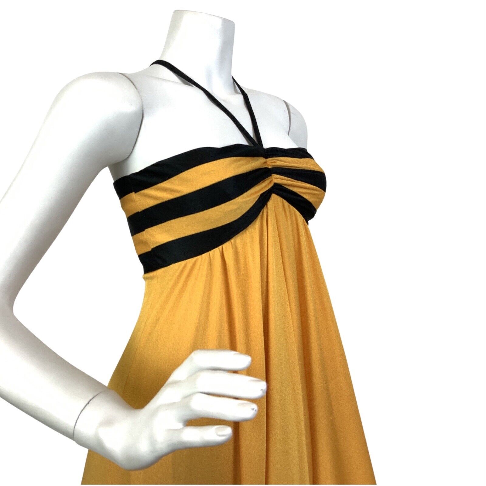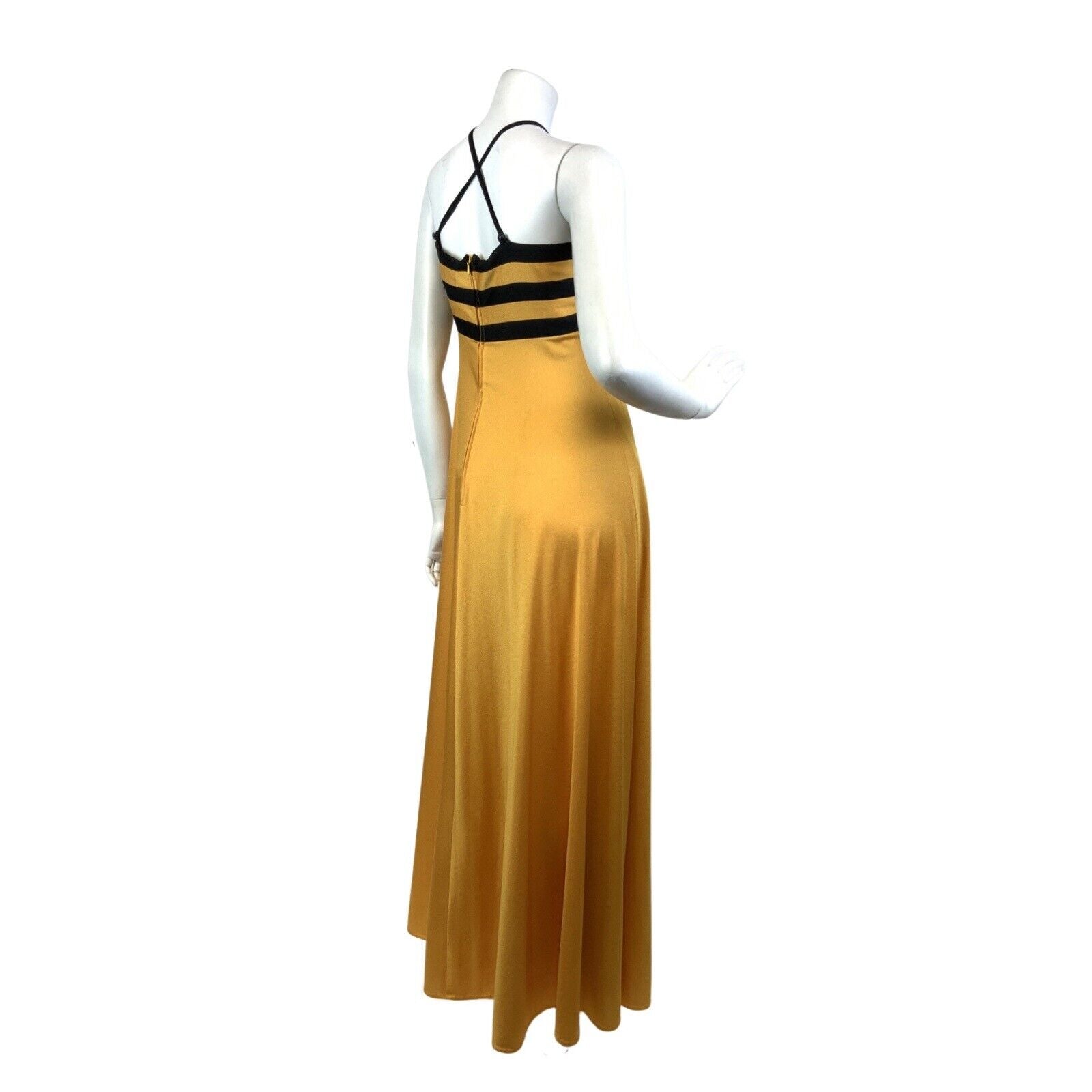 VINTAGE 60s 70s YELLOW BLACK STRIPED EMPIRE LINE MOD STRAPPY MAXI DRESS 6