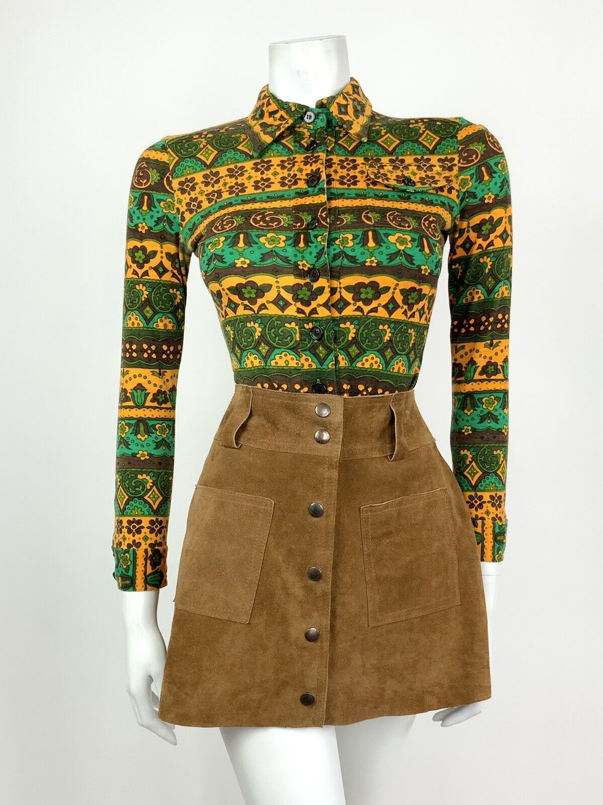 This is an amazing vintage shirt made from a woven, cotton-soft, polyester blend fabric with a good amount of stretch to it. This top would best fit: 8 BUT please check your measurements against the ones provided below, Bust: 33" Waist: 26" Length from shoulder to hem : 23.5" PLEASE NOTE: This garment has been measured flat and doubled for bust (armpit to armpit), waist and hip measurements, we measure the length down the back of the dress, measurements may differ slightly due to dress styles and fabrics. We ignore any existing size labels as vintage brands differed so much. Items shown on our mannequin may be clipped to fit. This garment is true vintage so please be aware there may be some signs of wear as expected from a garment of this age. We do not list stains to area likes linings that are hidden or things that can bearly be seen without close inspection. These can include pin holes, small marks, light piling. We hand pick our items to make sure they are in great condition and fully wearable and we reject anything of poor condition. The majority of our items are 40-70 years old. If you think we've missed something significant please get in touch, we are only human and we lose transaction fees on returns so we don't skip things on purpose. CHECK OUT OUR OTHER ITEMS, WE LIST EVERY WEEK! |