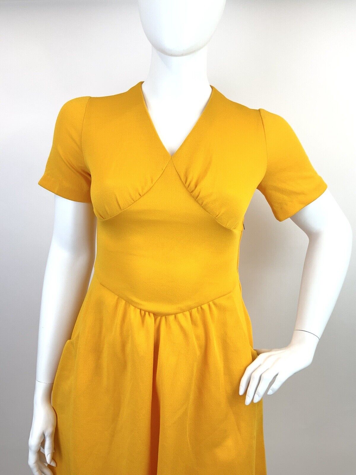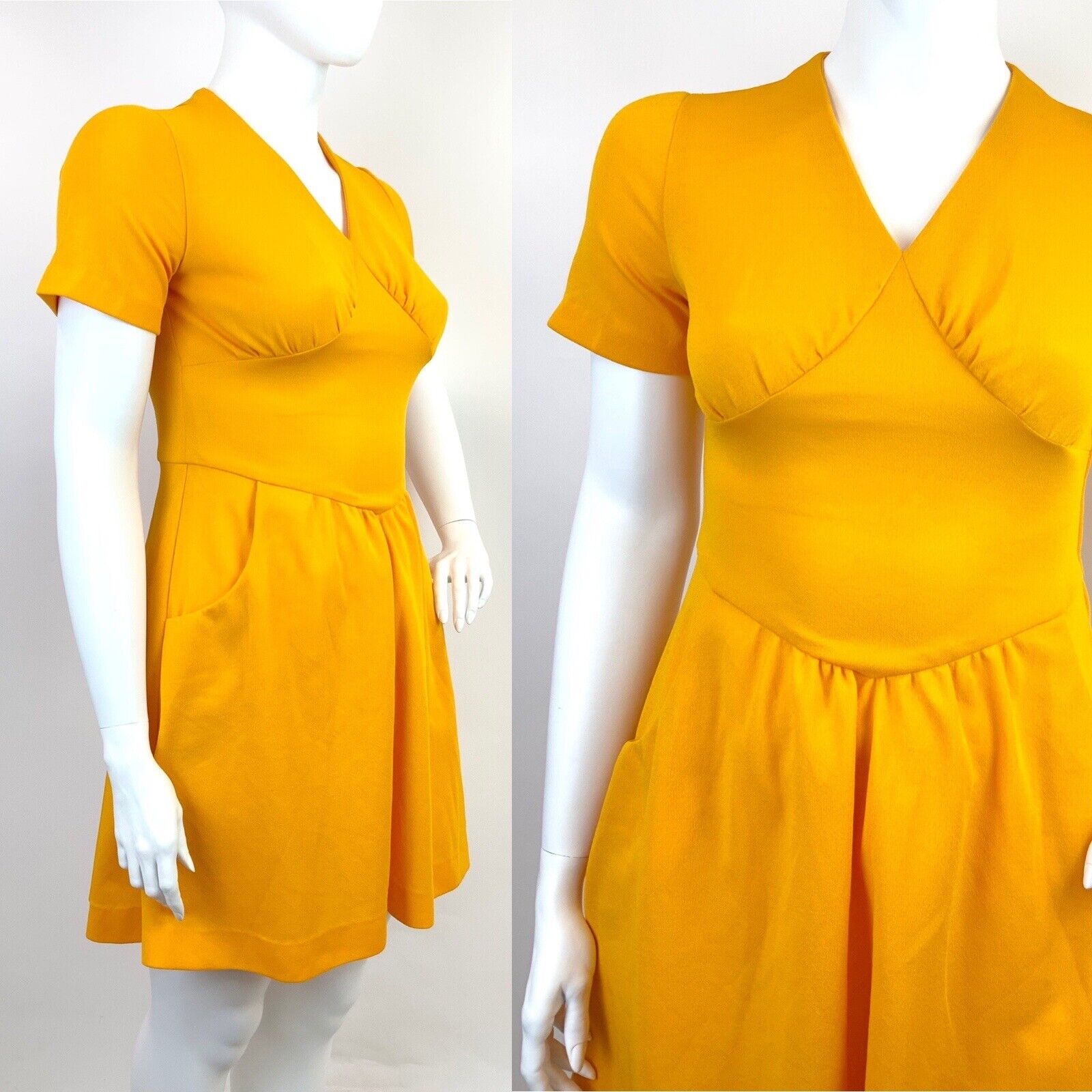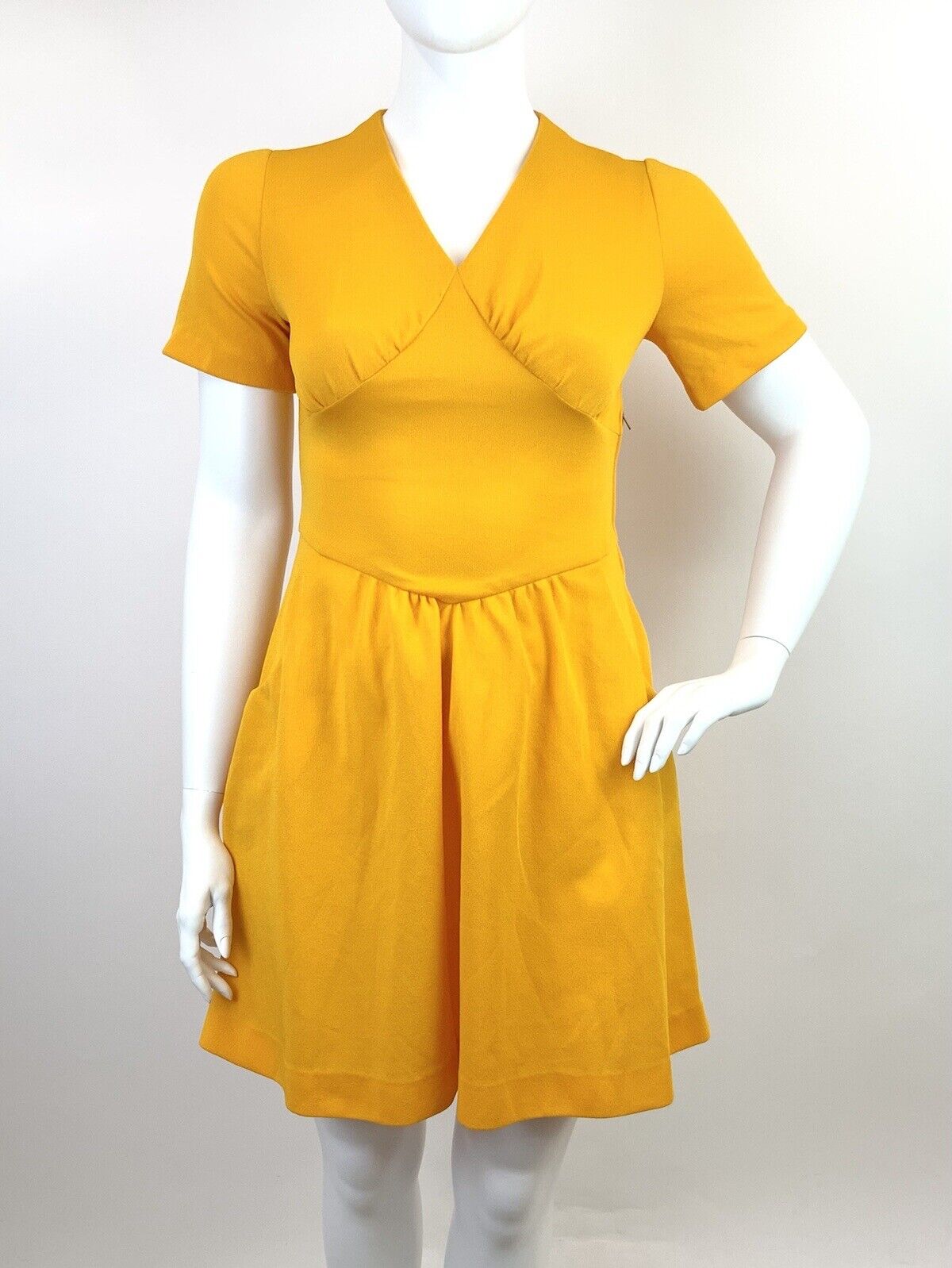 VINTAGE 60s 70s YELLOW ORANGE V-NECK SHORT MOD SWING DRESS 16