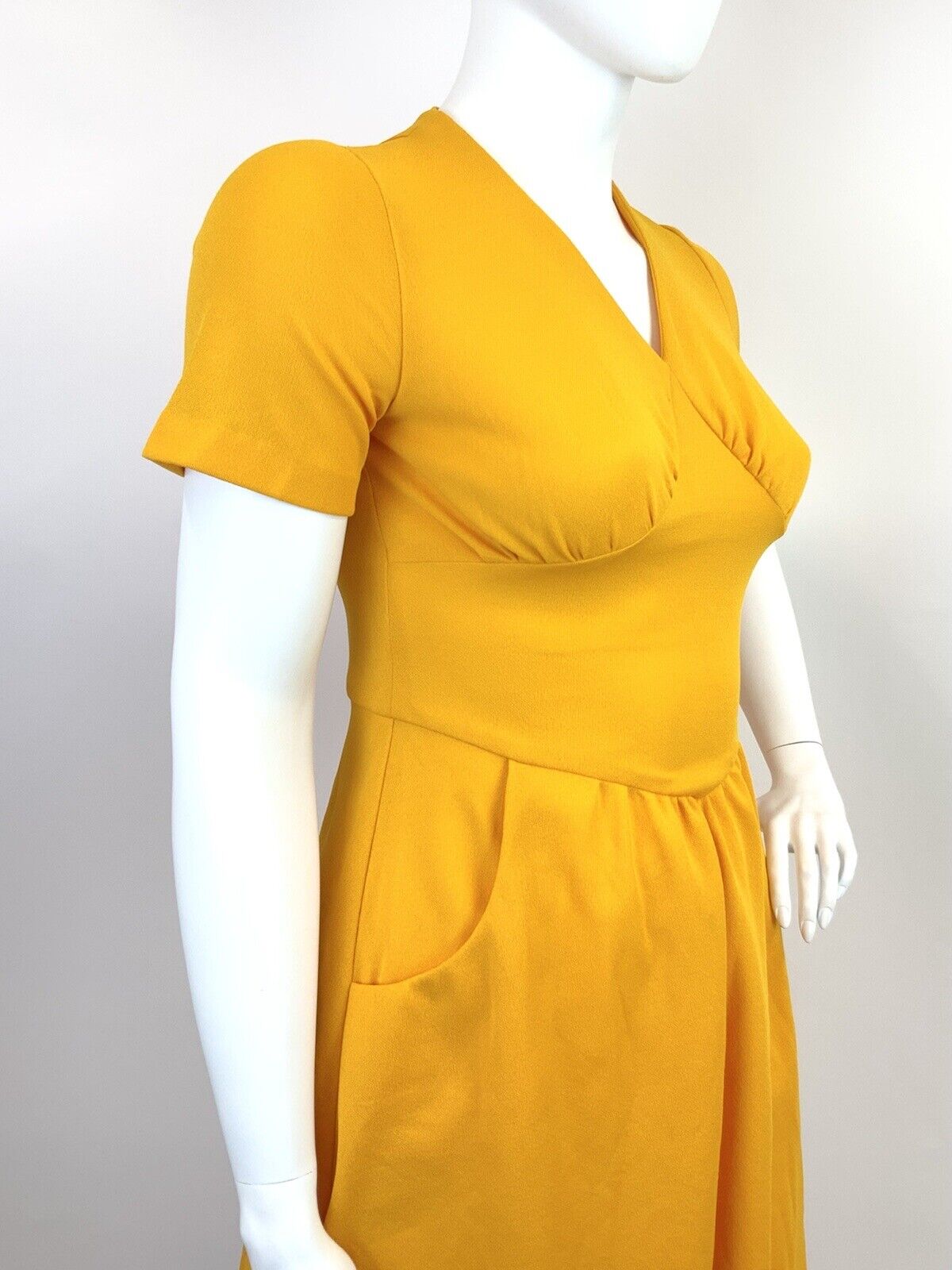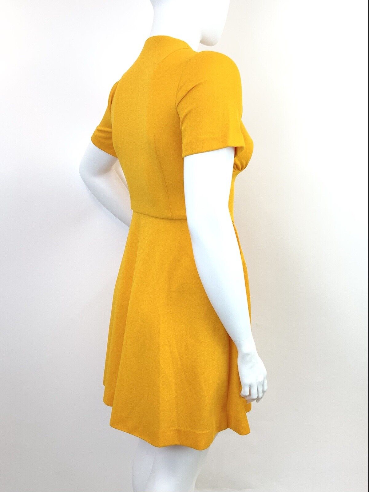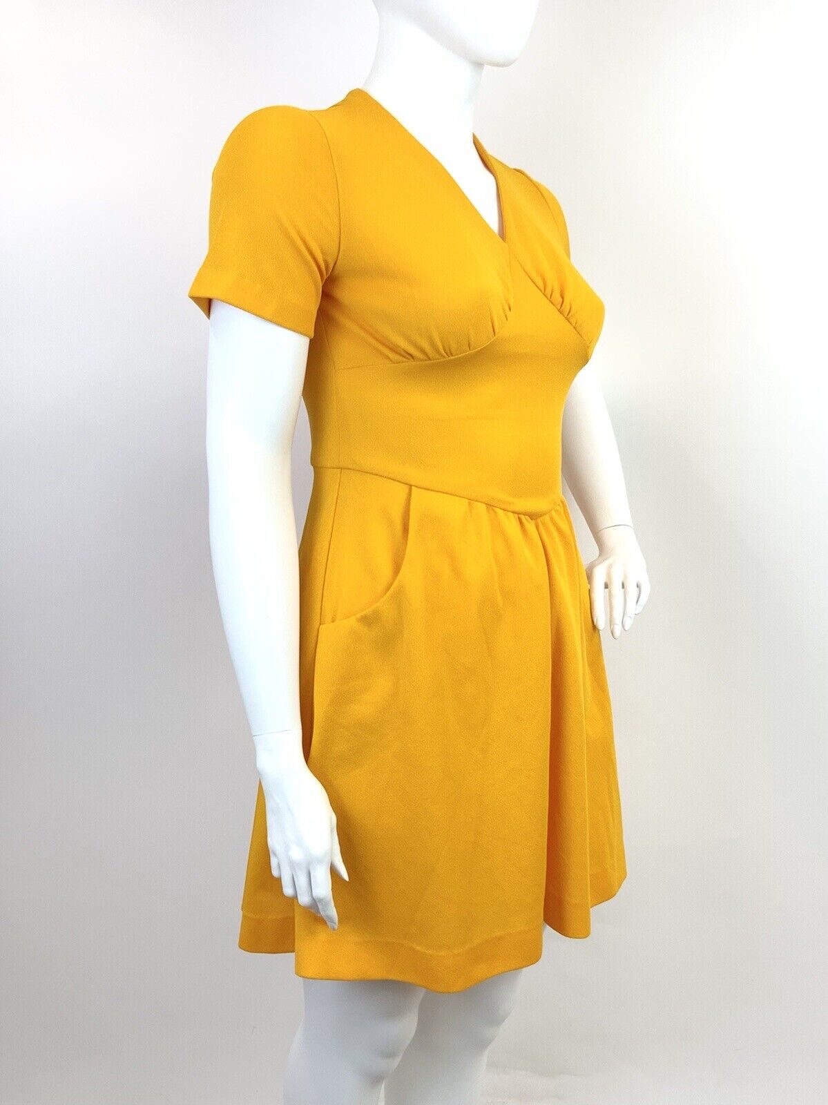 VINTAGE 60s 70s YELLOW ORANGE V-NECK SHORT MOD SWING DRESS 16