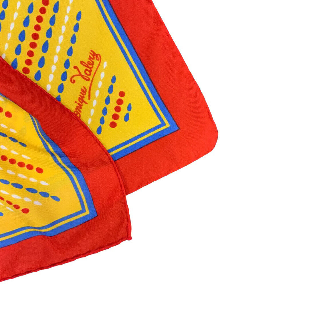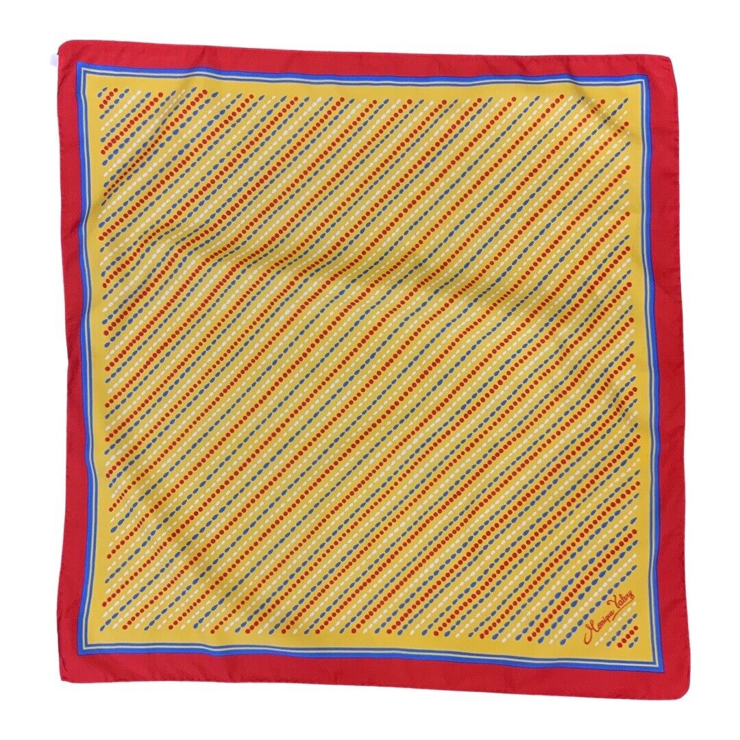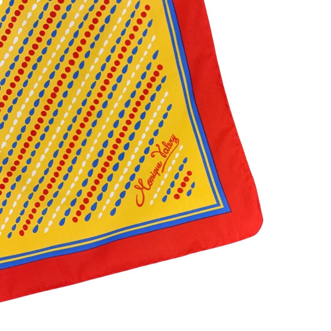 Details of this lovely scarf include; Yellow, blue, red, and white Dotted, geometric pattern.