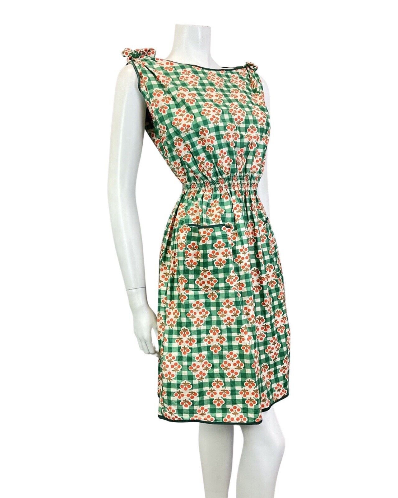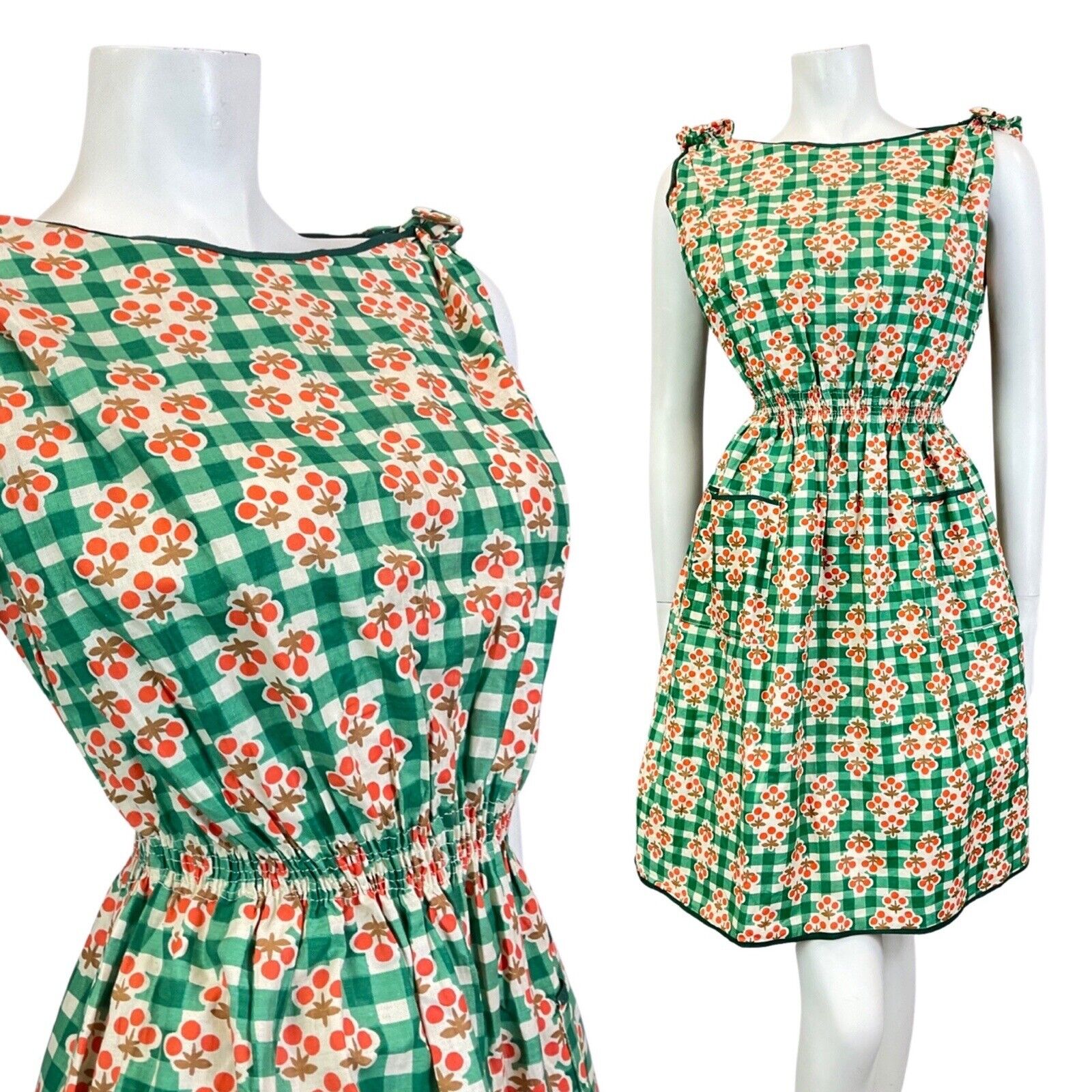 VINTAGE 60s 90s GREEN WHITE ORANGE GINGHAM CHECKED BERRY MOD SUMMER DRESS 10