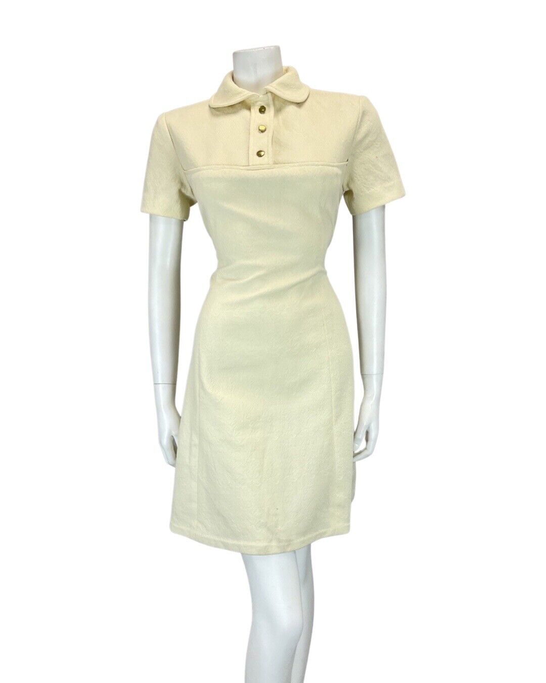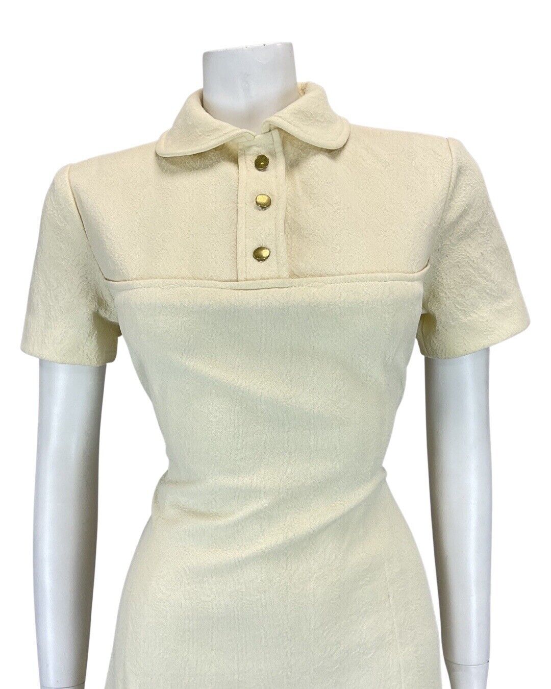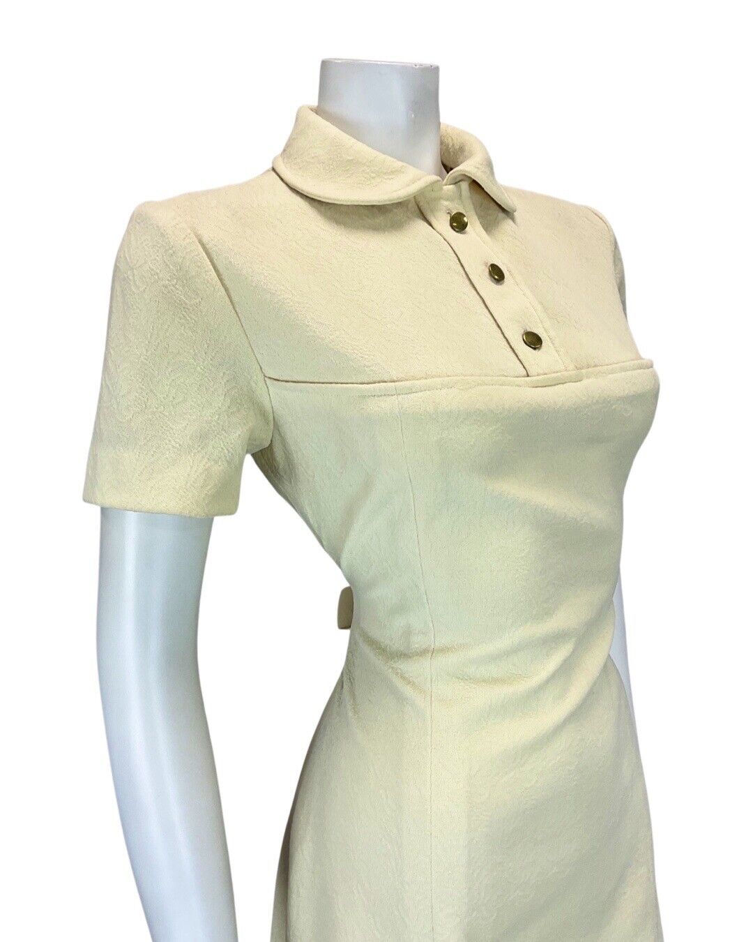 VINTAGE 60s CREAM YELLOW FLORAL PETER PAN COLLAR MOD SHORT DRESS 12