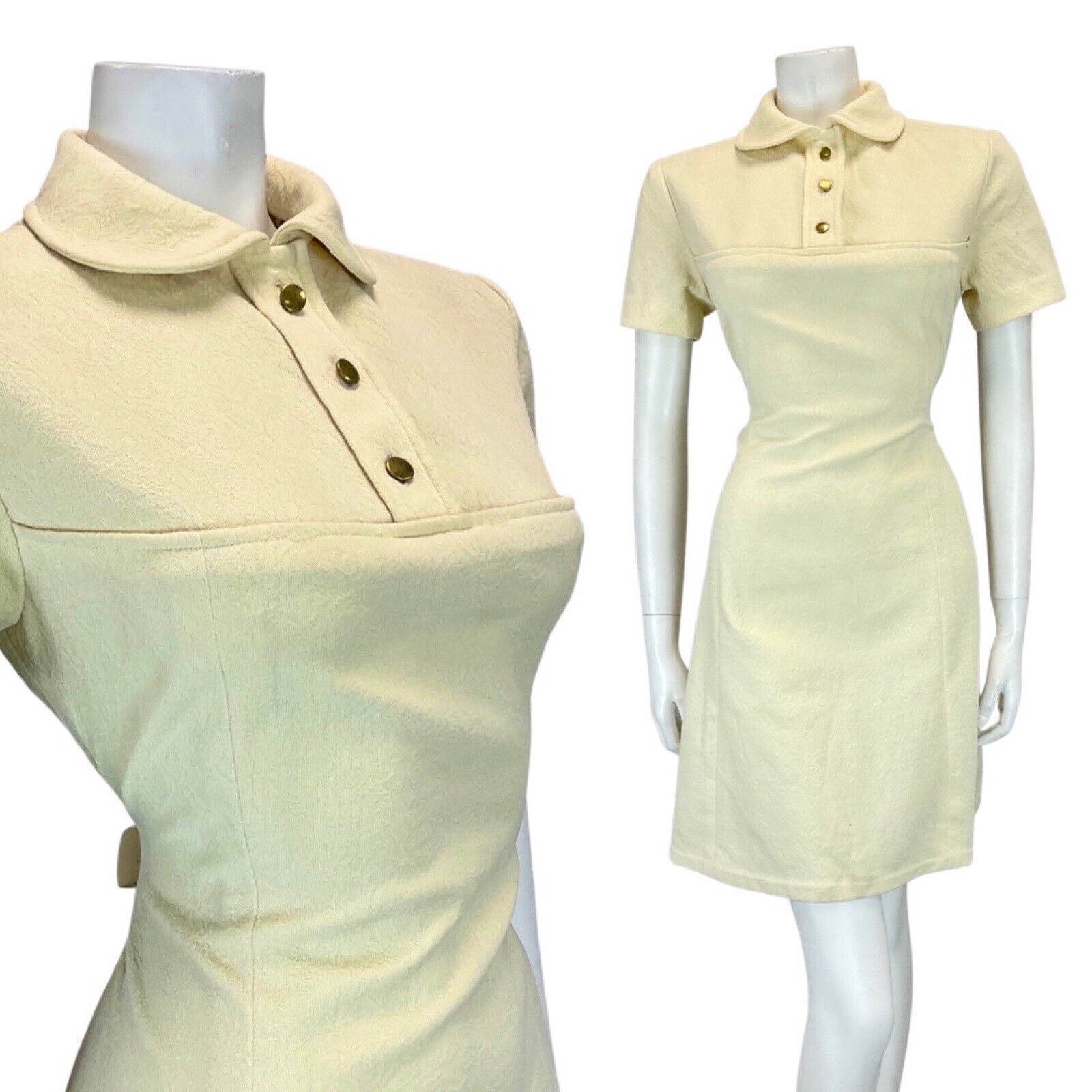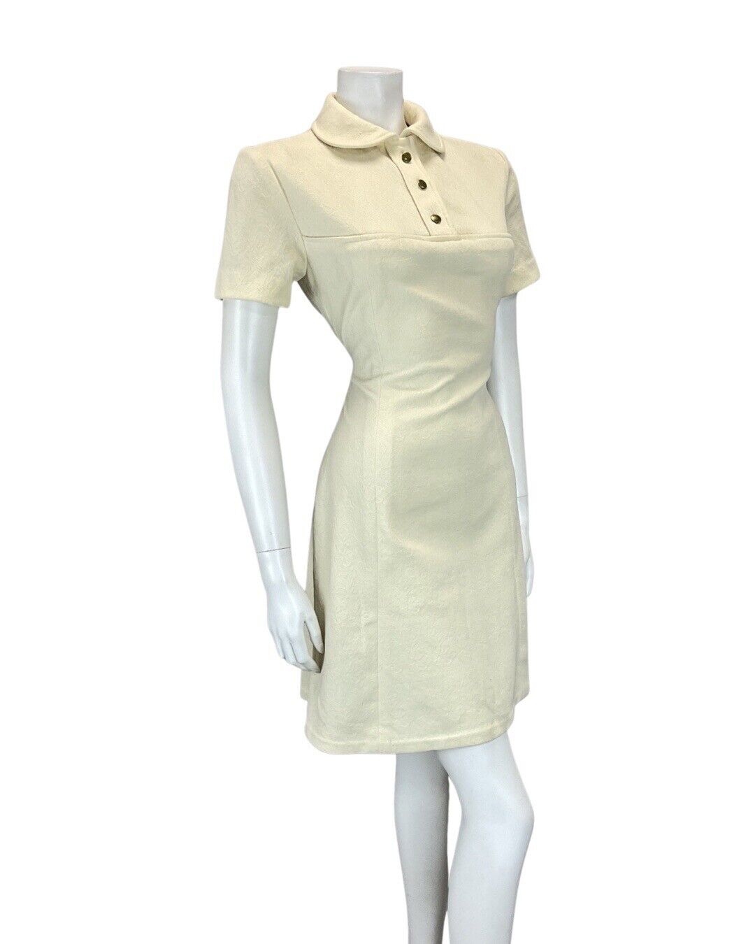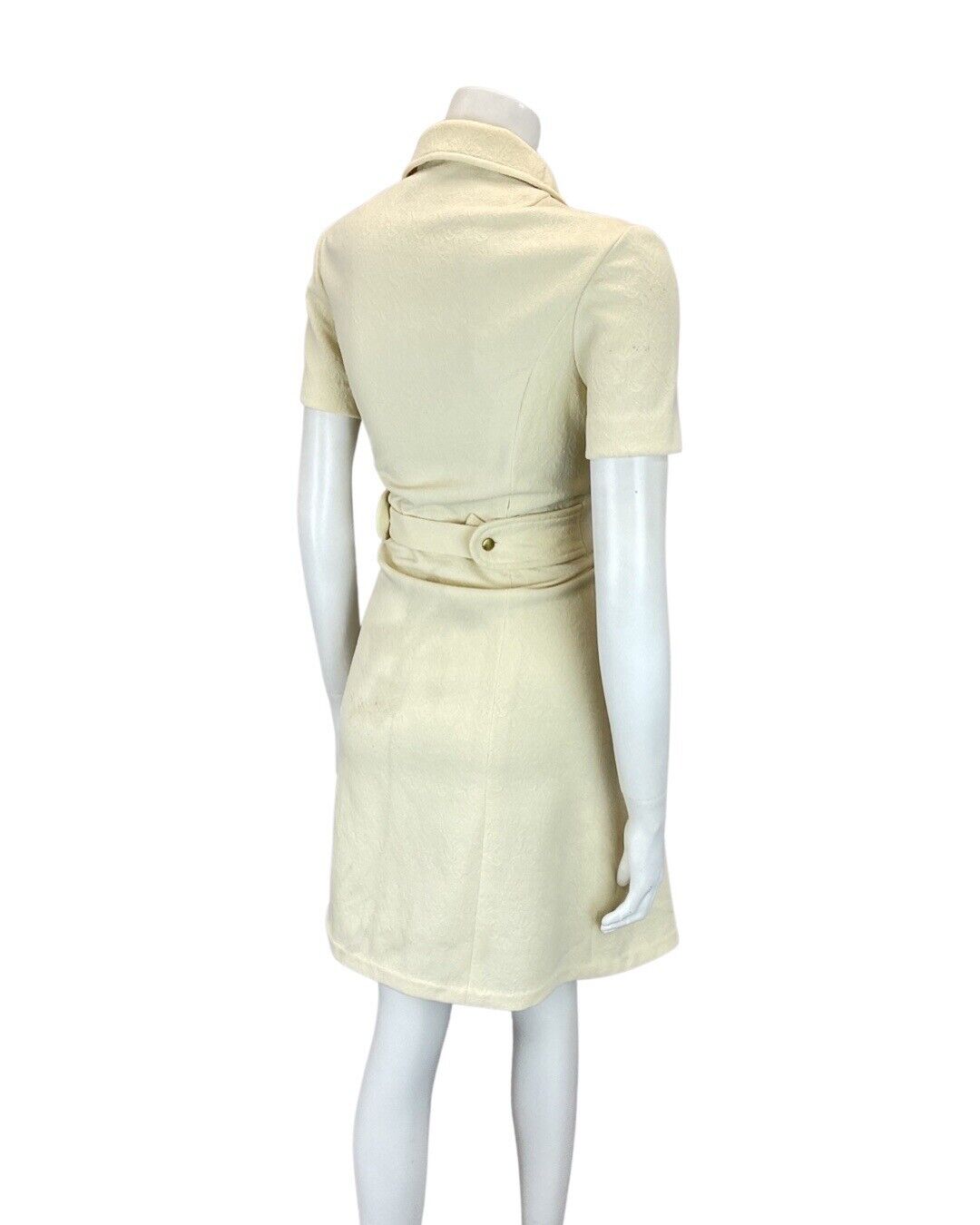 VINTAGE 60s CREAM YELLOW FLORAL PETER PAN COLLAR MOD SHORT DRESS 12