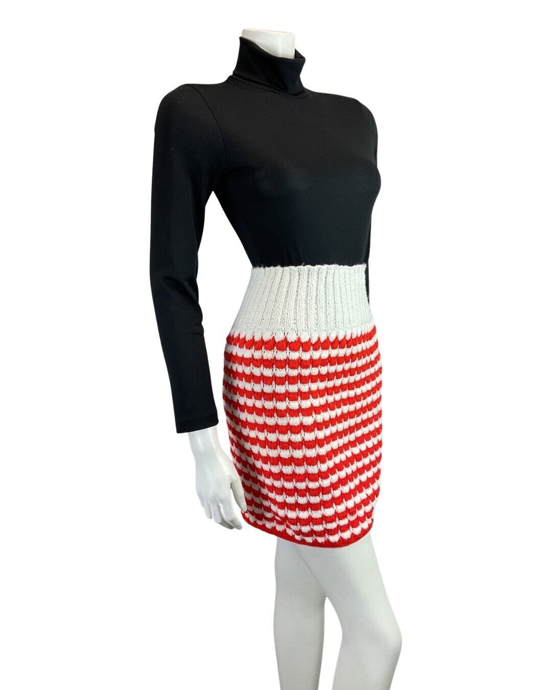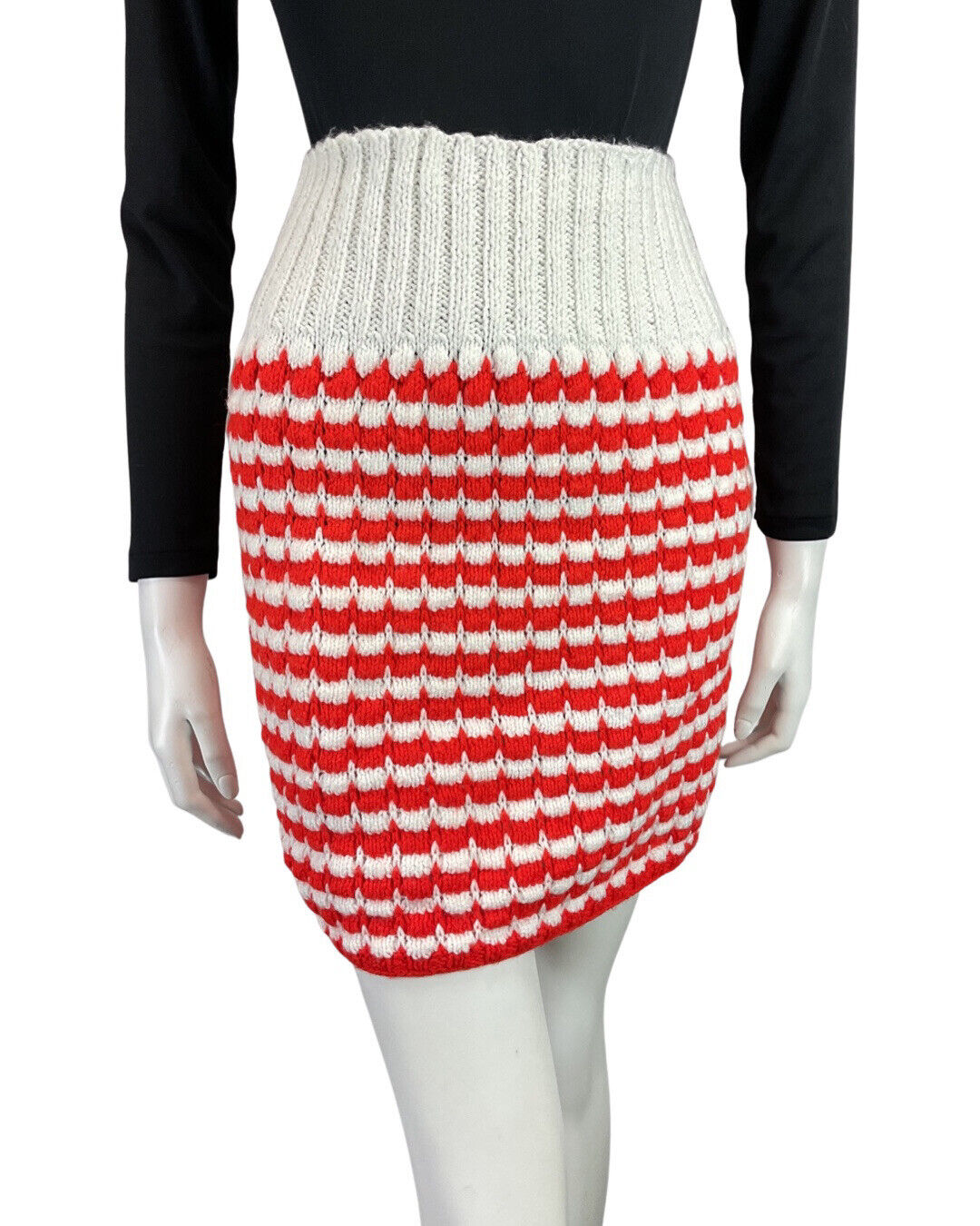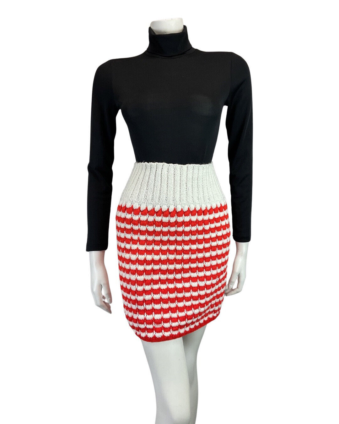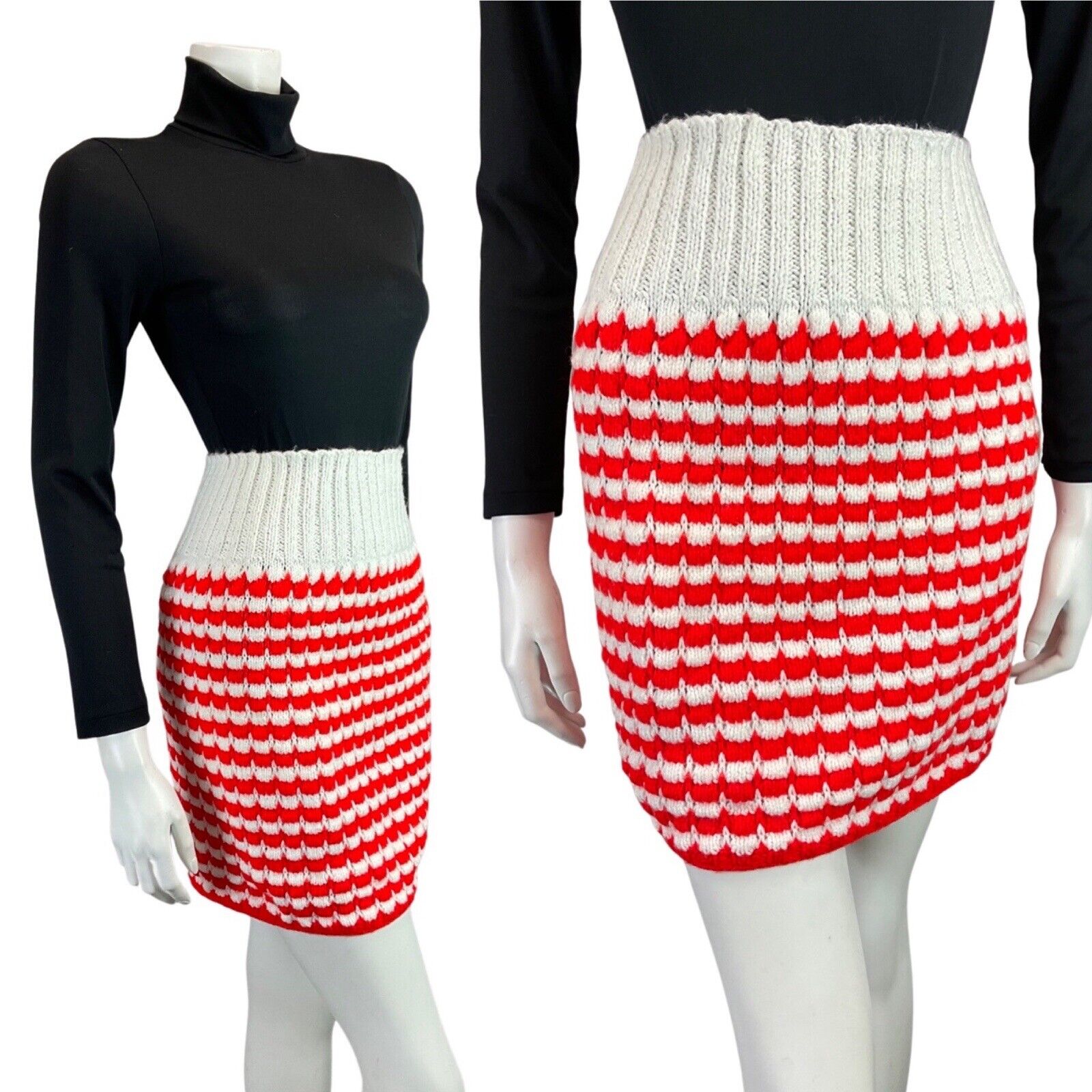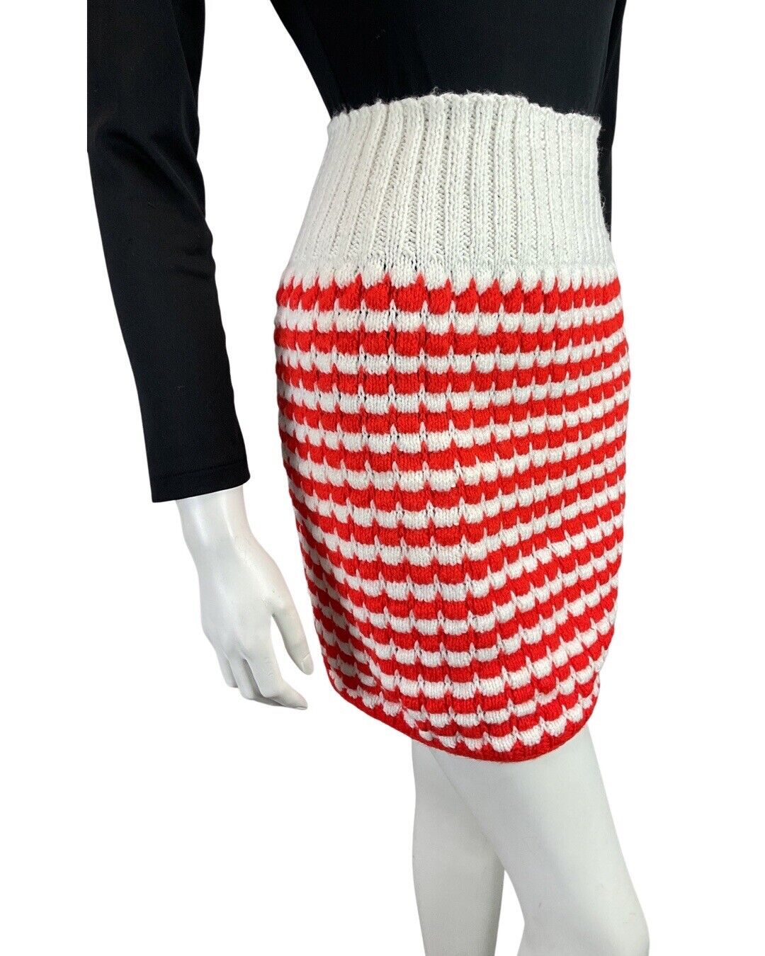 VINTAGE 60s RED WHITE STRIPED KNITTED MOD KITSCH BODYCON SKIRT 8 10