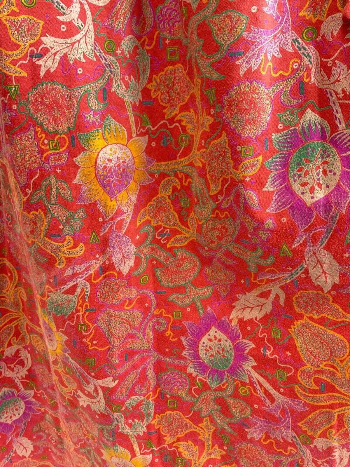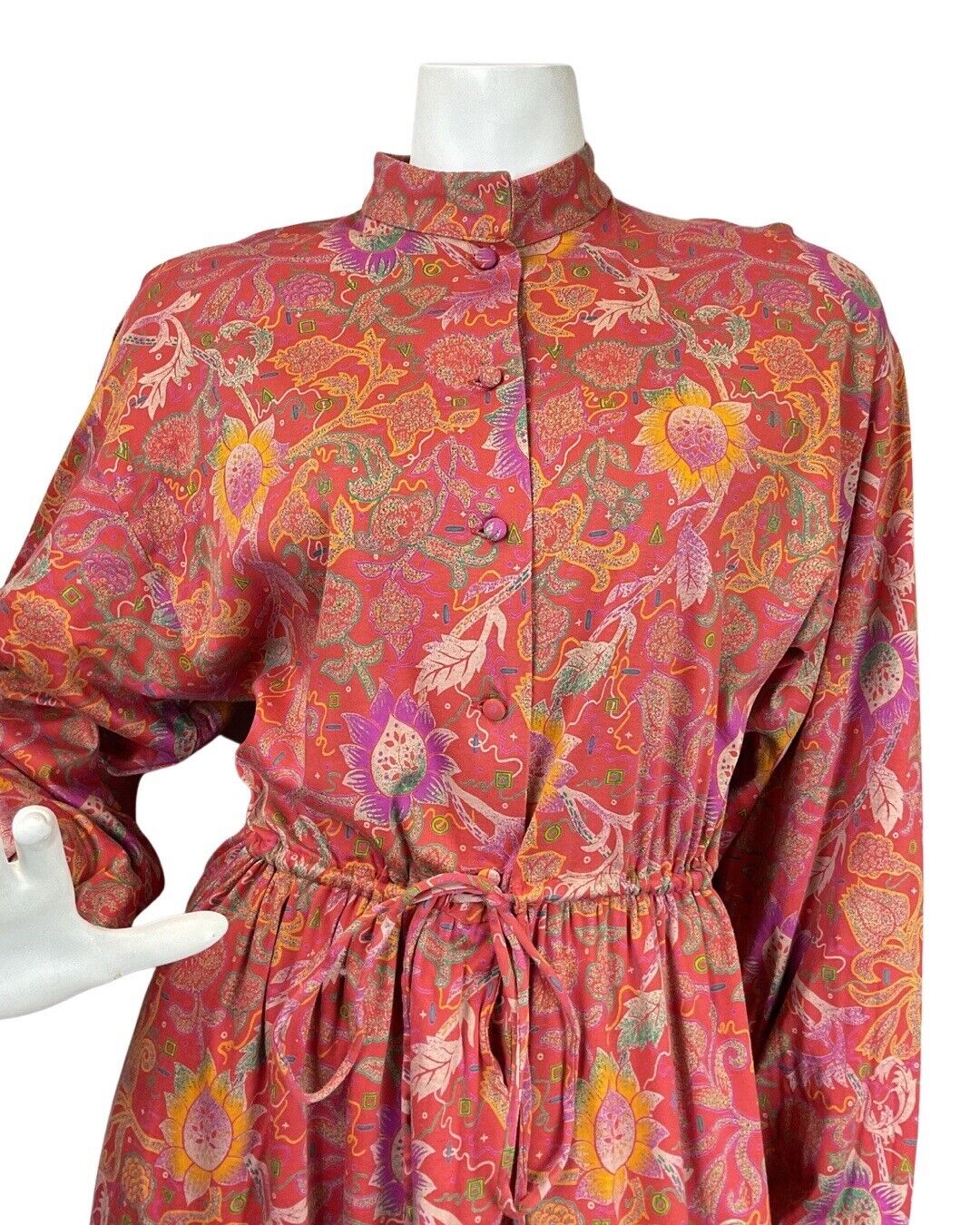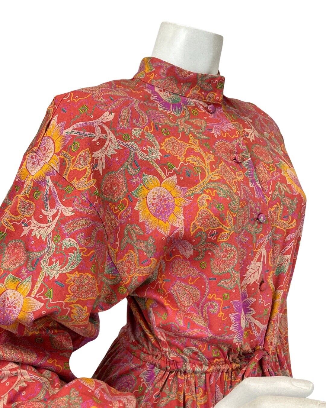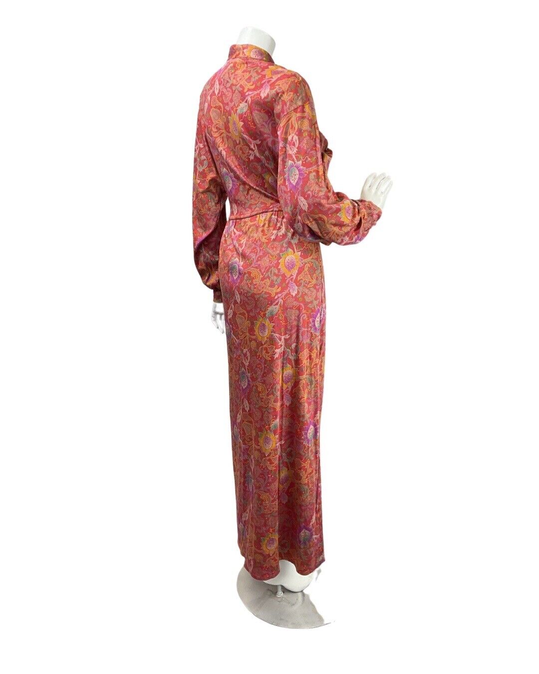 VINTAGE 70s RED PURPLE GREEN FLORAL PAISLEY BOHO LONGSLEEVE MAXI DRESS 10 12