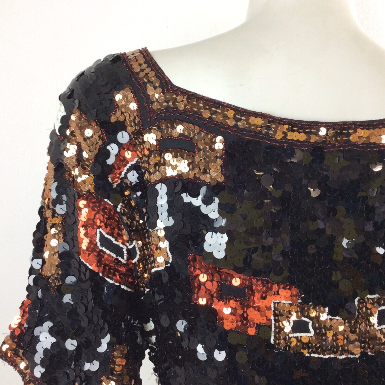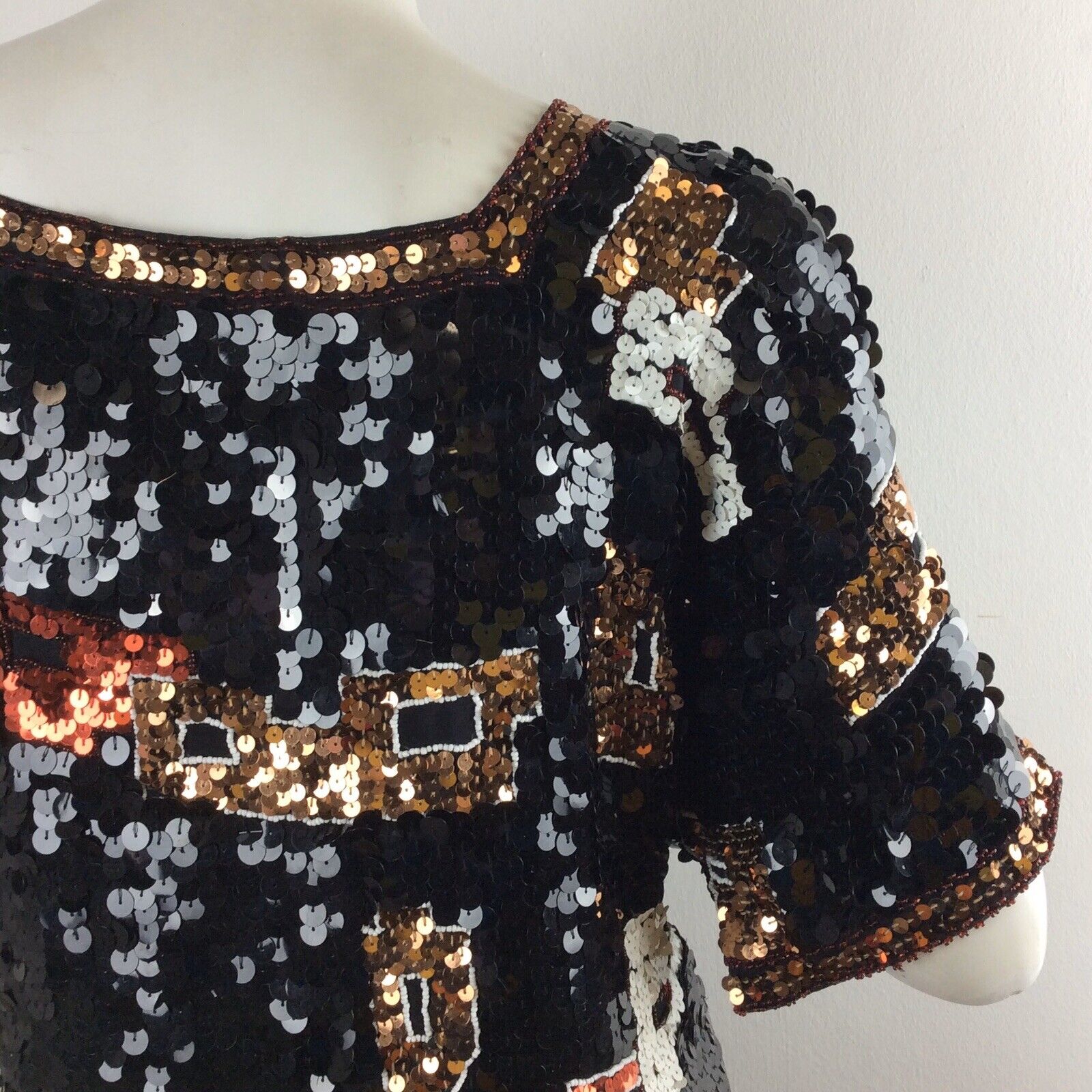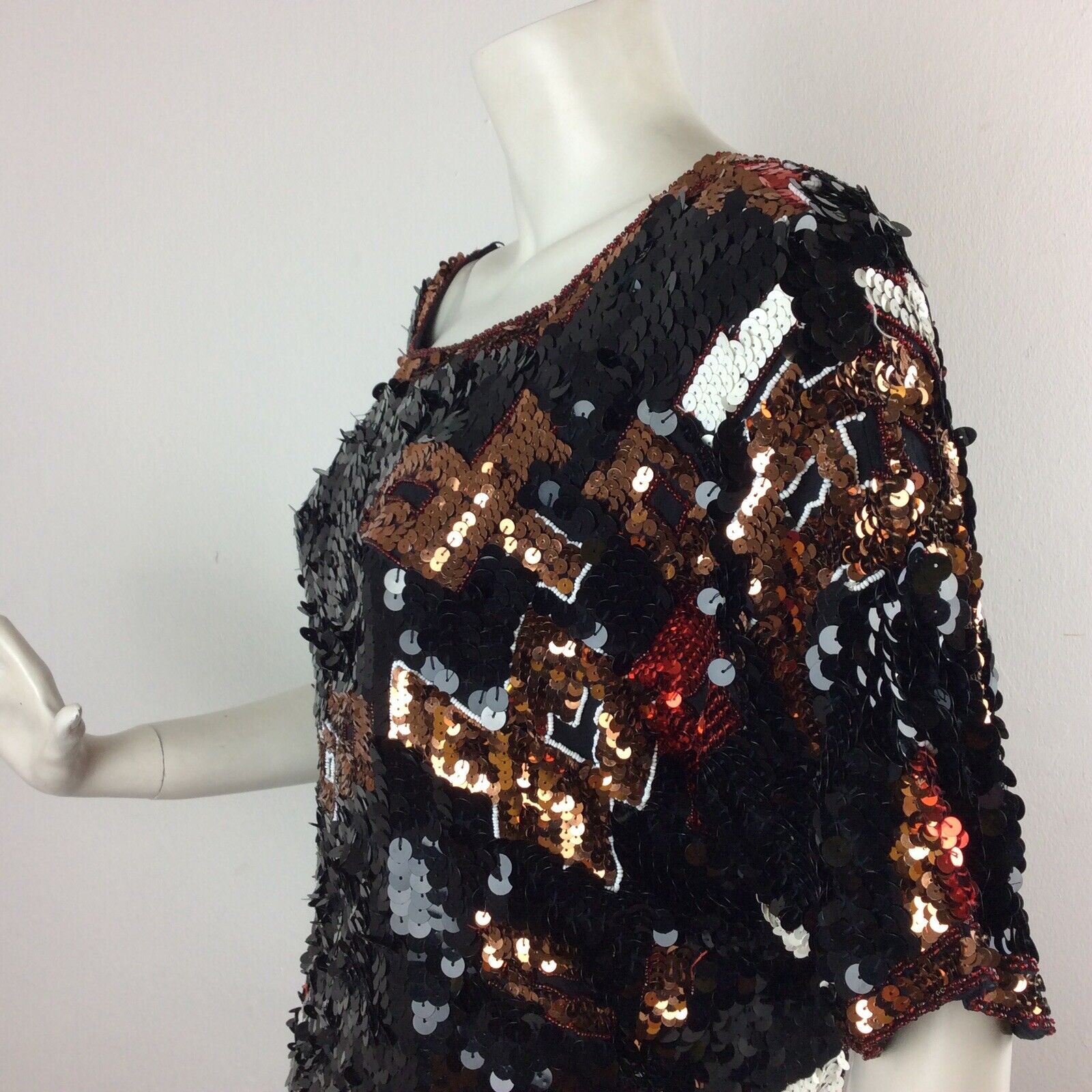 Vintage 80s sequin top, disco/ evening, black, bronze, red, white sequins 10 12