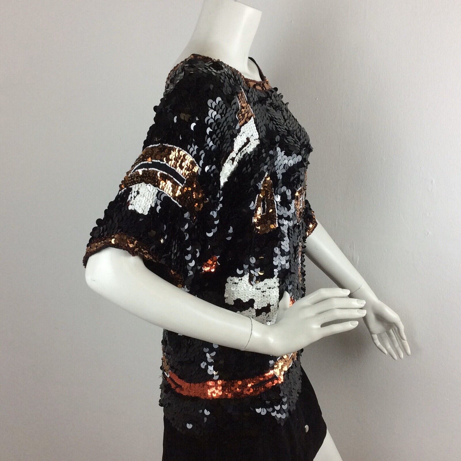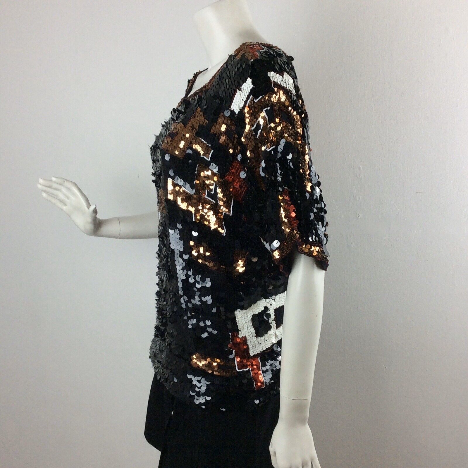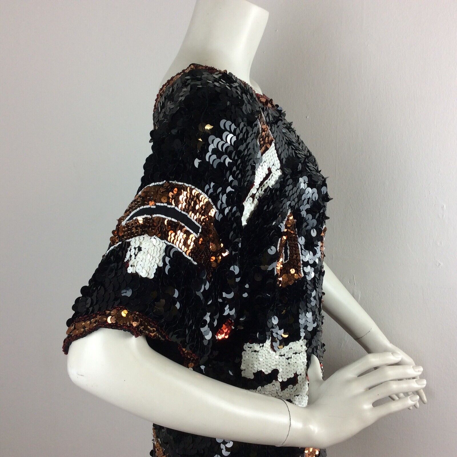 Vintage 80s sequin top, disco/ evening, black, bronze, red, white sequins 10 12