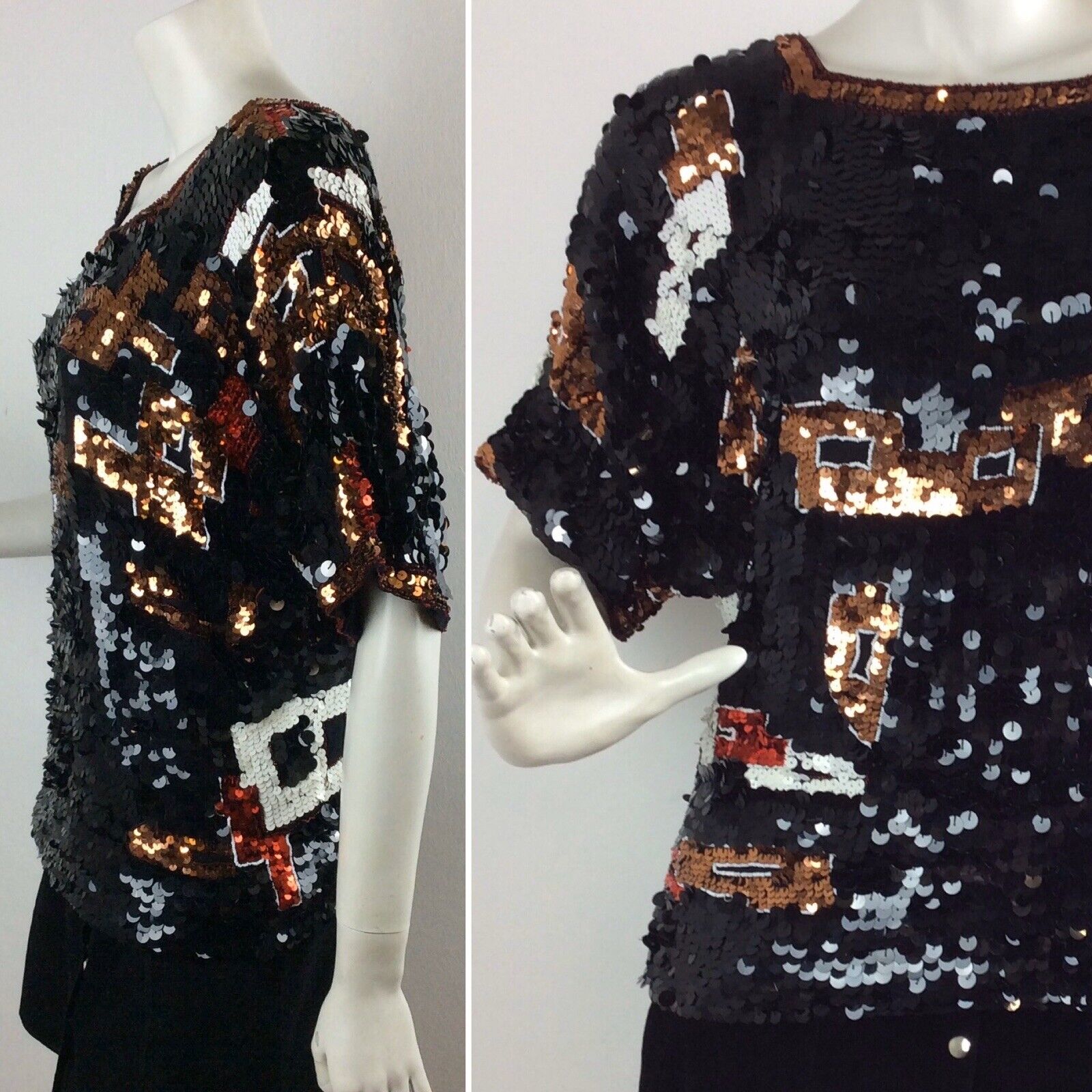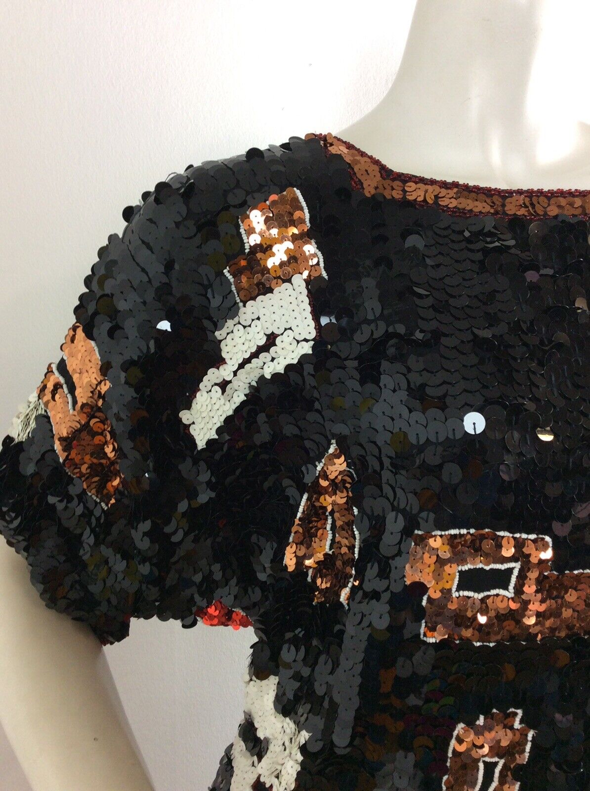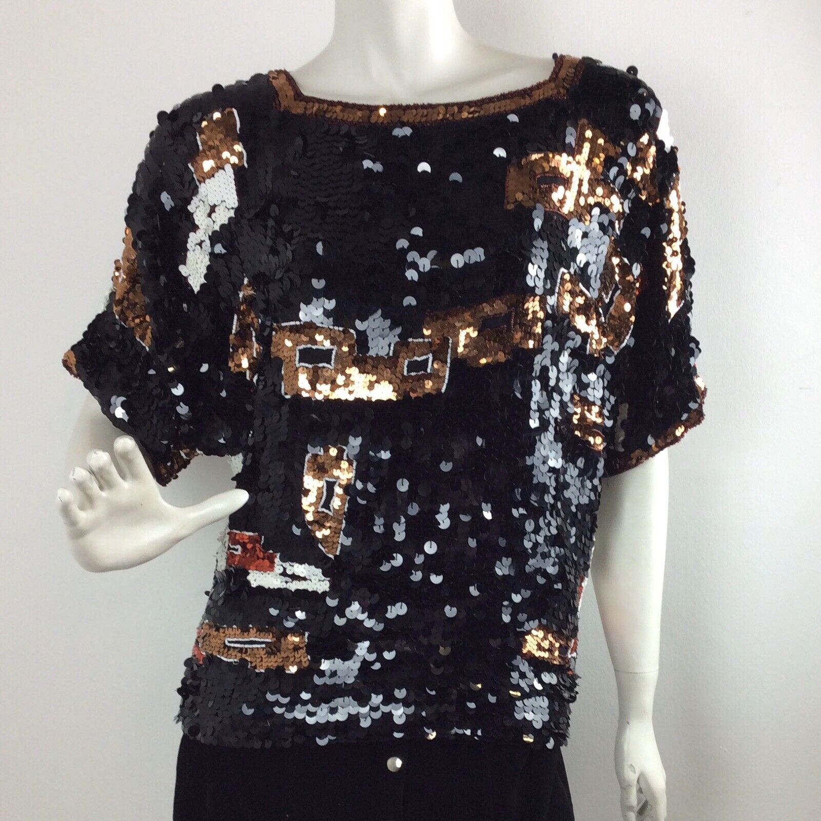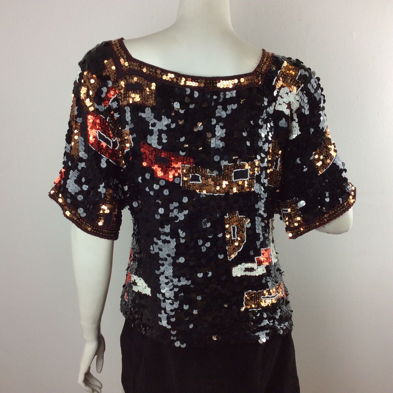 VINTAGE 80S SEQUIN DISCO EVENING BLACK BRONZE RED WHITE TOP 10 12